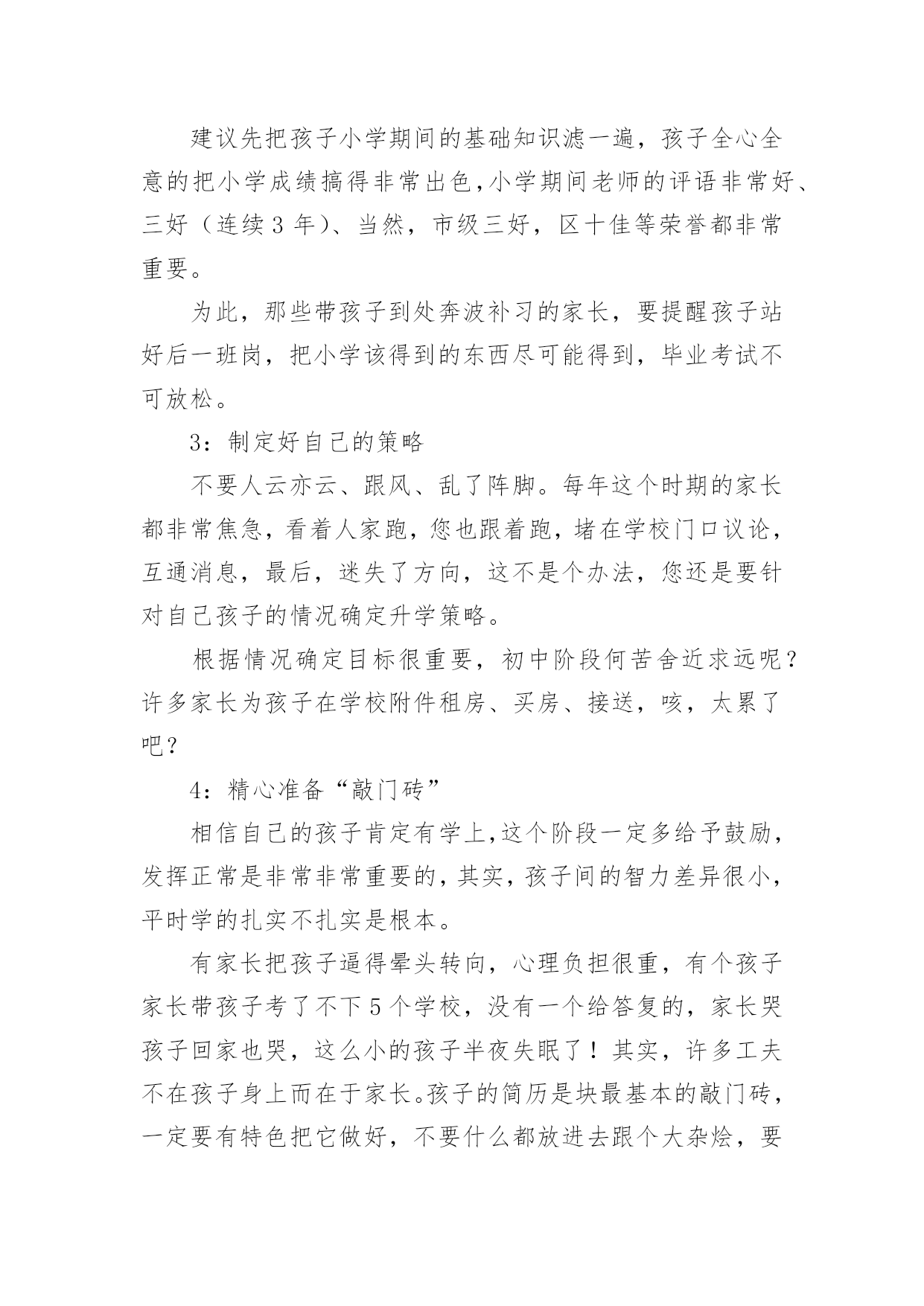 小升初简历 小升初简历时间真是转瞬即逝,又到了寻求新的工作机会的时候,你的简历写好了吗?简历怎么写才不会千篇一律呢?以下是小编为大家整理的小升初简历,供大家参考借鉴,希望可以帮助到有需要的朋友。小升初简历11:准备什么别轻信教委不允许考试、不以XX证书为依据的规定。上有政策下有对策,我们就是过于乐观,抓得不紧没有逼孩子,直到最后一年也没醒悟,结果发现手里的存货不多,但有些形式上的东西还是要准备的。当然了,货多也未必一定能考进好校,主要还是以启发孩子兴趣,提高综合能力为首要目的,孩子抵触也不可强求,小升初各校都需要设门槛,家长也该理解,不让考试他们就另搞标准,初选是需要的,但家长也不能太过了头,为了升学而升学,尤其是时间这么紧了,没有的再补也来不及,所以,家长要把手头已经有的准备好。2:本色不能丢重视在校最后这段时间的学习,认真复习,家长再慌乱也不能把孩子搞乱,发现,小升初测试的内容许多都是小学必备的基础知识,真正奥数和公英等特难为孩子的怪东西不多,所以,如果非要说准备应考,复习什么?建议先把孩子小学期间的基础知识滤一遍,孩子全心全意的把小学成绩搞得非常出色,小学期间老师的评语非常好、三好(连续3年)、当然,市级三好,区十佳等荣誉都非常重要。为此,那些带孩子到处奔波补习的家长,要提醒孩子站好后一班岗,把小学该得到的东西尽可能得到,毕业考试不可放松。3:制定好自己的策略不要人云亦云、跟风、乱了阵脚。每年这个时期的家长都非常焦急,看着人家跑,您也跟着跑,堵在学校门口议论,互通消息,最后,迷失了方向,这不是个办法,您还是要针对自己孩子的情况确定升学策略。根据情况确定目标很重要,初中阶段何苦舍近求远呢?许多家长为孩子在学校附件租房、买房、接送,咳,太累了吧?4:精心准备“敲门砖”相信自己的孩子肯定有学上,这个阶段一定多给予鼓励,发挥正常是非常非常重要的,其实,孩子间的智力差异很小,平时学的扎实不扎实是根本。有家长把孩子逼得晕头转向,心理负担很重,有个孩子家长带孩子考了不下5个学校,没有一个给答复的,家长哭孩子回家也哭,这么小的孩子半夜失眠了!其实,许多工夫不在孩子身上而在于家长。孩子的简历是块最基本的敲门砖,一定要有特色把它做好,不要什么都放进去跟个大杂烩,要想办法突出自己孩子的优势和特长,让老师眼前一亮,当然不是搞得花哨就吸引人,但起码也不能草草装个夹子就交了。5:留意收关阶段的机会最后的阶段别放弃希望,而且大有可为,各校抢生员非常激烈,但有的下手快,先录取了,有的不敢违反教育规定考试拖后,结果很被动生源流失掉了,为此,越是最后去考竞争未必激烈,因为大部分有实力的学生已经有着落了,所以,家长不要灰心,要尝试最后的机会,不要到处听信什么“内定了”“没希望”“去垫底”之类的。6:好心态致胜之法宝有家长说了,您孩子什么都没有怎么进重点?有没有只是相对而言,但我们也为孩子提炼出一些东西,比如英语市级、区级大赛获奖证书、连续三年三好、老师评语、优秀干部、全优成绩、还有参加过的口语国际等级证书等,这些足以为孩子去敲任何学校英语实验班的门槛了。不过,再多有没有用,有的孩子拿了公三,当然有用,但再好也就是个敲门砖,名校挑三拣四谁也没办法,初选后争不争起,还得靠孩子最后考试中拼实力了。所以,家长们不要迷信外边补习的证书和成果,那仅仅是一方面,有那些东西的别大意,没有的您也别自卑,这个时期,压力就要家长来担当,没必要给孩子太大的压力,用不用临阵磨磨枪?我觉得要磨啊,尽快磨啊。小升初简历2姓名:XXX性别:女出生日期:1994年9月身高:160CM户籍:北京市海淀区就读学校:XXXX附属小学家庭地址:海淀区学院南路XX号电话:136XXXXXXXX(父亲—XXX)136XXXXXXXXX(母亲--XXX)学习情况20xx年9月至今就读于xxxxxx附属小学。成绩班级成绩较好,总成绩10名以前(获奖证明及成长手册见附件)。喜欢的课程数学、英语、语文、计算机自我评价积极乐观热心帮助同学良好的人际关系学习有自制力。兴趣广泛做事认真踏实尊重师长。课外学习培训情况1.2xx3年2月—20xx年12月于博师堂国际教育学习奥数、英语、作文。2.2xx4年7月—至今,于XX附小参加每周一次的奥数学习。3.2xx6年9月—至今,于X中参加每周六半天的数学、英语、作文学习。4.2xx6年初至今,于XX附中培训中心进行综合素质学习。其他训练1.自6岁始跟随国家游泳队退役队员学习游泳,目前游泳技术较好,获得竞赛第二名。2.8岁—10岁学习小提琴,熟悉乐理和基本技法。3.自10岁始,在父亲引导下学习心理学知识。家庭成员介绍父亲:XXX国际职业培训师国家心理咨询师职业讲师母亲:XXXXX中学在职教师小升初简历3简历如何制作呢?都需要哪些步骤呢?下面是简历制作步骤指导,希望对的家长们