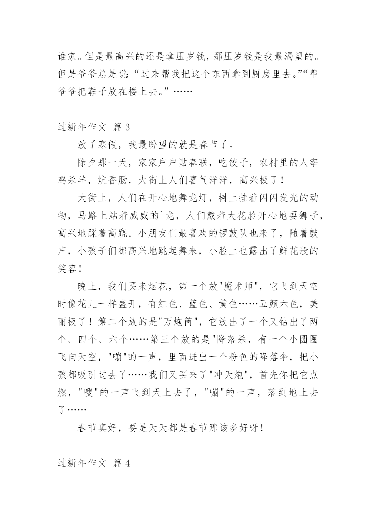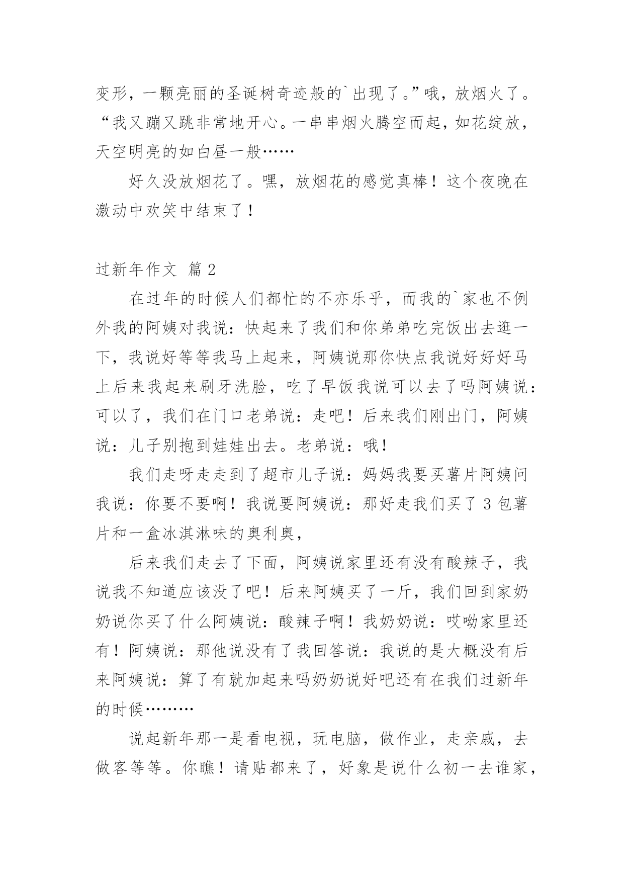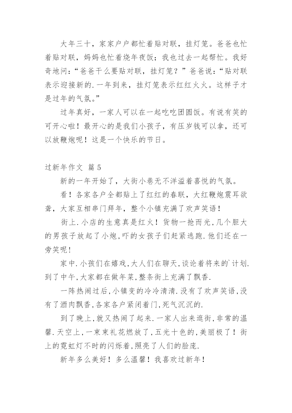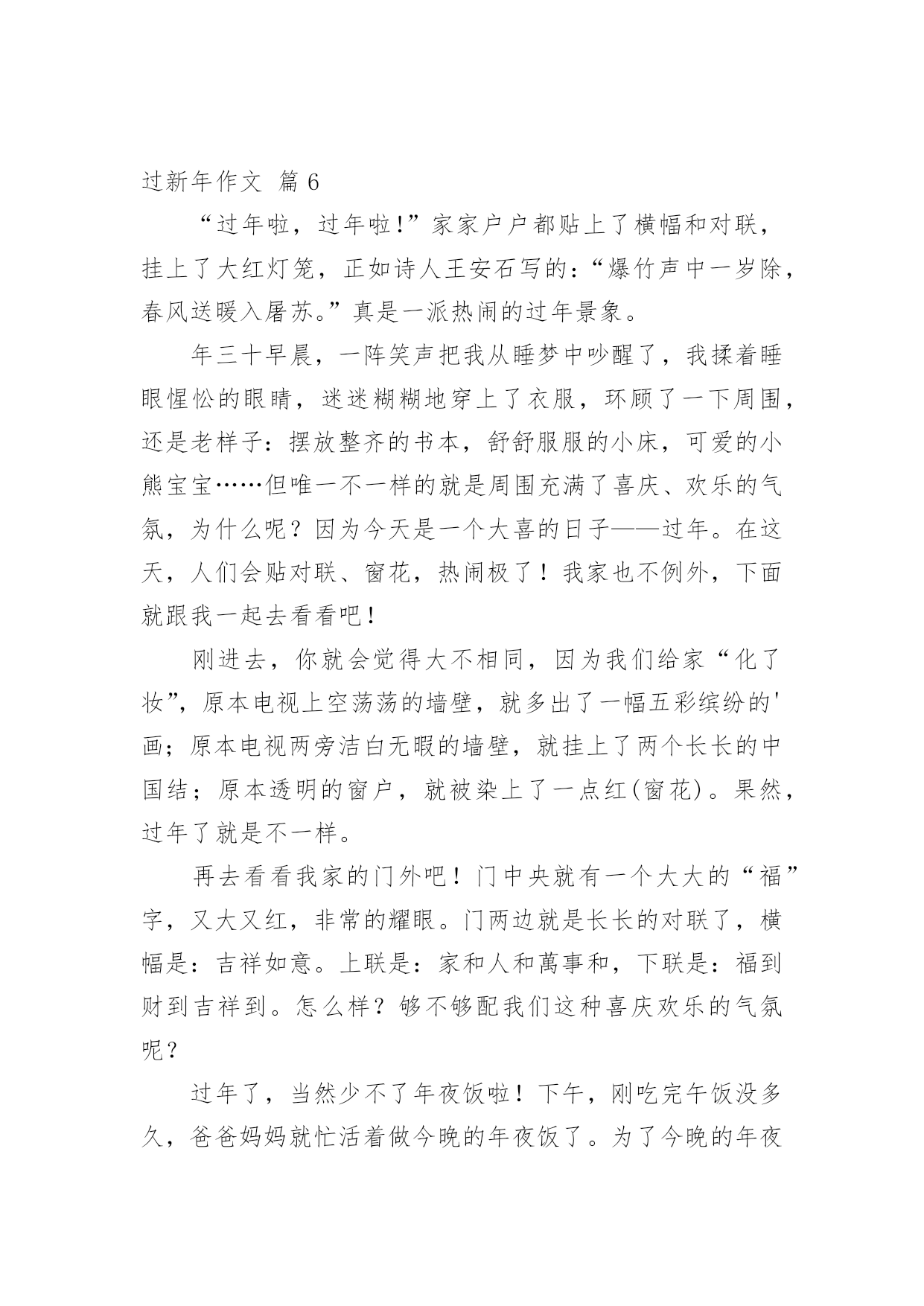 过新年作文 过新年作文合集九篇在日常学习、工作抑或是生活中,大家总少不了接触作文吧,借助作文人们可以反映客观事物、表达思想感情、传递知识信息。那么你有了解过作文吗?下面是小编为大家收集的过新年作文9篇,供大家参考借鉴,希望可以帮助到有需要的朋友。过新年作文篇1春节就是贴春联,放鞭炮,吃饺子,看春晚,拜年可不能少,这些都是春节的习俗,不过,最能勾起我兴趣的还数放烟花了。大年三十的晚上,我吃完的晚饭,我和叔叔妹妹来到楼下放烟花,我高兴极了!只见叔叔拿起一个烟花,先用手来回摸索着。我看见了,好奇地问:”叔叔,你在干什么呢?“叔叔对我说:”找引线呢!“没过多久,叔叔找到了引线,再从口袋里掏出打火机,点燃引线,瞧!烟花正在吐着火舌呢!这时,烟花突然响起了”霹雳啪啦“的声音。看到绚烂多彩的烟花,我和妹妹都高兴地跳着喊着,这时妹妹喊道;再来一个再来一个!我们俩心花怒放。叔叔又点燃了一个烟花筒,我和妹妹同时捂起耳朵,只听一声急速的”嘶嘶“声,接着一声”嘭“烟花在夜幕中划出一道银弧后炸开了,拼出一束耀眼的火花,旋转,放大,变形,一颗亮丽的圣诞树奇迹般的`出现了。”哦,放烟火了。“我又蹦又跳非常地开心。一串串烟火腾空而起,如花绽放,天空明亮的如白昼一般……好久没放烟花了。嘿,放烟花的感觉真棒!这个夜晚在激动中欢笑中结束了!过新年作文篇2在过年的时候人们都忙的不亦乐乎,而我的`家也不例外我的阿姨对我说:快起来了我们和你弟弟吃完饭出去逛一下,我说好等等我马上起来,阿姨说那你快点我说好好好马上后来我起来刷牙洗脸,吃了早饭我说可以去了吗阿姨说:可以了,我们在门口老弟说:走吧!后来我们刚出门,阿姨说:儿子别抱到娃娃出去。老弟说:哦!我们走呀走走到了超市儿子说:妈妈我要买薯片阿姨问我说:你要不要啊!我说要阿姨说:那好走我们买了3包薯片和一盒冰淇淋味的奥利奥,后来我们走去了下面,阿姨说家里还有没有酸辣子,我说我不知道应该没了吧!后来阿姨买了一斤,我们回到家奶奶说你买了什么阿姨说:酸辣子啊!我奶奶说:哎呦家里还有!阿姨说:那他说没有了我回答说:我说的是大概没有后来阿姨说:算了有就加起来吗奶奶说好吧还有在我们过新年的时候………说起新年那一是看电视,玩电脑,做作业,走亲戚,去做客等等。你瞧!请贴都来了,好象是说什么初一去谁家,谁家。但是最高兴的还是拿压岁钱,那压岁钱是我最渴望的。但是爷爷总是说:“过来帮我把这个东西拿到厨房里去。”“帮爷爷把鞋子放在楼上去。”……过新年作文篇3放了寒假,我最盼望的就是春节了。除夕那一天,家家户户贴春联,吃饺子,农村里的人宰鸡杀羊,炕香肠,大街上人们喜气洋洋,高兴极了!大街上,人们在开心地舞龙灯,树上挂着闪闪发光的动物,马路上站着威威的`龙,人们戴着大花脸开心地耍狮子,高兴地踩着高跷。小朋友们最喜欢的锣鼓队也来了,随着鼓声,小孩子们都高兴地跳起舞来,小脸上也露出了鲜花般的笑容!晚上,我们买来烟花,第一个放"魔术师",它飞到天空时像花儿一样盛开,有红色、蓝色、黄色……五颜六色,美丽极了!第二个放的是"万炮筒",它放出了一个又钻出了两个、四个、六个……第三个放的是"降落杀,有一个小圆圈飞向天空,"嘣"的一声,里面迸出一个粉色的降落伞,把小孩都吸引过去了……我们又买来了"冲天炮",首先你把它点燃,"嗖"的一声飞到天上去了,"嘣"的一声,落到地上去了……春节真好,要是天天都是春节那该多好呀!过新年作文篇4大年三十,家家户户都忙着贴对联,挂灯笼。爸爸也忙着贴对联,妈妈也忙着烧年夜饭;我也过去一起帮忙。我好奇地问:“爸爸干么要贴对联,挂灯笼?”爸爸说:“贴对联表示迎接新的.一年到来,挂灯笼表示红红火火。这样子才是过年的气氛。”过年真好,一家人可以在一起吃吃团圆饭。有说有笑的可开心啦!最开心的是我们小孩子,有压岁钱可以拿,还可以放鞭炮呢!这是一个快乐的节日。过新年作文篇5新的一年开始了,大街小巷无不洋溢着喜悦的气氛。看!各家各户全都贴上了红红的春联,大红鞭炮震耳欲聋,大家互相串门拜年,整个小镇充满了欢声笑语!街上.小店的生意真是红火!货物一抢而光,几个胆大的男孩子放起了小炮,吓的女孩子们赶紧逃跑.他们还在一旁笑呢!家中.小孩们在嬉戏,大人们在聊天,谈论着将来的`计划.到了中午,大家都在做年菜,整条街上充满了飘香.一阵热闹过后,小镇变的冷冷清清.没有了欢声笑语,没有了酒肉飘香,各家各户紧闭着门,死气沉沉的.到了晚上,就又热闹了起来.一家人出来逛街,非常的温馨.天空上,一束束礼花燃放了,五光十色的,美丽极了!街上的霓虹灯不时的闪烁着,照亮了人们的脸庞.新年多么美好!多么温馨!我喜欢过新年!过新年作文篇6“过年啦,过年啦!”家家户户都贴上了横幅和对联,挂上了大红灯笼,正如诗人王安石写的:“爆竹声中一岁除,春风送暖入屠苏。”真是一派热闹的过年景象。年三十早