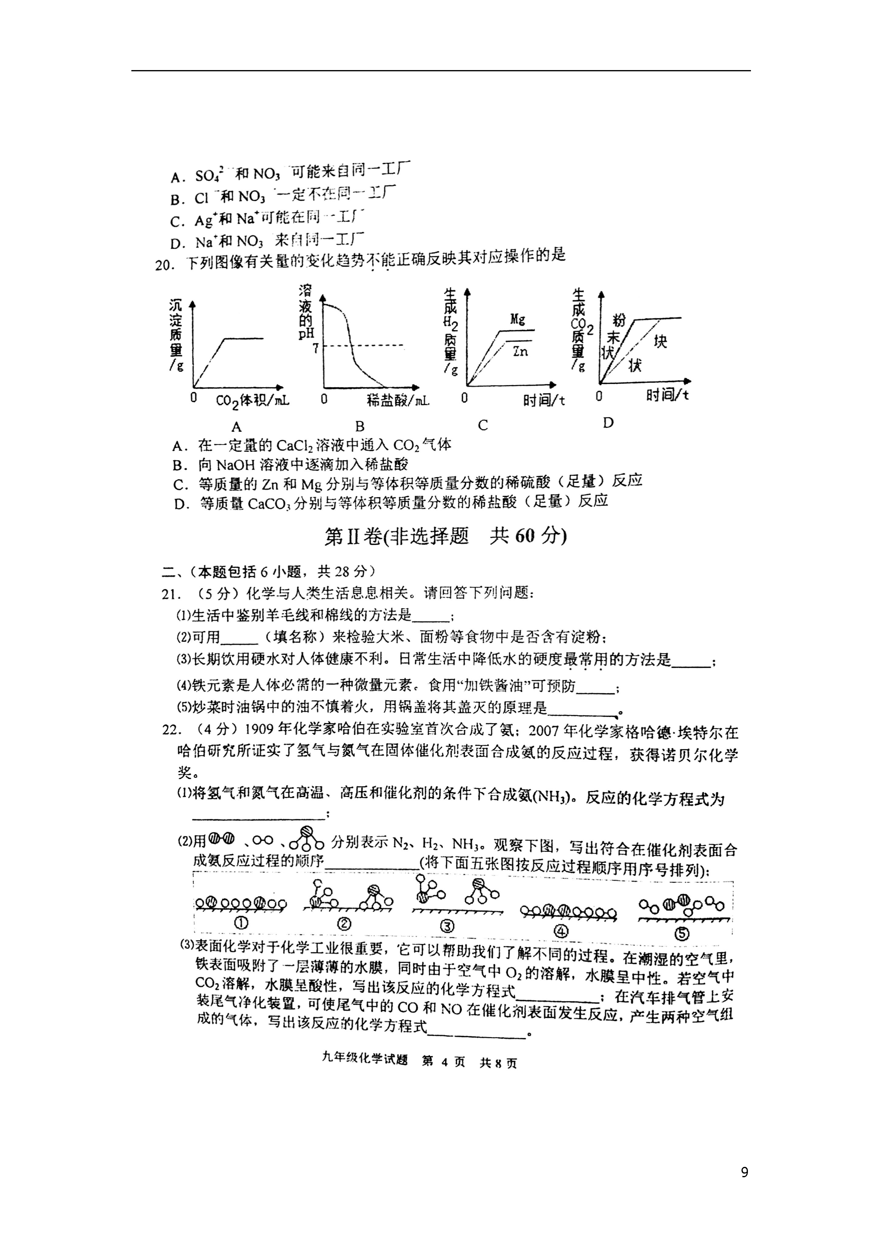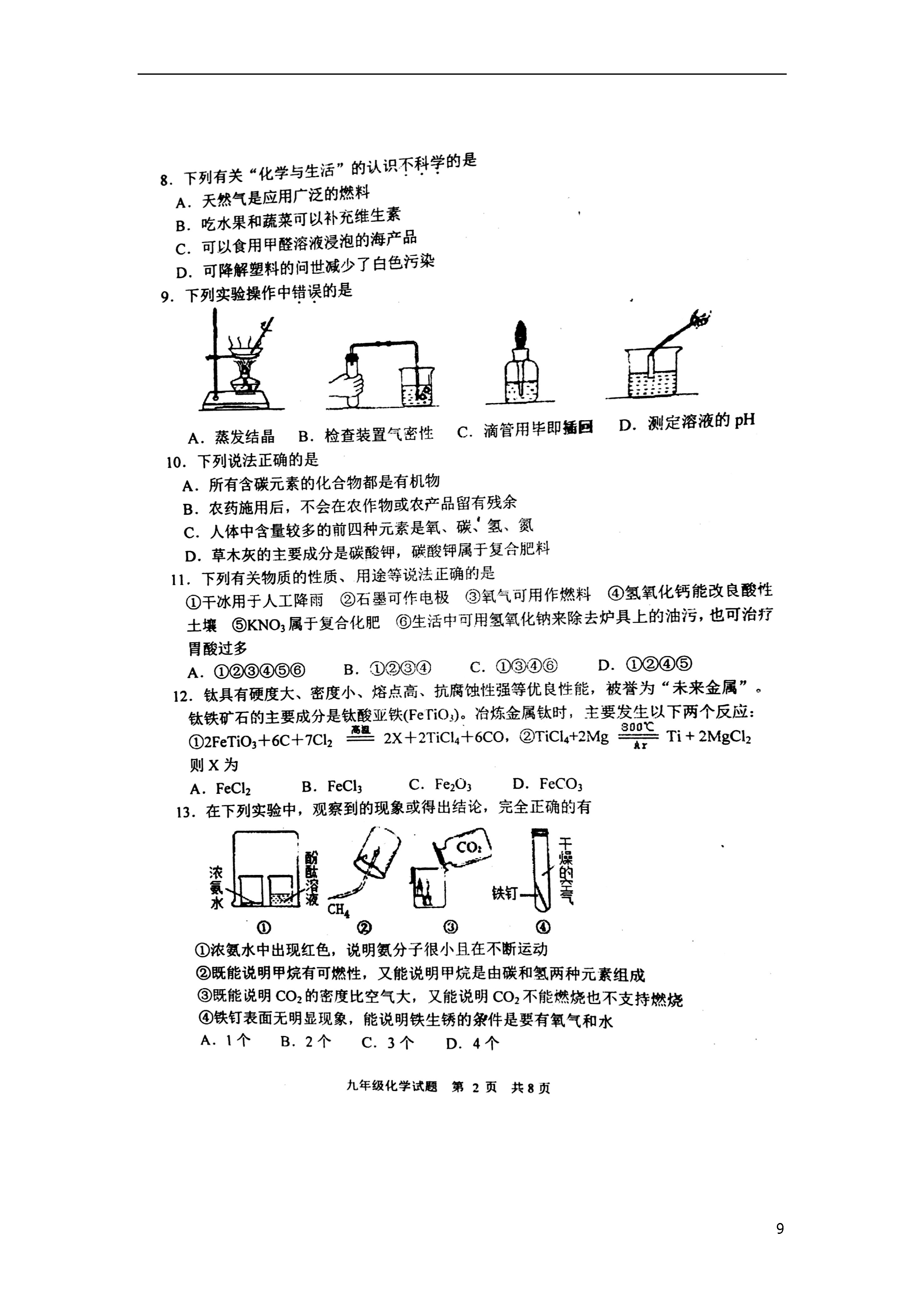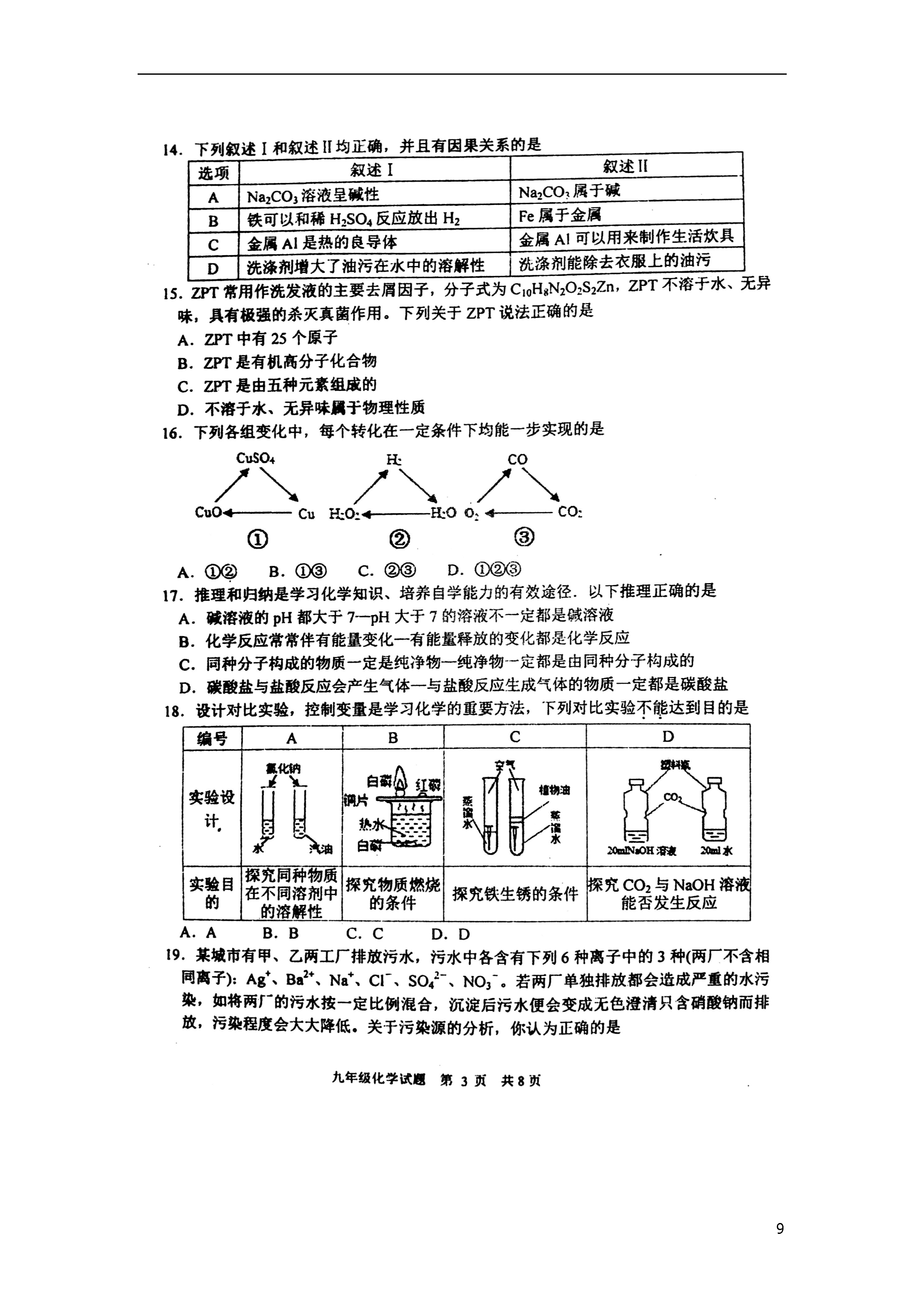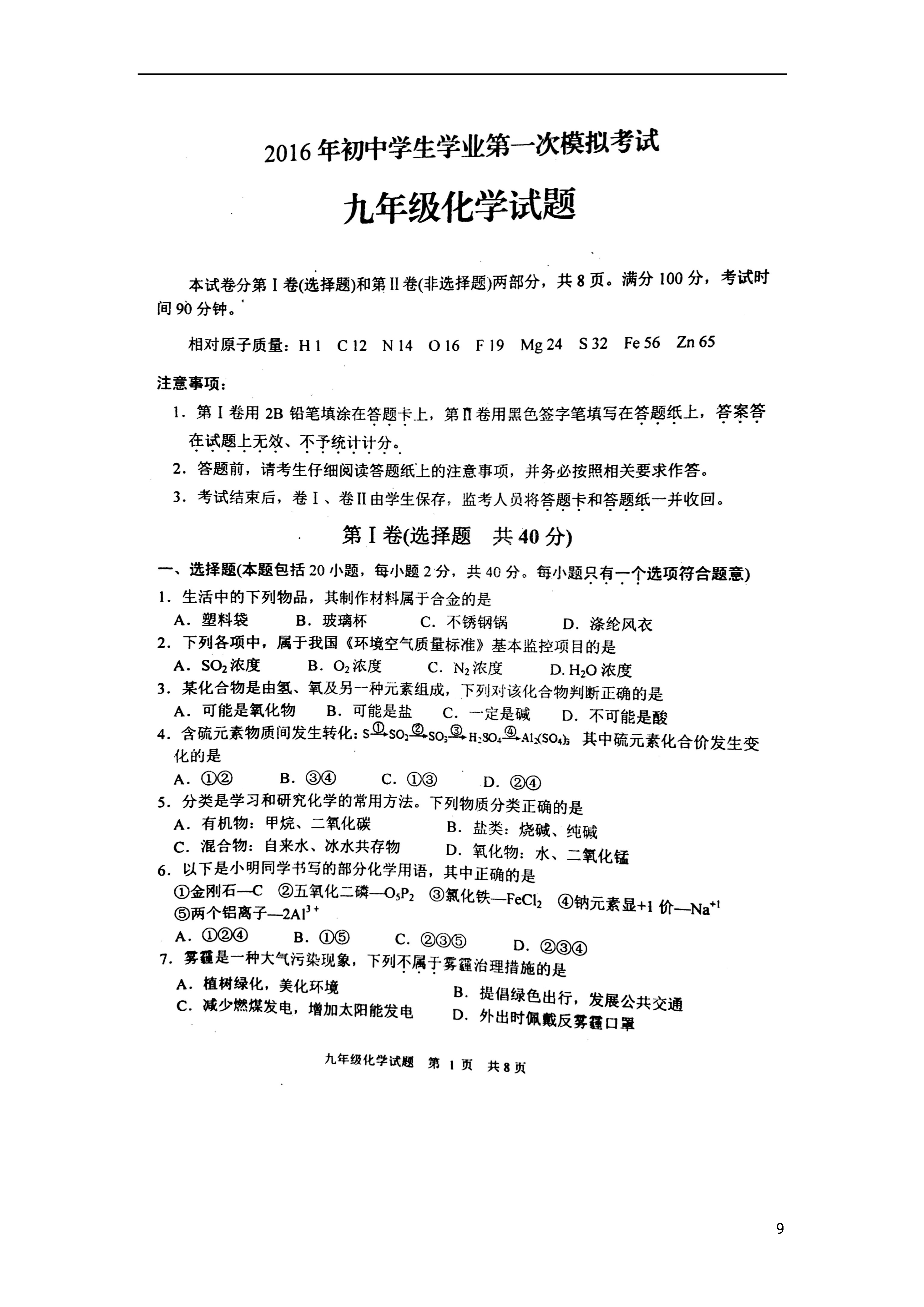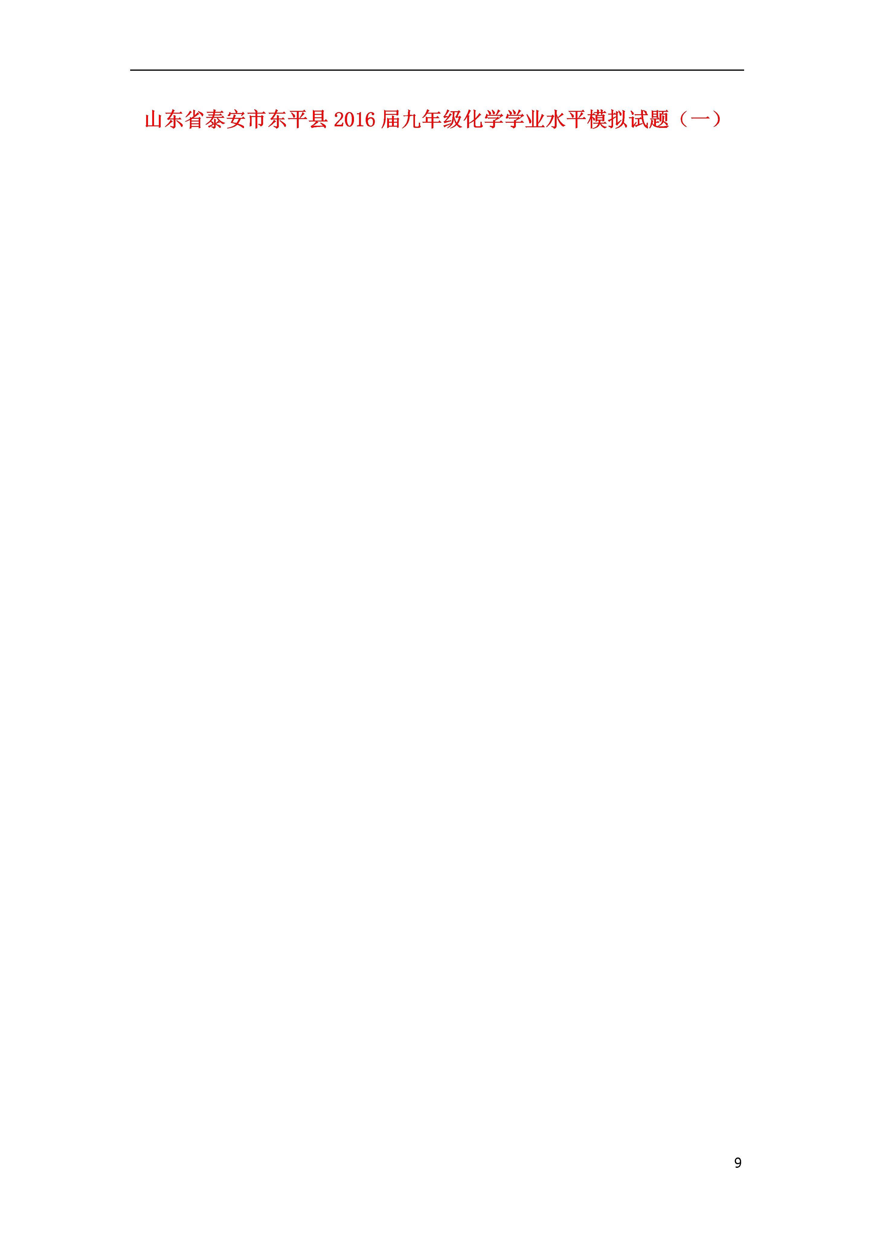 9山东省泰安市东平县2016届九年级化学学业水平模拟试题(一)