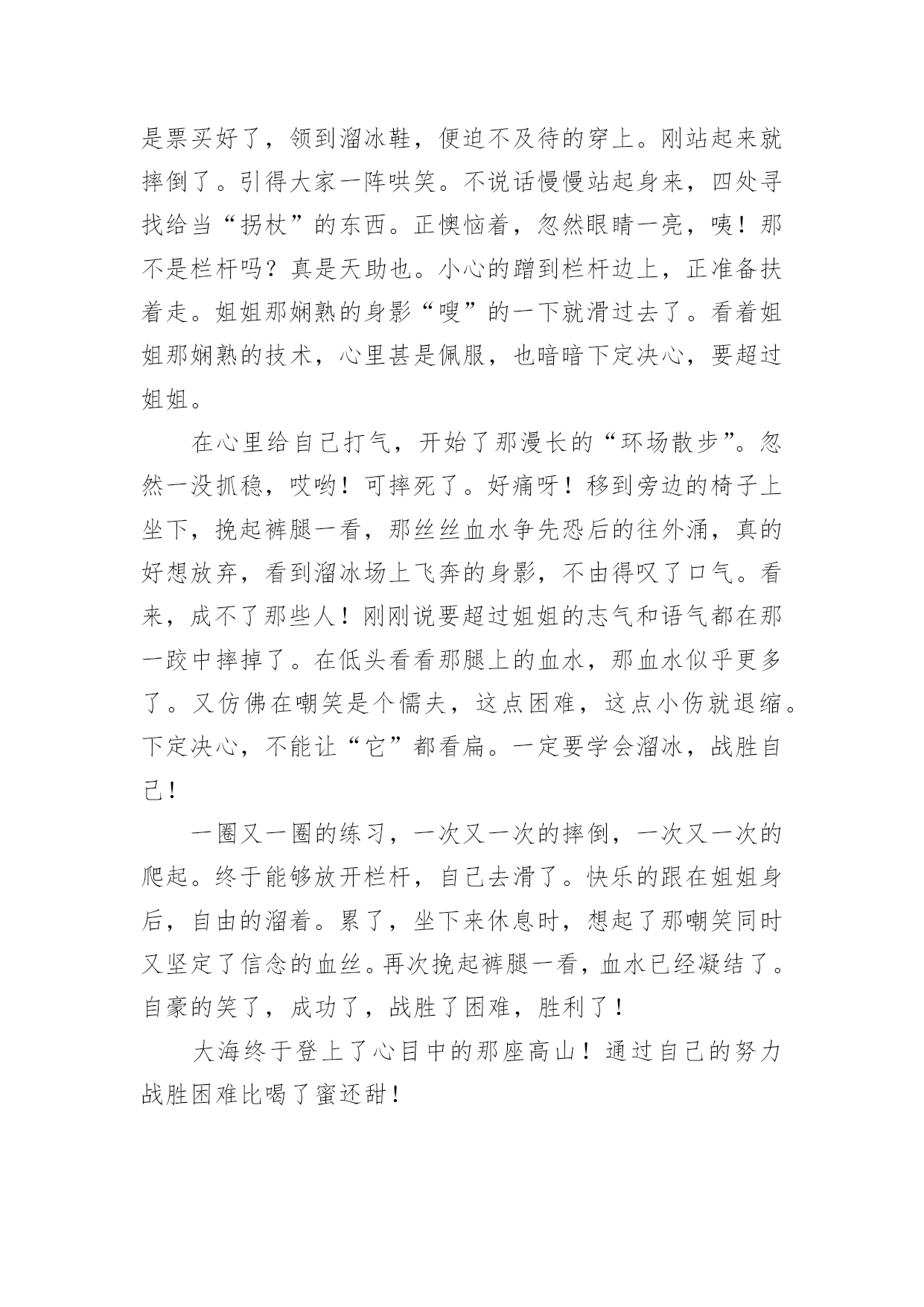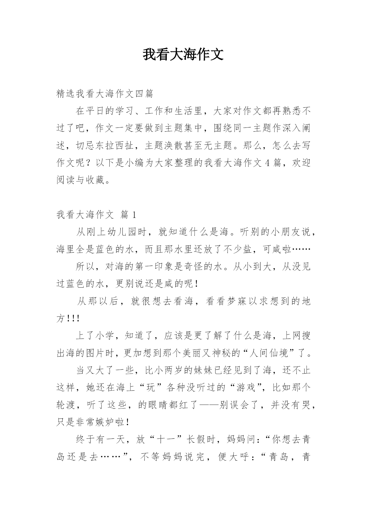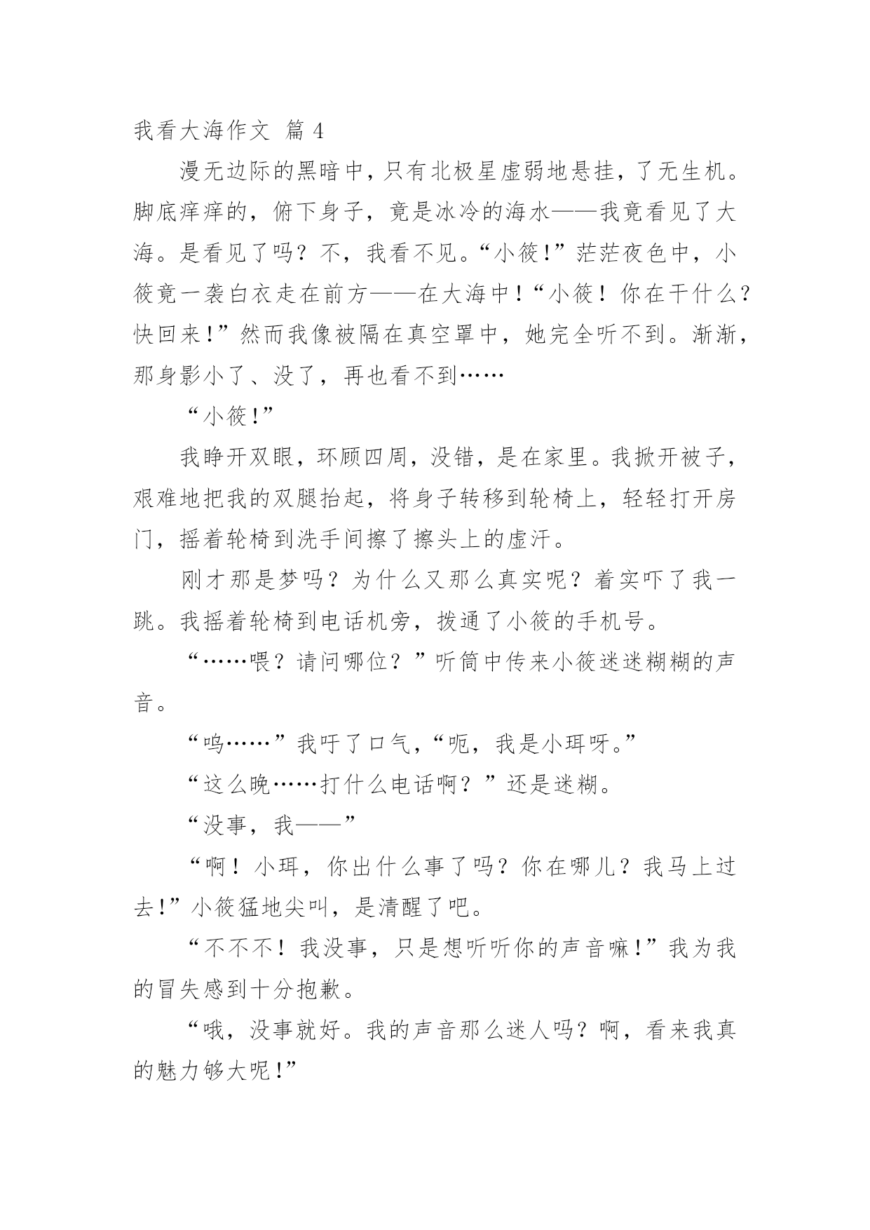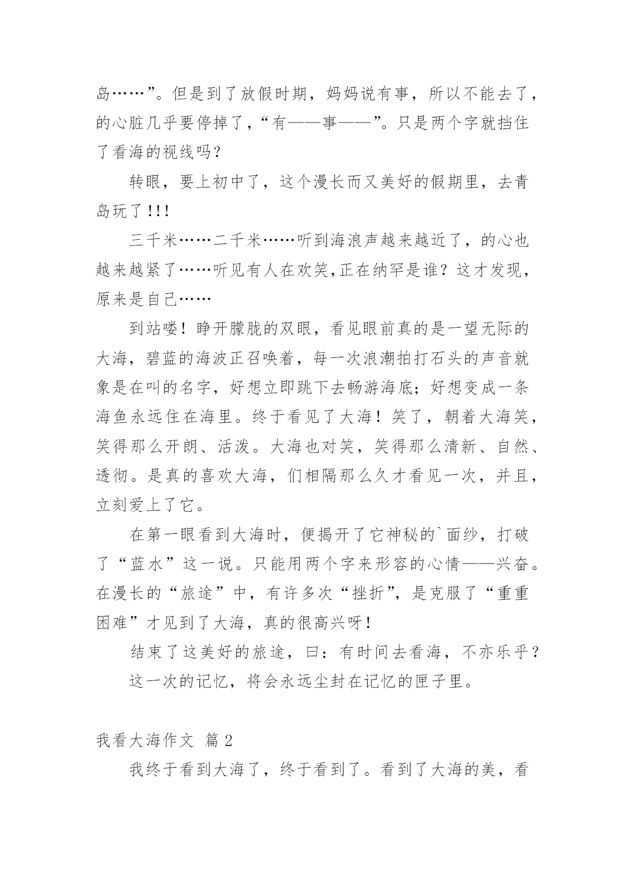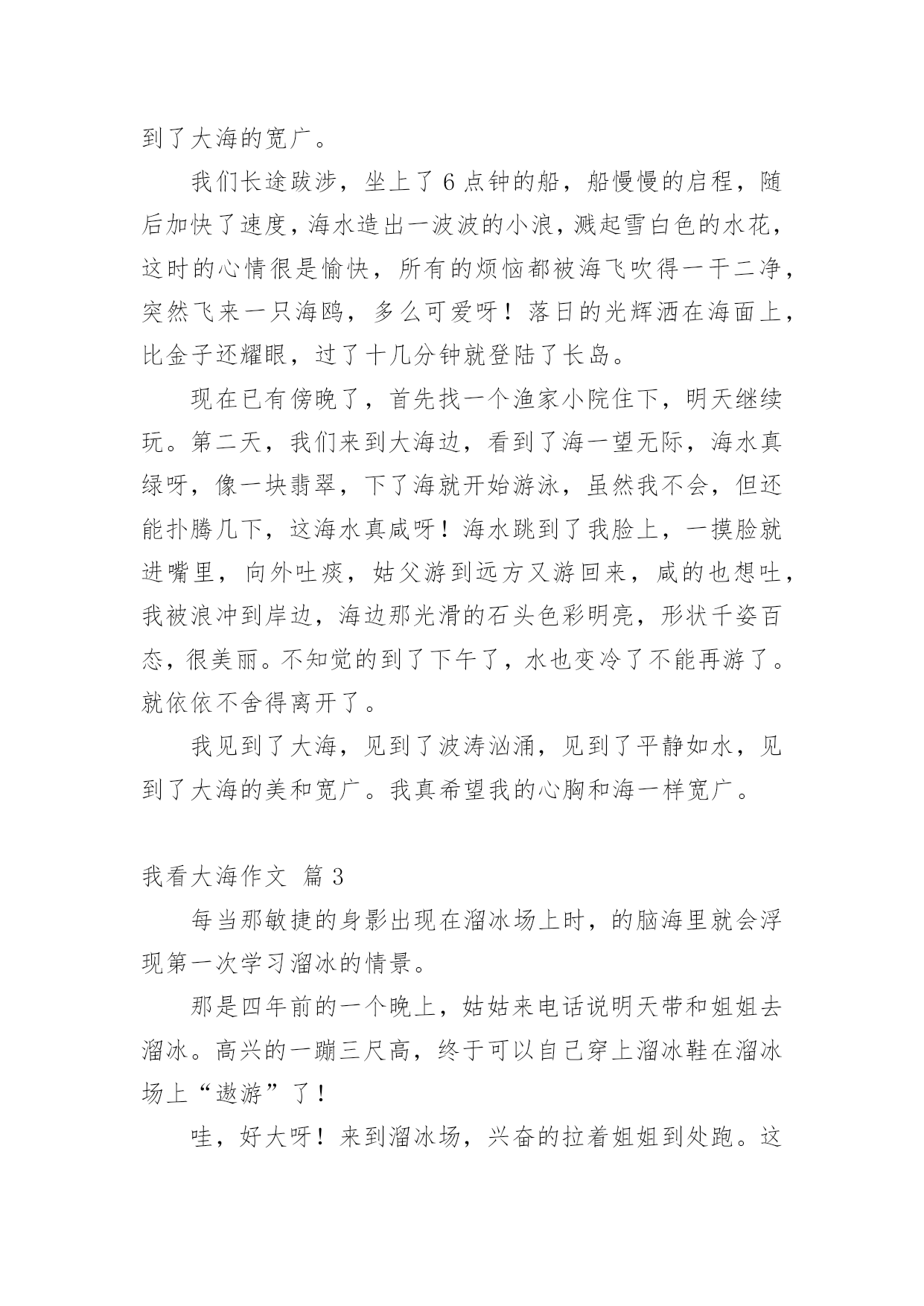我看大海作文 精选我看大海作文四篇在平日的学习、工作和生活里,大家对作文都再熟悉不过了吧,作文一定要做到主题集中,围绕同一主题作深入阐述,切忌东拉西扯,主题涣散甚至无主题。那么,怎么去写作文呢?以下是小编为大家整理的我看大海作文4篇,欢迎阅读与收藏。我看大海作文篇1从刚上幼儿园时,就知道什么是海。听别的小朋友说,海里全是蓝色的水,而且那水里还放了不少盐,可咸啦……所以,对海的第一印象是奇怪的水。从小到大,从没见过蓝色的水,更别说还是咸的呢!从那以后,就很想去看海,看看梦寐以求想到的地方!!!上了小学,知道了,应该是更了解了什么是海,上网搜出海的图片时,更加想到那个美丽又神秘的“人间仙境”了。当又大了一些,比小两岁的妹妹已经见到了海,还不止这样,她还在海上“玩”各种没听过的“游戏”,比如那个轮渡,听了这些,的眼睛都红了——别误会了,并没有哭,只是非常嫉妒啦!终于有一天,放“十一”长假时,妈妈问:“你想去青岛还是去……”,不等妈妈说完,便大呼:“青岛,青岛……”。但是到了放假时期,妈妈说有事,所以不能去了,的心脏几乎要停掉了,“有——事——”。只是两个字就挡住了看海的视线吗?转眼,要上初中了,这个漫长而又美好的假期里,去青岛玩了!!!三千米……二千米……听到海浪声越来越近了,的心也越来越紧了……听见有人在欢笑,正在纳罕是谁?这才发现,原来是自己……到站喽!睁开朦胧的双眼,看见眼前真的是一望无际的大海,碧蓝的海波正召唤着,每一次浪潮拍打石头的声音就象是在叫的名字,好想立即跳下去畅游海底;好想变成一条海鱼永远住在海里。终于看见了大海!笑了,朝着大海笑,笑得那么开朗、活泼。大海也对笑,笑得那么清新、自然、透彻。是真的喜欢大海,们相隔那么久才看见一次,并且,立刻爱上了它。在第一眼看到大海时,便揭开了它神秘的`面纱,打破了“蓝水”这一说。只能用两个字来形容的心情——兴奋。在漫长的“旅途”中,有许多次“挫折”,是克服了“重重困难”才见到了大海,真的很高兴呀!结束了这美好的旅途,曰:有时间去看海,不亦乐乎?这一次的记忆,将会永远尘封在记忆的匣子里。我看大海作文篇2我终于看到大海了,终于看到了。看到了大海的美,看到了大海的宽广。我们长途跋涉,坐上了6点钟的船,船慢慢的启程,随后加快了速度,海水造出一波波的小浪,溅起雪白色的水花,这时的心情很是愉快,所有的烦恼都被海飞吹得一干二净,突然飞来一只海鸥,多么可爱呀!落日的光辉洒在海面上,比金子还耀眼,过了十几分钟就登陆了长岛。现在已有傍晚了,首先找一个渔家小院住下,明天继续玩。第二天,我们来到大海边,看到了海一望无际,海水真绿呀,像一块翡翠,下了海就开始游泳,虽然我不会,但还能扑腾几下,这海水真咸呀!海水跳到了我脸上,一摸脸就进嘴里,向外吐痰,姑父游到远方又游回来,咸的也想吐,我被浪冲到岸边,海边那光滑的石头色彩明亮,形状千姿百态,很美丽。不知觉的到了下午了,水也变冷了不能再游了。就依依不舍得离开了。我见到了大海,见到了波涛汹涌,见到了平静如水,见到了大海的美和宽广。我真希望我的心胸和海一样宽广。我看大海作文篇3每当那敏捷的身影出现在溜冰场上时,的脑海里就会浮现第一次学习溜冰的情景。那是四年前的一个晚上,姑姑来电话说明天带和姐姐去溜冰。高兴的一蹦三尺高,终于可以自己穿上溜冰鞋在溜冰场上“遨游”了!哇,好大呀!来到溜冰场,兴奋的拉着姐姐到处跑。这是票买好了,领到溜冰鞋,便迫不及待的穿上。刚站起来就摔倒了。引得大家一阵哄笑。不说话慢慢站起身来,四处寻找给当“拐杖”的东西。正懊恼着,忽然眼睛一亮,咦!那不是栏杆吗?真是天助也。小心的蹭到栏杆边上,正准备扶着走。姐姐那娴熟的身影“嗖”的一下就滑过去了。看着姐姐那娴熟的技术,心里甚是佩服,也暗暗下定决心,要超过姐姐。在心里给自己打气,开始了那漫长的“环场散步”。忽然一没抓稳,哎哟!可摔死了。好痛呀!移到旁边的椅子上坐下,挽起裤腿一看,那丝丝血水争先恐后的往外涌,真的好想放弃,看到溜冰场上飞奔的身影,不由得叹了口气。看来,成不了那些人!刚刚说要超过姐姐的志气和语气都在那一跤中摔掉了。在低头看看那腿上的血水,那血水似乎更多了。又仿佛在嘲笑是个懦夫,这点困难,这点小伤就退缩。下定决心,不能让“它”都看扁。一定要学会溜冰,战胜自己!一圈又一圈的练习,一次又一次的摔倒,一次又一次的爬起。终于能够放开栏杆,自己去滑了。快乐的跟在姐姐身后,自由的溜着。累了,坐下来休息时,想起了那嘲笑同时又坚定了信念的血丝。再次挽起裤腿一看,血水已经凝结了。自豪的笑了,成功了,战胜了困难,胜利了!大海终于登上了心目中的那座高山!通过自己的努力战胜困难比喝了蜜还甜!我看大海作文篇4漫无边际的黑暗中,只有北极星虚弱地悬挂,了无生机。脚底痒痒的,俯下身子,竟是冰冷的海水——我竟看见了大海。是看见了吗