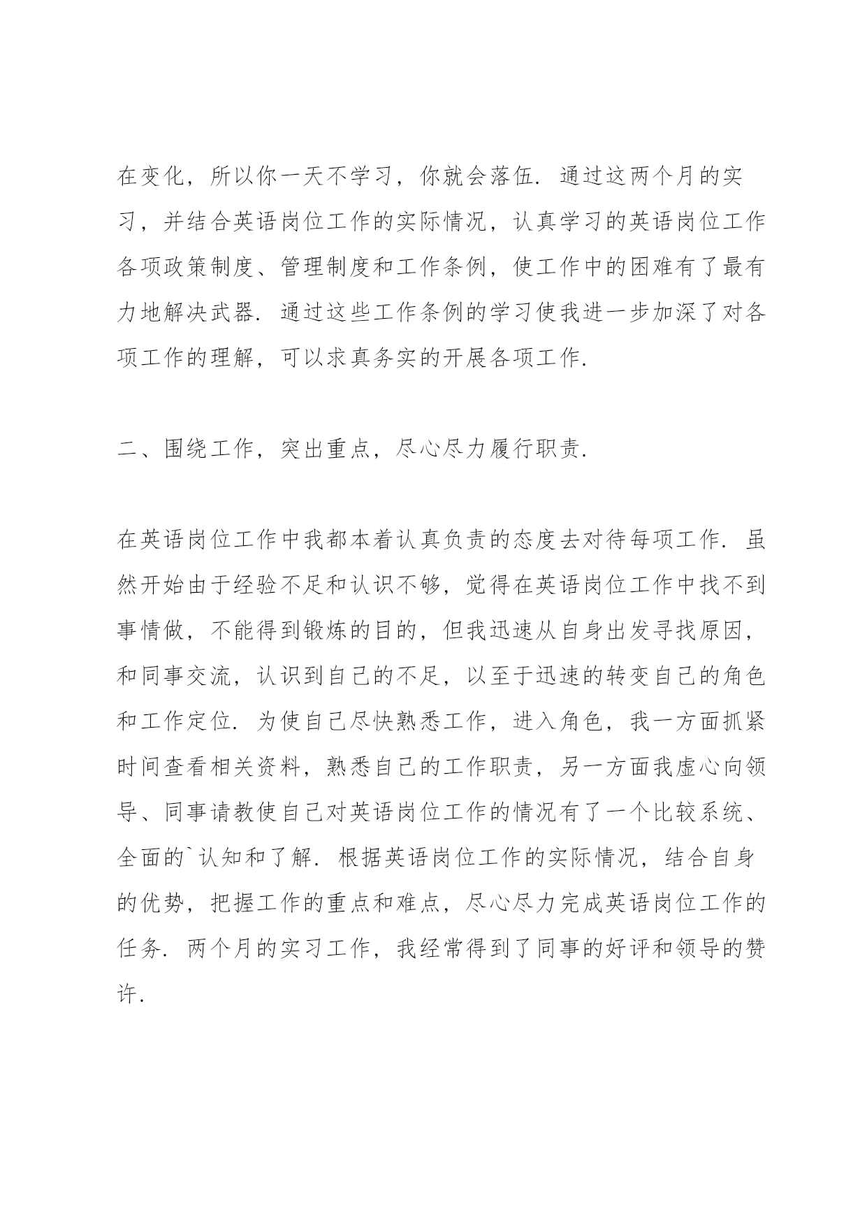 英语专业教育实习心得十篇 英语专业教育实习心得1转眼之间,两个月的实习期即将结束,回顾这两个月的实习工作,感触很深,收获颇丰.这两个月,在领导和同事们的悉心关怀和指导下,通过我自身的不懈努力,我学到了人生难得的工作经验和社会见识.我将从以下几个方面总结英语岗位工作实习这段时间自己体会和心得:一、努力学习,理论结合实践,不断提高自身工作能力.在英语岗位工作的实习过程中,我始终把学习作为获得新知识、掌握方法、提高能力、解决问题的一条重要途径和方法,切实做到用理论武装头脑、指导实践、推动工作.思想上积极进取,积极的把自己现有的知识用于社会实践中,在实践中也才能检验知识的有用性.在这两个月的实习工作中给我最大的感触就是:我们在学校学到了很多的理论知识,但很少用于社会实践中,这样理论和实践就大大的脱节了,以至于在以后的学习和生活中找不到方向,无法学以致用.同时,在工作中不断的学习也是弥补自己的不足的有效方式.信息时代,瞬息万变,社会在变化,人也在变化,所以你一天不学习,你就会落伍.通过这两个月的实习,并结合英语岗位工作的实际情况,认真学习的英语岗位工作各项政策制度、管理制度和工作条例,使工作中的困难有了最有力地解决武器.通过这些工作条例的学习使我进一步加深了对各项工作的理解,可以求真务实的开展各项工作.二、围绕工作,突出重点,尽心尽力履行职责.在英语岗位工作中我都本着认真负责的态度去对待每项工作.虽然开始由于经验不足和认识不够,觉得在英语岗位工作中找不到事情做,不能得到锻炼的目的,但我迅速从自身出发寻找原因,和同事交流,认识到自己的不足,以至于迅速的转变自己的角色和工作定位.为使自己尽快熟悉工作,进入角色,我一方面抓紧时间查看相关资料,熟悉自己的工作职责,另一方面我虚心向领导、同事请教使自己对英语岗位工作的情况有了一个比较系统、全面的`认知和了解.根据英语岗位工作的实际情况,结合自身的优势,把握工作的重点和难点,尽心尽力完成英语岗位工作的任务.两个月的实习工作,我经常得到了同事的好评和领导的赞许.三、转变角色,以极大的热情投入到工作中.从大学校门跨入到英语岗位工作岗位,一开始我难以适应角色的转变,不能发现问题,从而解决问题,认为没有多少事情可以做,我就有一点失望,开始的热情有点消退,完全找不到方向.但我还是尽量保持当初的那份热情,想干有用的事的态度,不断的做好一些杂事,同时也勇于协助同事做好各项工作,慢慢的就找到了自己的角色,明白自己该干什么,这就是一个热情的问题,只要我保持极大的热情,相信自己一定会得到认可,没有不会做,没有做不好,只有你愿不愿意做.转变自己的角色,从一位学生到一位工作人员的转变,不仅仅是角色的变化,更是思想观念的转变.四、发扬团队精神,在完成本职工作的同时协同其他同事.在工作间能得到领导的充分信任,并在按时完成上级分配给我的各项工作的同时,还能积极主动地协助其他同事处理一些内务工作.个人的能力只有融入团队,才能实现最大的价值.实习期的工作,让我充分认识到团队精神的重要性.团队的精髓是共同进步.没有共同进步,相互合作,团队如同一盘散沙.相互合作,团队就会齐心协力,成为一个强有力的集体.很多人经常把团队和工作团体混为一谈,其实两者之间存在本质上的区别.优秀的工作团体与团队一样,具有能够一起分享信息、观点和创意,共同决策以帮助每个成员能够更好地工作,同时强化个人工作标准的特点.但工作团体主要是把工作目标分解到个人,其本质上是注重个人目标和责任,工作团体目标只是个人目标的简单总和,工作团体的成员不会为超出自己义务范围的结果负责,也不会尝试那种因为多名成员共同工作而带来的增值效应.五、存在的问题.几个月来,我虽然努力做了一些工作,但距离领导的要求还有不小差距,如理论水平、工作能力上还有待进一步提高,对英语岗位工作岗位还不够熟悉等等,这些问题,我决心实习报告在今后的工作和学习中努力加以改进和解决,使自己更好地做好本职工作.英语专业教育实习心得2通过这次机会,我在实习学校学到了很多教学方面的内容.如何在堂上与学生互动,调动学生学习的主动性和积极性;在下如何与学生相处,关爱学生,关注学生.在学到这些东西的同时也得益于实习学校老师的指导和帮助.有了老师的引导,我在做好教师这份职业的道路上愈加平坦.在堂教学过程中,有指导老师面对面进行指导,对堂中出现的不足之处提出改进意见,帮助我更好做好教师的工作.比如怎样提高堂效率,怎样让学生把知识记得更牢固,更扎实,怎样吸引学生注意力,更加有趣地完成教学目标.我从初实习学校的没有经验,不知道该以怎样的方式教授学生,到现在了解并熟悉了初中英语的授方式.初中的学生还没有从小学生的心智彻底转变过,总觉得还可以像小学时那样轻松地完成自己的学业.随着年龄的增长,自身面临的责任会越越大,遇到的问题也会越