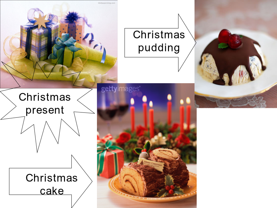 Lesson4ChristmasstockingAnswerthemultiple-choicequestions 4.Whatdidtheylaugh? a)TheChristmascarolswerehappysongs b)Thesongsandhatswerefunny c)Thejokesandhatswerefunny 5.Afterlunch a)TheadultswatchedtheQueen’sspeech b)Thechildrenmadeasnowman c)EverybodyhadmoretoeatIntime(chronological)orderCanyoutelluswhatactivitiesthechildrendidasChristmasisapproaching?WhatdidtheydoonChristmasEve?OnChristmasday,Whatdidpeopledo?Mysister,Alison,andIsatdowninfrontofthefireandwrotealettertoFatherChristmastellinghimaboutallthepresentswewanted.Weseriouslywrote“FatherChristmas,theNorthPole”ontheenvelope,beforegivingthemtoourmothertopost.Enoughsnowtomakesnowmen,andtohaveexcitingsnowballfightsintheschoolplayground.Christmasisaperfecttimeto/for…SignificanceofChristmas?Intime(chronological)orderTheSpringFestivalisaperfecttimeto/for…ActivitiesFurtherthinkingFurtherthinkingHomework:AsChristmasisapproaching