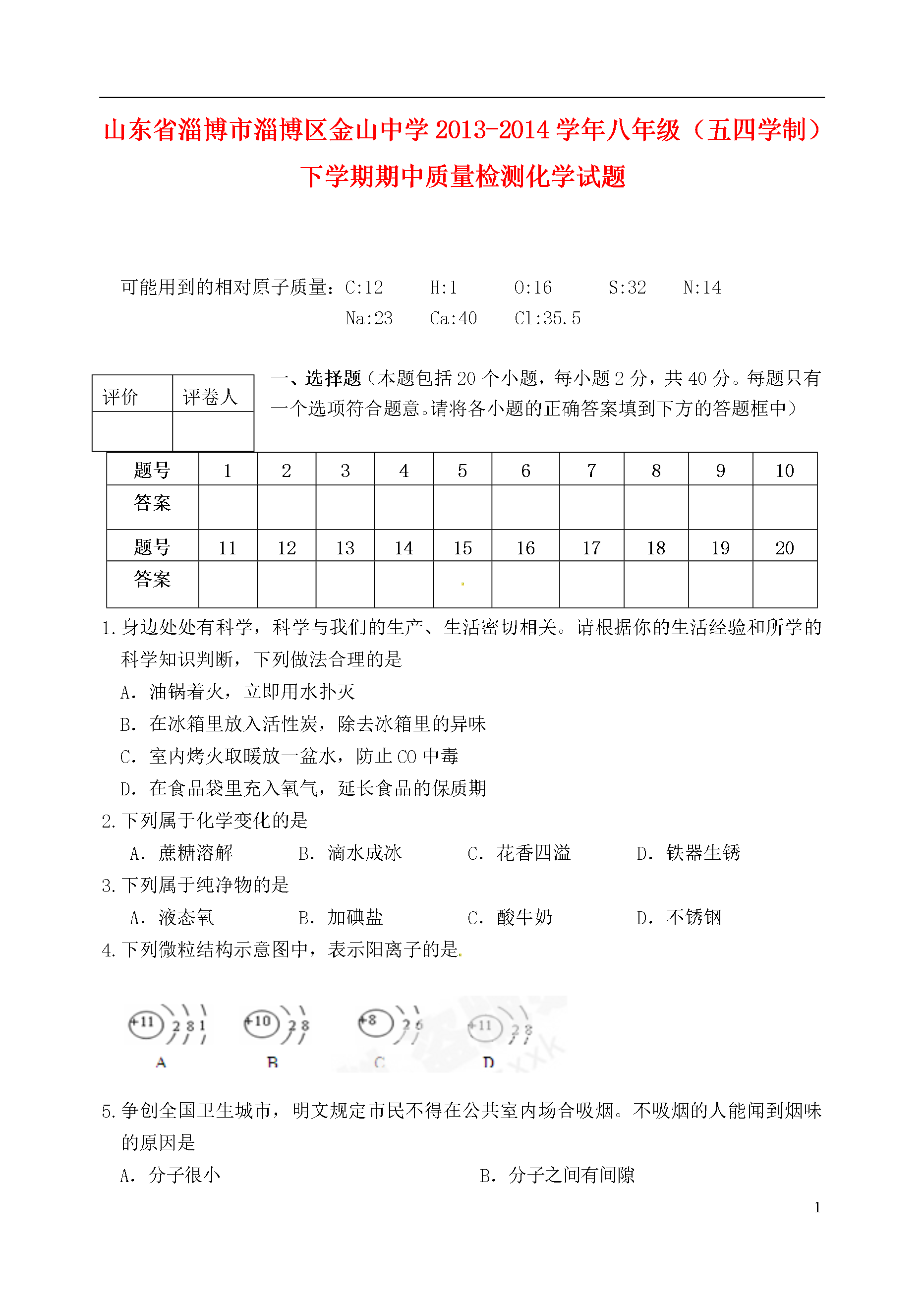 试题-山东-2014_山东省淄博市淄博区金山中学2013-2014学年八年级化学下学期期中质量检测试题 五四制.rar