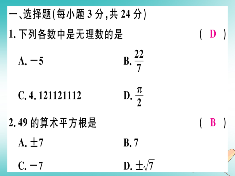 (广东专级数学上册 阶段综合训练三 无理数、平方根与立方根习题讲评课件 (新版)北师大版-(新版)北师大级上册数学课件.ppt