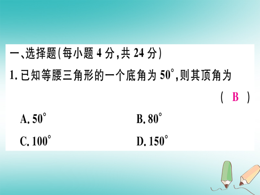 (广东专级数学上册 阶段综合训练七 等腰三角形的性质与判定课件 (新版)新人教版-(新版)新人教级上册数学课件.ppt