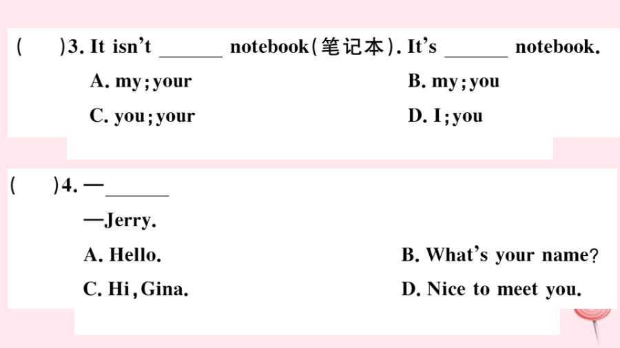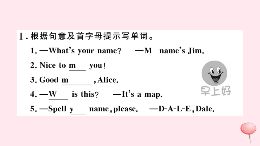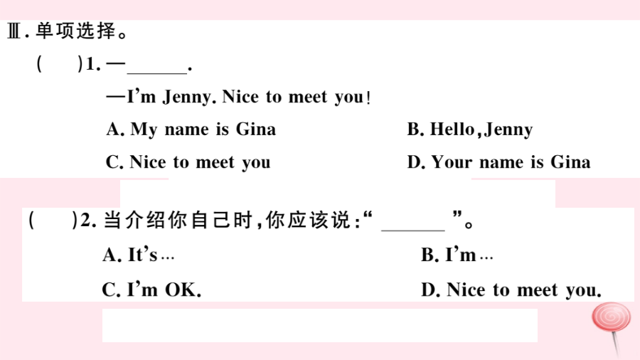 (河南专级英语上册 Unit 1 My name's Gina第一课时习题课件(新版)人教新目标版-(新版)人教新目标级上册英语课件.pptx