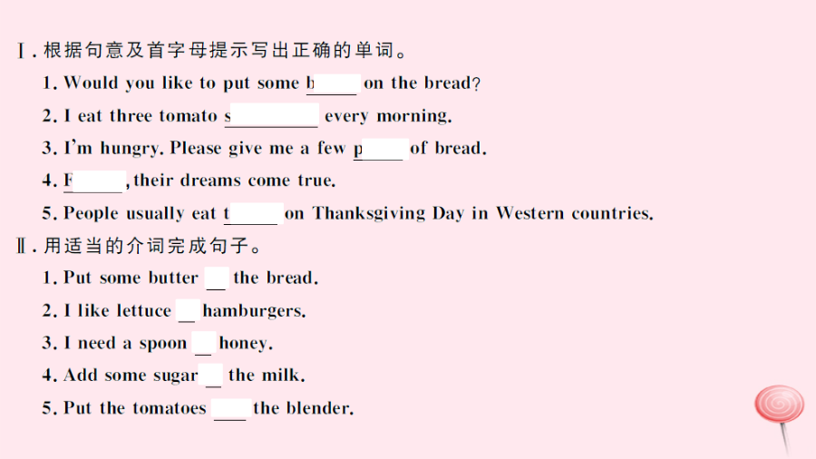 (武汉专级英语上册 Unit 8 How do you make a banana milk shake第三课时习题课件(新版)人教新目标版-(新版)人教新目标级上册英语课件.ppt