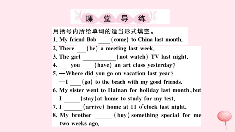 (江西专级英语上册 Unit 1 Where did you go on vacation第二课时习题课件(新版)人教新目标版-(新版)人教新目标级上册英语课件.pptx