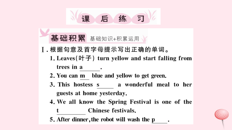 (江西专级英语上册 Unit 8 How do you make a banana milk shake第四课时习题课件(新版)人教新目标版-(新版)人教新目标级上册英语课件.pptx