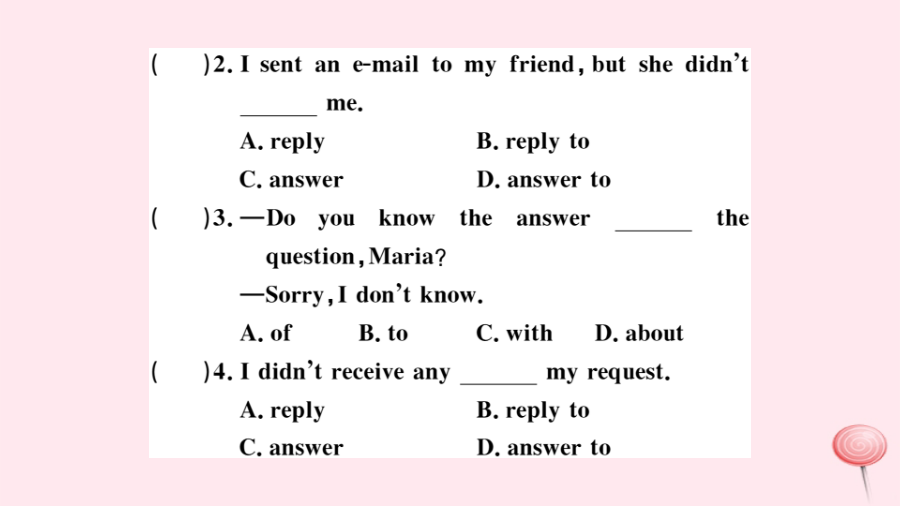 (江西专级英语上册 Unit 9 Can you come to my party第四课时习题课件(新版)人教新目标版-(新版)人教新目标级上册英语课件.pptx