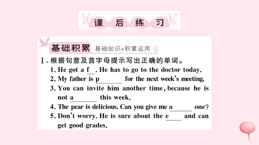 (江西专级英语上册 Unit 9 Can you come to my party第一课时习题课件(新版)人教新目标版-(新版)人教新目标级上册英语课件.pptx