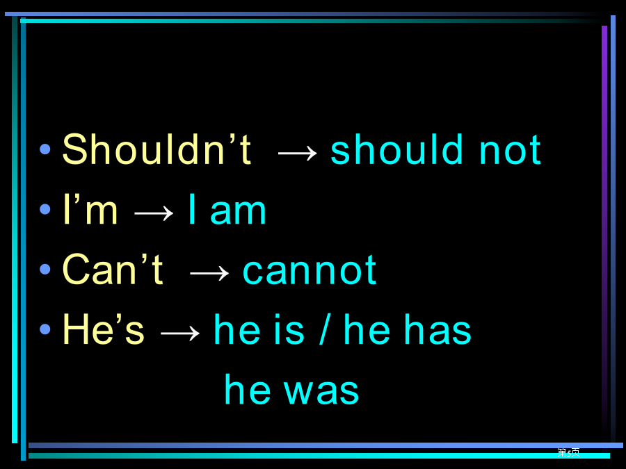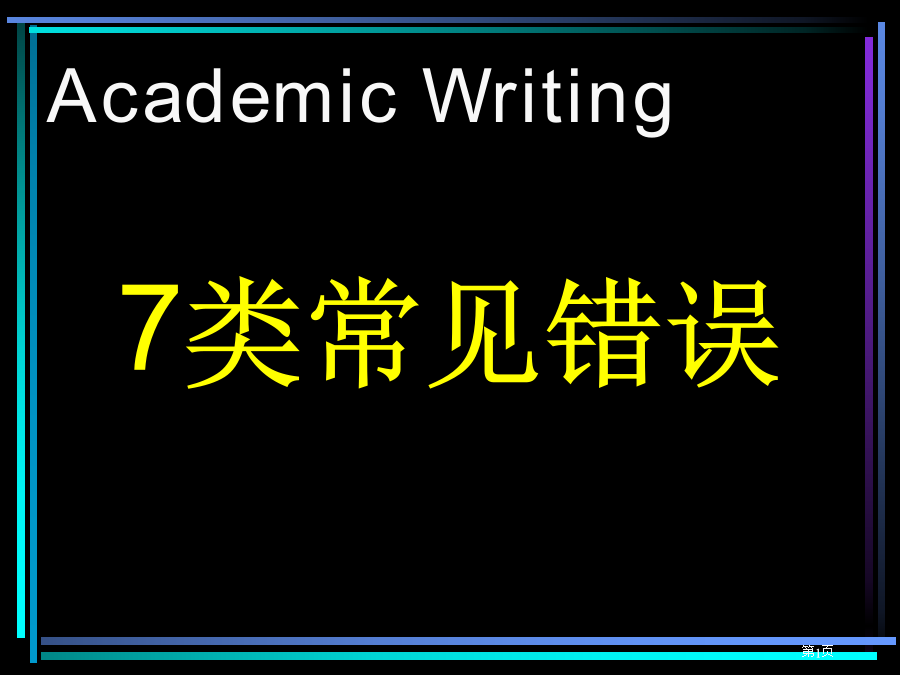 AcademicWriting1.省略Wealthyparentsshouldn't spoiltheirchildren. Shouldn’t I’m Can’t He’s Shouldn’t→shouldnot I’m→Iam Can’t→cannot He’s→heis/hehas hewas 2.Informallanguage Today,newspapers reportlotsofcrimesin horribledetails.lotsof ahostof avastnumberof numerous agreatdealof agreatamountof 3.Spelling 英美词汇差别英式美式 seze/ce analyseanalyze civilisecivilize practisepractice globaliseglobalize 英式美式 ouror colourcolor neighbourneighbor favouritefavorite 英式美式 长短 storeystory dialoguedialog archaeologyarcheology jewellryjewelry travellertraveler 4.词汇没有特色 例句1 Seriouscrimesharm people’slives. →severe →offense/criminalact →damage/destroy undermine/jeopardize →individuals/man/ mankind例句2 Theadvantagesofspace researcharemorethanits Disadvantages. 例句2 Theadvantagesofspace researcharemorethanits Disadvantages. bemorethan →outweigh例句3 Ourworldisbecomingmore andmorereliantonmodern Technology.moreandmore →increasingly+adj onarise5.句子无衔接 1.Theenvironmentisbecoming worse.Wemustworktogetherto dealwiththissituation. 分析句间关系 加衔接词 Theenvironmentisbecomingworse; therefore,wemustworktogethertodeal withthissituation. 2.Opinionsfromdifferentpeoplewillhelpusfinishourworkbetterandfaster,theiropinionscanserveasasoundinformationchannel,whichleadstoabettersolutiontoaproblem.2.Opinionsfromdifferentpeoplewillhelpusfinishourworksbetterandfaster,becausetheiropinionscanserveasasoundinformationchannel,whichleadstoabettersolutiontoaproblem.6.感情色彩过于强烈 loveletter式写作 So,weshouldmakesurethat globalizationdoesnotharmourown traditionalculture! !改。 So不要和should连用,感情强烈。→therefore7.宗教作为引言 Wemustbefriendlytoothers becausetheBiblesays,“treat yourneighborsasyouwouldlike tobetreated.” 引言:名人名言/公认观点 Bible圣经:信奉,非逻辑推理