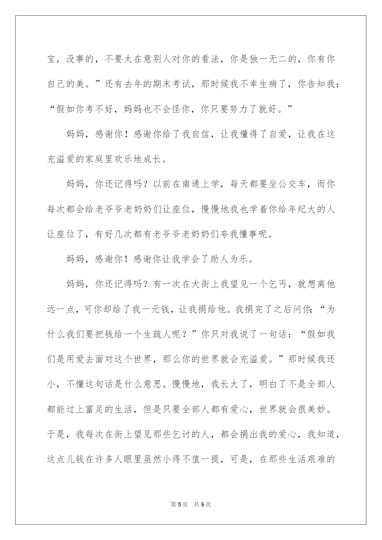 第PAGE\*Arabic\*MERGEFORMAT9页共NUMPAGES\*Arabic\*MERGEFORMAT9页第PAGE\*MERGEFORMAT9页共NUMPAGES\*MERGEFORMAT9页 第PAGE\*MERGEFORMAT9页共NUMPAGES\*MERGEFORMAT9页 第PAGE\*MERGEFORMAT9页共NUMPAGES\*MERGEFORMAT9页 第PAGE\*MERGEFORMAT9页共NUMPAGES\*MERGEFORMAT9页 第PAGE\*MERGEFORMAT9页共NUMPAGES\*MERGEFORMAT9页 第PAGE\*MERGEFORMAT9页共NUMPAGES\*MERGEFORMAT9页 第PAGE\*MERGEFORMAT9页共NUMPAGES\*MERGEFORMAT9页 第PAGE\*MERGEFORMAT9页共NUMPAGES\*MERGEFORMAT9页 第PAGE\*MERGEFORMAT9页共NUMPAGES\*MERGEFORMAT9页 第PAGE\*MERGEFORMAT9页共NUMPAGES\*MERGEFORMAT9页 2022五年级妈妈作文 五年级妈妈作文6篇无论是在学校还是在社会中,大家肯定都接触过作文吧,作文是经过人的思想考虑和语言组织,通过文字来表达一个主题意义的记叙方法。那么问题来了,究竟应如何写一篇优秀的作文呢?下面是我帮大家整理的五年级妈妈作文6篇,欢迎阅读,希望大家能够喜爱。五年级妈妈作文篇1我有一位慈爱的母亲。短短的头发,卷起了一个“小浪花”头。长长的眉毛下面长着一双水灵灵大的眼睛。她的耳朵被那不听使唤的头发盖住了。又长又尖的鼻子下,长了一张小嘴巴。但它说起话来真叫人快乐!妈妈特别爱我。从小到大,基本上都是妈妈照看我的。妈妈常说,有些事情是女人才做得到的。小时候,我半夜尿床后,便大哭起来,我的哭声把正在熟睡的妈妈吵醒了。妈妈赶忙起来替我换衣服、换床单,安排好我以后,她才又躺下。从今以后,妈妈不像以前那样睡得那么熟了,只要有什么声音就会醒来。我上一年级了,妈妈几乎每天晚上都坐在我身边,陪我一块学习,她自己的事情,常常要在我休息后才起先着手处理。现在,我长大了,妈妈不再像以前那样成天坐在我身边了,可还时常进来看看我,提示我要抓紧时间,仔细学习。妈妈白天工作,晚上辅导我,还要做家务活。她自己病了也只是随意地去药房买一些药吃,但我病了却赶忙请假照看我,带我去医院看病。莫非她的身体不重要?只有我的身子才重要么?我是妈妈的心肝珍宝,但没有了妈妈就没有了我呀!她怎能只照看我呢?真是“可怜天下父母心”啊!我真想对妈妈说:“妈妈,感谢您!我恒久爱您!”五年级妈妈作文篇2敬爱的妈妈:您好!从我呱呱坠地到辛辛学子,始终都是您陪伴在我身边,关切我、呵护我,让我长大成人,独立翱翔。少年无知的我,不少惹您生气,我知道您生我的气是出于爱我,记得那次我在学校里挨到了校长的指责,窝了一肚子火回到家,您一看我心情很不好,就非常焦急地问我怎么回事,我听得不耐烦,就冲着您吼了几句。我知道,当时伤透了您的心,对不起!妈妈,请宽恕女儿的无知。在我的成长中,您就像一把大伞,在疾风骤雨中为我撑起一个温馨的港湾。下雨时,您为我撑起了一把大伞,但是,这把伞却非比寻常,因为,它是斜着的,这把伞里装满了浓浓的爱意,回到家我的身上一点也没湿。而您,却湿了大半个身子。这是,一股暖流涌上我心头,我在想:妈妈,您真好!您是不知疲乏的,爸爸外出干活,您不辞辛苦,毅然撑起这个家。我发觉,您的白发越来越多了,皱纹也越来越多了!您辛苦了,妈妈!老舍说过:“失去了慈母的爱便像花插在瓶子里,虽然还有色有香,却失去了根。”我读了这句话后,明白了您对我是多麽重要,就像根对于花一样!祝您越来越年轻,做女儿的要一辈子陪在您的'身边!最终,我只想对您说:“妈妈,我爱您!”五年级妈妈作文篇3不知从什么时候起先,我慢慢的学会了懂事,今日为了让妈妈快乐一下,于是我打算帮妈妈炒一次饭。我在冰箱里拿了一块肉,我先把它煮熟,然后把它放在菜板上,再拿着锐利的菜刀,当心翼翼地一刀一片地切,尽量得切得最薄,由于过于胆怯 ,手都起先颤抖了,切得一点都不整齐,后来我鼓起志气,心想不就是切肉嘛,没什么了不得的,于是我把菜刀捉紧了,这次切得整齐多了,哦耶!把肉切成片后,然后把肉叠起来,一刀一刀地切成丝状,然后把青椒也切成丝。再在锅里倒些菜油,等到锅里冒烟了,就把盐巴和豆瓣放进肉丝里,然后搅拌,搅拌匀称后再把它放进锅里。这时,我已经满头大汗了。不过我心里却是乐滋滋的。妈呀!我青椒忘了放了,我赶忙把青椒放