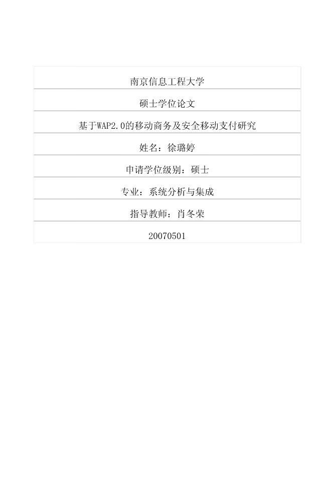 南京信息工程大学 硕士学位论文 基于WAP2.0的移动商务及安全移动支付研究 姓名:徐璐婷 申请学位级别:硕士 专业:系统分析与集成 指导教师:肖冬荣 20070501 摘要移动商务是那些依托移动通信网络,使用手机、掌上电脑、笔记本电脑等移动通信终端和设备所进行的各种商业信息交互和各类商务活动。随着互联网和移动通信技术的不断发展成熟以及相互融合,移动商务以其灵活、简单、方便等传统电子商务无法比拟的优点而成为一种新兴的商务模式,并潜藏着巨大的经济增长实力。与此同时,移动商务也代表着最新技术的应用。其中,WAP是开展移动商务的核心技术之一,而WAP的最新版本WAP2.0在WAPl.x的基础上集成了Interact上最新的标准和技术,并将这些技术和标准应用到无线领域。由于WAP2.0采用了WTLS和WIM(WirelessModule,无线身份识别模块技术),使得其在支持多种鉴权方式(匿名访问、客户端鉴权和服务器鉴权),安全会话控制和数字签名等多种安全措施方面,能够提供更为完善和有效的安全机制,因此在移动商务涵盖的多个领域内有着越来越多的应用。移动商务中的关键问题是移动支付问题,为移动付款机制制定标准是移动商务成功的基石,实现安全、准确的支付是用户和服务商最关心的问题。但是移动商务由于利用了很多新兴的技术和设备带来了很多新的安全问题。由于移动支付的安全性问题没有得到很好的解决,导致移动商务在我国的发展受到了基于以上一些问题的考虑,本文首先深入研究分析了移动商务及其核心技术WAP2.0,接着着重讨论移动商务中的安全闯题及最关键问题——移动支付,进而在此基础上研究如何实现一个安全有效的移动支付系统。关键词:移动商务,WAP2.0,移动支付,WTLS,WPKI一定的阻碍。南京信息工程大学硕士学位论文基5:WAP2.0的移动商务及安全移动支付研究Identity Mobileintemetandthenadvantagesflexibility,simplenessconvenience,whichrepresentsthose,WAPWAP,WAP2.0WAPl.)【’andwirelessenvironment.TheadoptionWTLSWIMWAP2.0efficientmodes(anonymouscommunicatebecomingeconomicE-commercecommerceintegratesthesecurityvariousAbstractCommercecaD_beidentified部theofbusinessinformationactivityallmobilecommunicationnetwork,usingterminalequipmentssuchcellphone,palmPC,notebookcomputeron.Alongwithsustaineddevelopmentmaturationtechniquesmeltingtogether,mobilenewlymodehashugegrowingpotentialitybecauseitstraditionalbecomparedwith.Atsametime,mobileapplicationlatesttechniques.Amongiskeydevelopcommerce.Asversionnewstandersinternetbaseappliesthemintomakesableprovidesafermoremechanisminmeasuressupportingseveraldifferentauthenticationexchangedependindgwhichrisingaspects南京信息工程大学硕士学位论文基于WAF2.0的移动商务及安全移动支付研究sortsnottoonasSOareacalloneⅡ techniql静—J泓P2.0payment,WTLS,WIMpaymentpayment.Tocorrect.However,manyunsettlingcountry.Words:mobileauthentication),safeWAP2.0andpayment.AnddegreecomRlerce,WAP2.0,mobilefoml.Ascommerce,theproviderstheproblemanalyzed,thenefficientcontrollingbeingofmobilecoIRrnerce.mobilemostimportantformulatemechanismcommerce.USerSserviceforwhichproblemsbroughtinofe