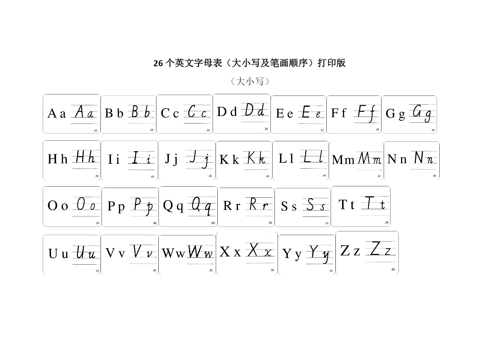 26个英文字母表(大小写及笔画顺序)打印版 (大小写)