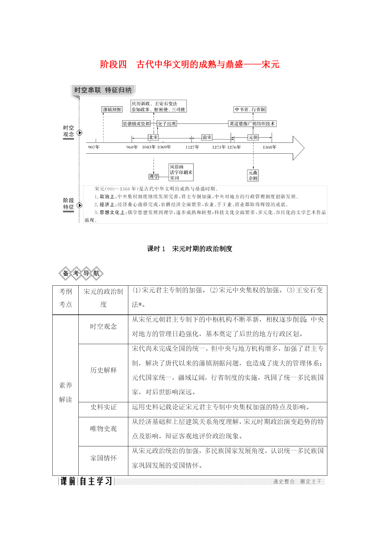 (通史版)高考历史一轮复习 阶段四 古代中华文明的成熟与鼎盛——宋元 课时1 宋元时期的政治制度学案(含解析)岳麓版-岳麓版高三全册历史学案.doc