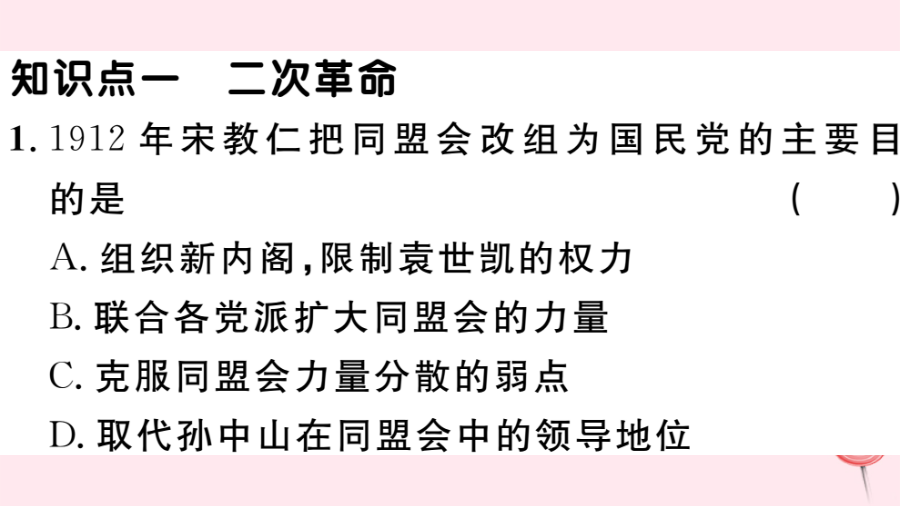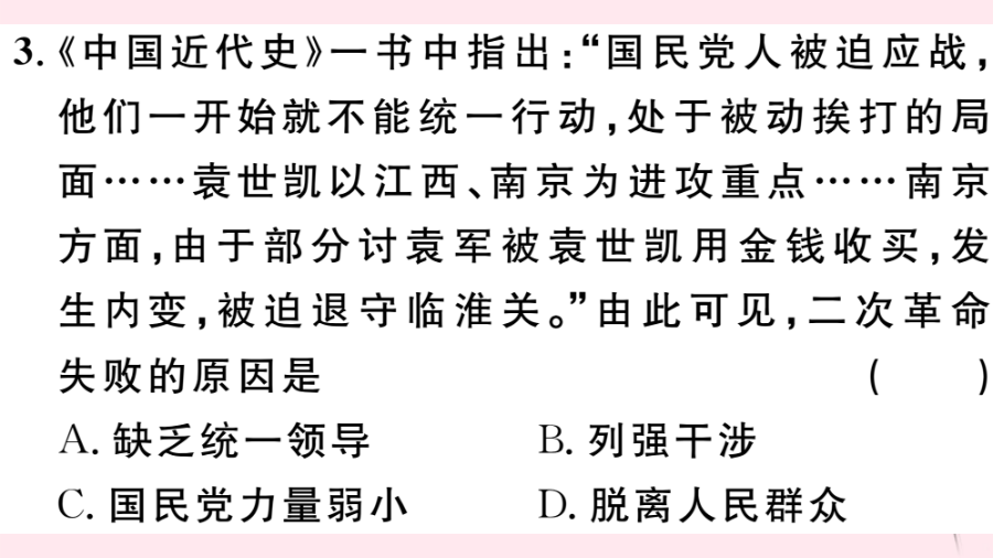 秋八年级历史上册 第三单元 资产阶级民主革命与中华民国的建立11 北洋政府的统治与军阀割据习题课件 新人教版-新人教级上册历史课件.ppt