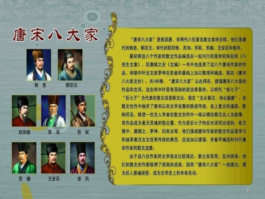 唐宋八大家韩愈初春小雨柳宗元江雪欧阳修卜算子苏洵欧阳永叔白兔苏轼饮湖上初晴后雨(其二)苏辙怀渑池寄子瞻兄王安石元日曾巩咏柳
