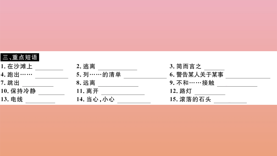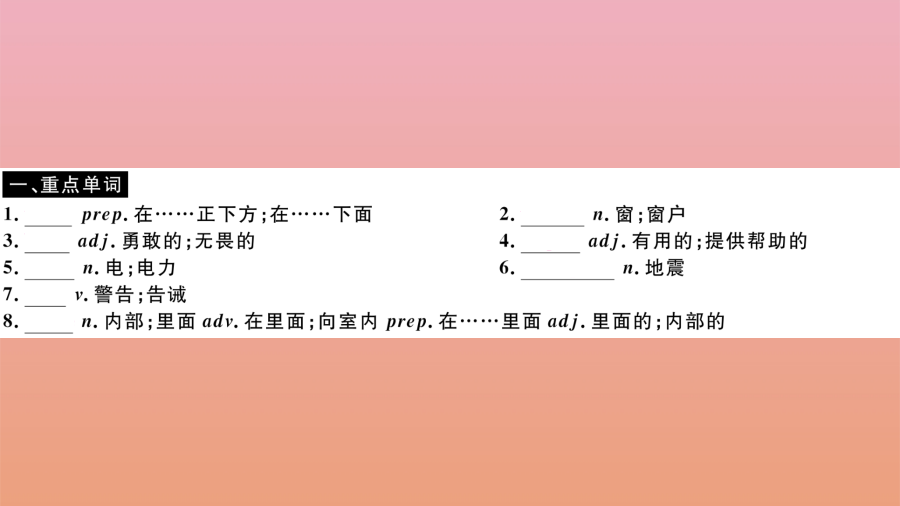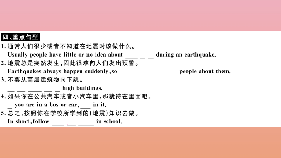 2020秋八年级英语上册 Module 12 Help Unit 2 Stay away from windows and heavy furniture(小册子)作业课件 (新版)外研版.pptx