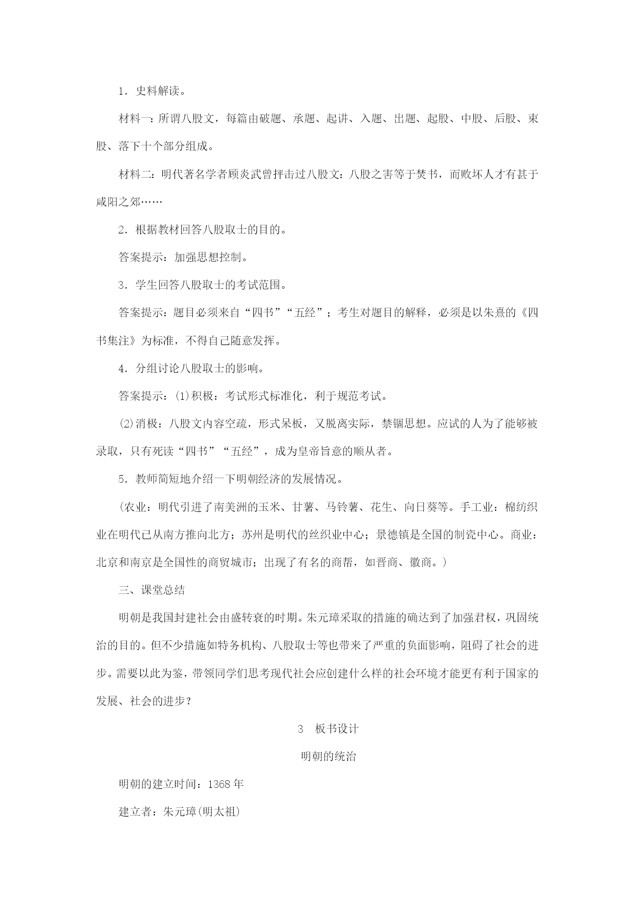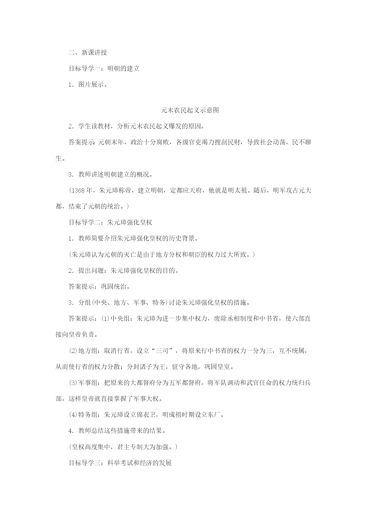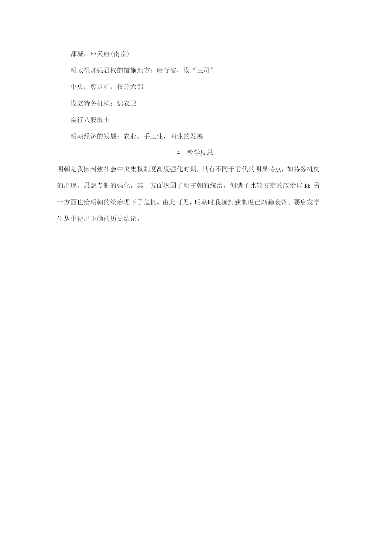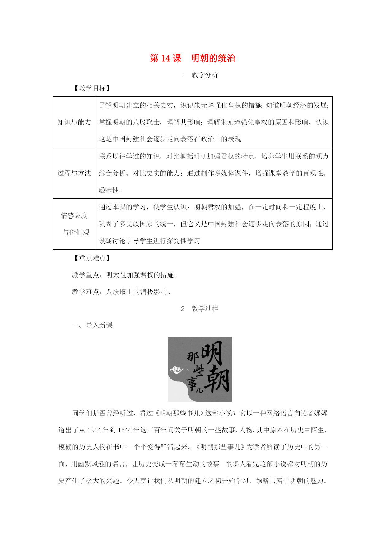 春七年级历史下册 第三单元 明清时期 统一多民族国家的巩固与发展 第14课 明朝的统治教案 新人教版-新人教版初中七年级下册历史教案.doc