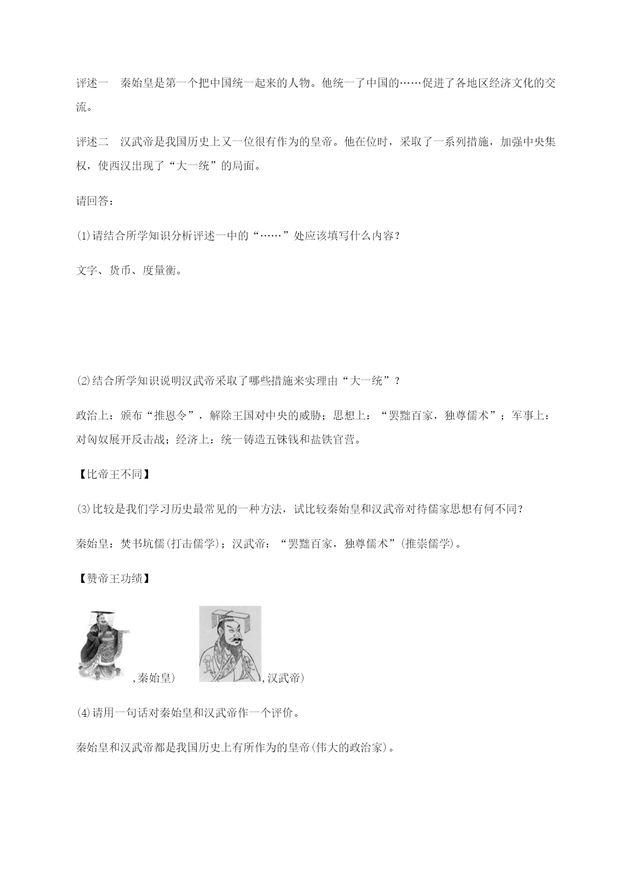 (秋季版)七年级历史上册 第三单元 秦汉时期 统一国家的建立单元复习 新人教版-新人教版初中七年级上册历史试题.doc