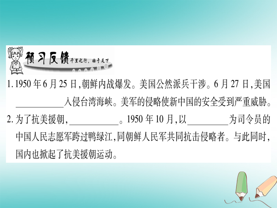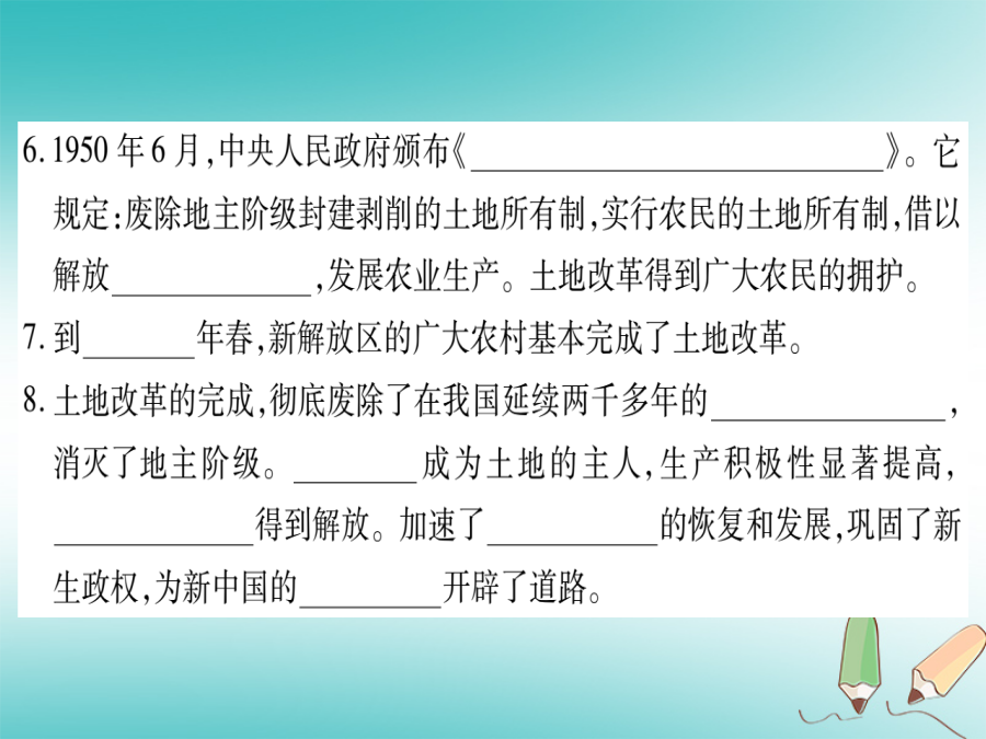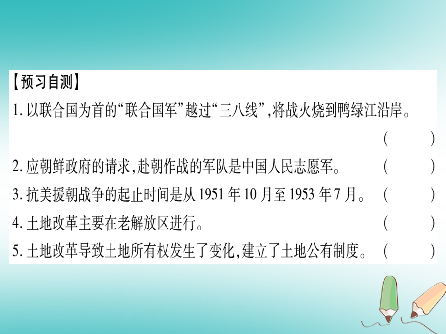 春八年级历史下册 第一单元 中华人民共和国的成立 第02课 抗美援朝与土地改革习题课件 中华书局版-中华书局级下册历史课件.ppt