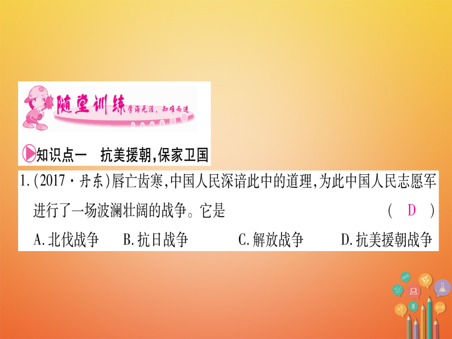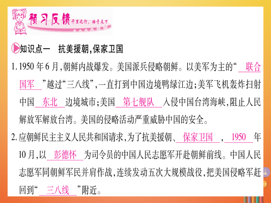 春八年级历史下册 第一单元 中华人民共和国的成立和巩固 第2课 抗美援朝习题课件 新人教版-新人教级下册历史课件.ppt