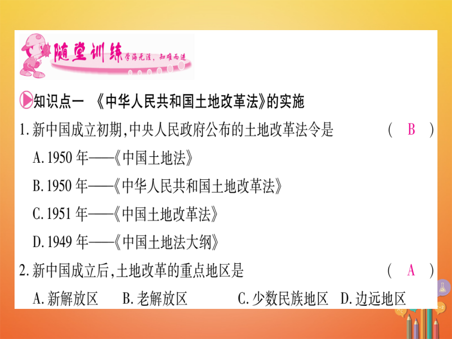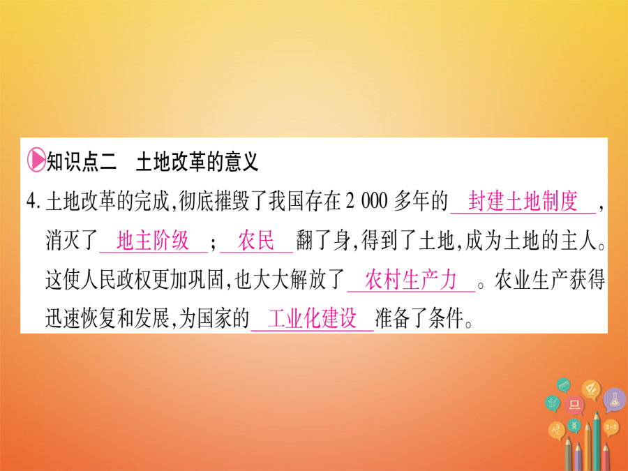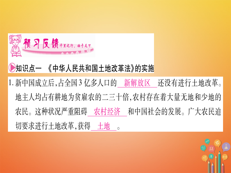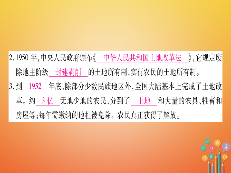 春八年级历史下册 第一单元 中华人民共和国的成立和巩固 第3课 土地改革习题课件 新人教版-新人教级下册历史课件.ppt