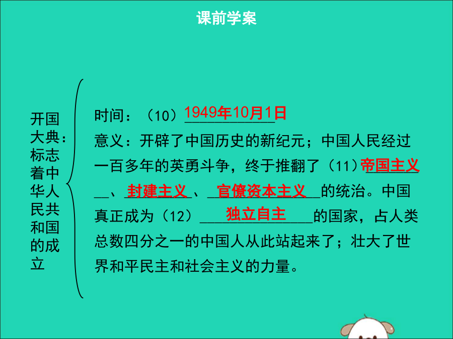 春八年级历史下册 第一单元 中华人民共和国的成立和巩固 第1课 中华人民共和国成立导学课件 新人教版-新人教级下册历史课件.ppt