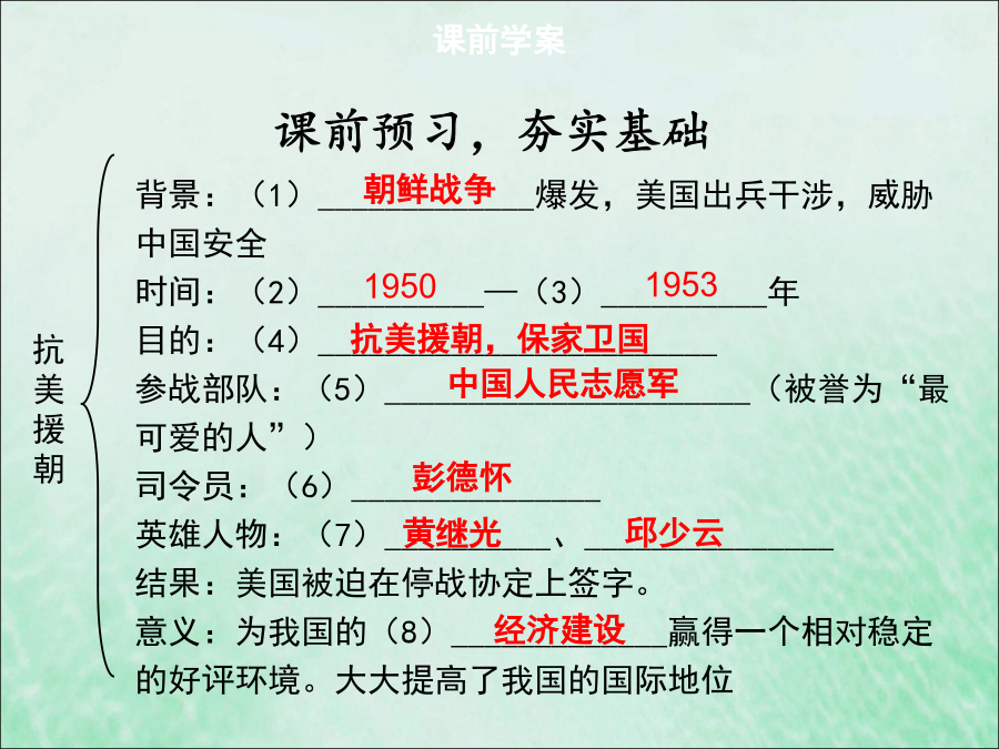 春八年级历史下册 第一单元 中华人民共和国的成立和巩固 第2课 抗美援朝导学课件 新人教版-新人教级下册历史课件.ppt