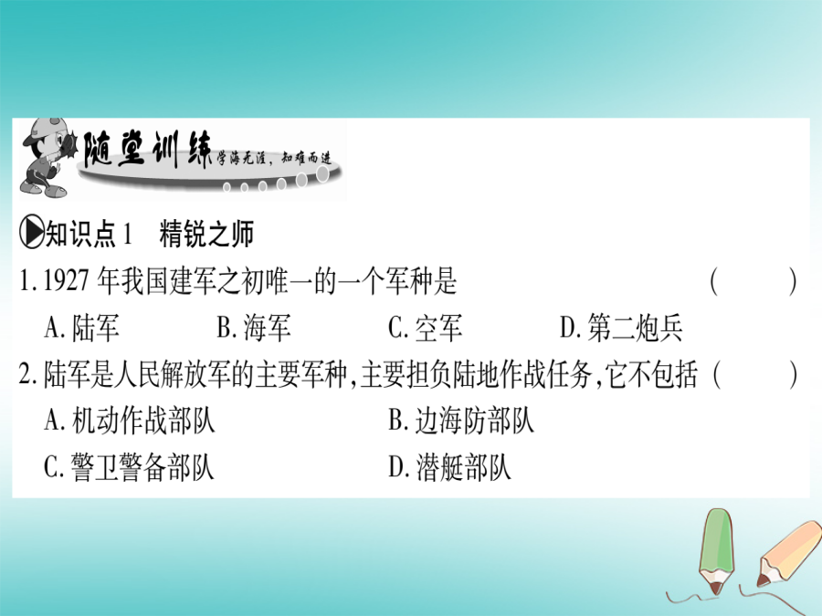 春八年级历史下册 第五单元 祖国统一和国防建设事业的发展 第15课 威武之师 钢铁长城习题课件 中华书局版-中华书局级下册历史课件.ppt
