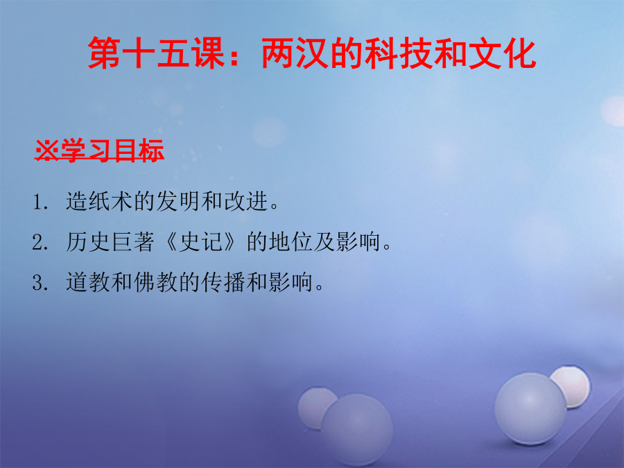 七年级历史上册 第3单元 秦汉时期 统一多民族国家的建立和巩固 第15课 两汉的科技和文化课件 新人教版 课件.ppt