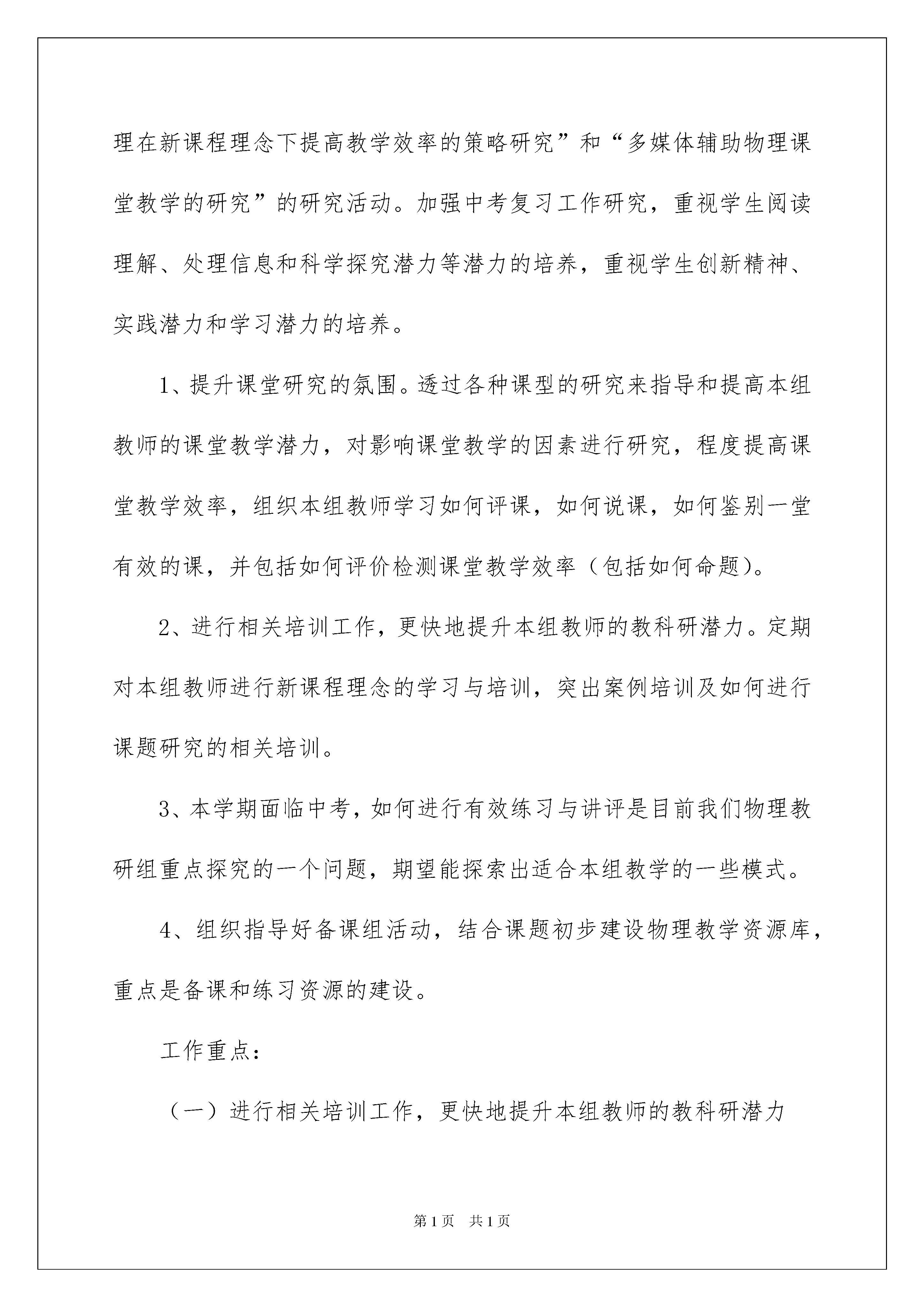 2022精选初中物理教研组工作计划3篇精选初中物理教研组工作计划3篇光阴迅速,一眨眼就过去了,迎接我们的将是新的生活,新的挑战,此时此刻我们需要开始做一个工作计划。那么如何做出一份高质量的工作计划呢?以下是我收集整理的初中物理教研组工作计划3篇,仅供参考,大家一起来看看吧。初中物理教研组工作计划篇1本学期我校高中物理教研组工作,认真学习和贯彻《基础教育课程改革纲要(试行)》,紧紧围绕提高课堂教学效率这个中心,狠抓教学常规的落实,深化课堂教学改革,全面提高本校物理教师素质和教学质量。具体工作主要有以下几点:一、加强教育教学理论学习,提高物理教师理论素养1、认真学习新的《基础教育课程改革纲要》、《物理课程标准》、《学科标准解读》和有关综合实践活动、研究性学习、课程改革与课程评价等各类课程改革的材料。2、组织教师进行理论学习交流。二、按物理课程标准,进行教学研究,提高课堂教学效益1、设立新课程标准教学研究小组,共同研究,促使课程改革。本学期教学研究资料主要是。⑴优化课堂教学,实施启发式和讨论式教学。⑵构建教学模式,重视物理知识的构成过程教学和情境教学。⑶开展研究性学习和综合实践活动,重视科学探究教学,发挥学生的主体作用,加强学生的创新意识和实践潜力的培养。2、加强教学常规调研,做好备课教案、听课笔记、作业批改等的检查。初中物理教研组教学工作计划范文5物理教研组工作的总体要求是:认真执行学校和教研组教学计划,继续开展对新课程新教材的研究,把课程改革作为教研工作的中心,继续认真学习新课标新教材,用心参与教研活动,提高每一位教师的课程理解水平和课程实施潜力。使教研活动服务于学校、服务于每位教师、服务于课堂的基本理念。本学期的重点工作:加强学习课程标准和教学要求,转变教育观念,改革课堂教学,改善学习方式。用心参与教研室组织的“初中物理在新课程理念下提高教学效率的策略研究”和“多媒体辅助物理课堂教学的研究”的研究活动。加强中考复习工作研究,重视学生阅读理解、处理信息和科学探究潜力等潜力的培养,重视学生创新精神、实践潜力和学习潜力的培养。1、提升课堂研究的氛围。透过各种课型的研究来指导和提高本组教师的课堂教学潜力,对影响课堂教学的因素进行研究,程度提高课堂教学效率,组织本组教师学习如何评课,如何说课,如何鉴别一堂有效的课,并包括如何评价检测课堂教学效率(包括如何命题)。2、进行相关培训工作,更快地提升本组教师的教科研潜力。定期对本组教师进行新课程理念的学习与培训,突出案例培训及如何进行课题研究的相关培训。3、本学期面临中考,如何进行有效练习与讲评是目前我们物理教研组重点探究的一个问题,期望能探索出适合本组教学的一些模式。4、组织指导好备课组活动,结合课题初步建设物理教学资源库,重点是备课和练习资源的建设。工作重点:(一)进行相关培训工作,更快地提升本组教师的教科研潜力1、定期对本组教师进行新课程理念的学习与培训,本学期重点学习《物理课程标准》、《新课程理念下的有效课堂教学策略》《教师如何做课题》等各类课程改革的材料,并用这些理论来指导平时的课堂教学。2、突出案例培训,例如如何撰写教学反思、教学案例、教学论文等,如何进行课题研究的相关培训。3、用心组织组内教师进行理论学习,参与年度中学物理教学论文和其他方面组织的论文撰写工作。(二)提升课堂研究的氛围透过各种课型的研究来指导和提高本组教师的课堂教学潜力,对影响课堂教学的因素进行研究,程度提高课堂教学效率,组织本组教师学习如何评课,如何说课,如何鉴别一堂有效的课,并包括如何评价检测课堂教学效率(包括如何命题)。(三)教学资源建设组织指导好备课组活动,结合课题初步建设物理教学资源库,一方面收集物理学科教学的理论与实践的资料(包括典型的案例集,配套练习集),另一方面整理出物理学科的教学资料(包括有主题性的课堂录像,开发的校本化的课程,富有学校自己特点的课堂设计方案,个性是每个备课组所积累的系统的拓展性的练习资料)。(四)用心做好青年教师的培养工作将继续开展传、帮、带工程建设,用心为青年教师成长创设发展平台,开设教学研究课,从而促使青年教师快速成长。具体措施:1、每学期初制定好教研组工作计划,做到目标明确,职责分明,措施有效。2、认真贯彻好教学常规,对备课、听课、评课作如下要求:备课具体要求:(1)钻研教材,年轻教师备详案,老教师备简案,但资料要做到重点突出,难点有化解方法。重点突出教师如何指导学生学习知识,学生学习知识的方法,而不是详细的介绍教师怎样把知识教给学生。(2)加强群众备课,做到“三定”:定时、定资料、定中心发言人,听课:随机听课。评课: