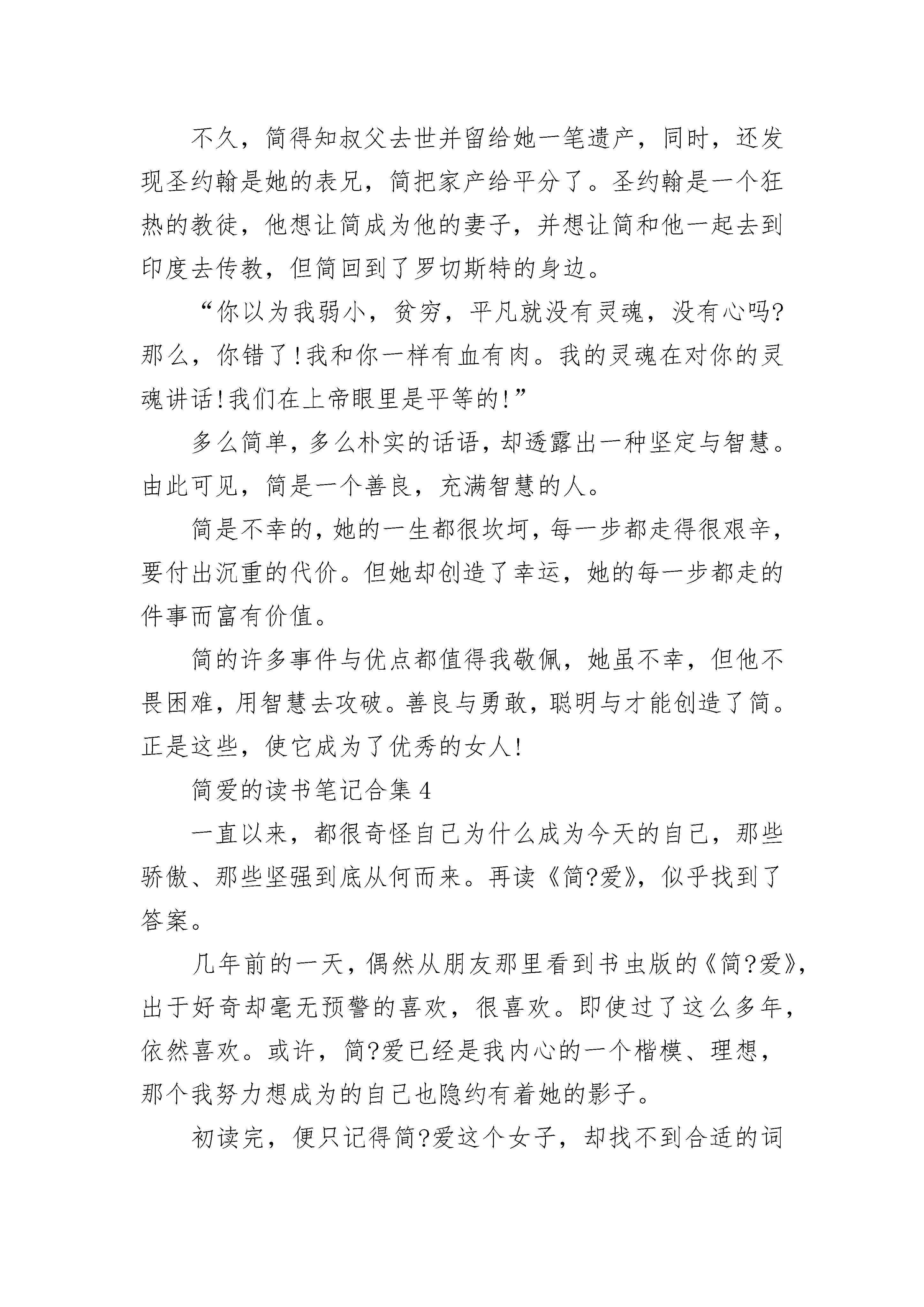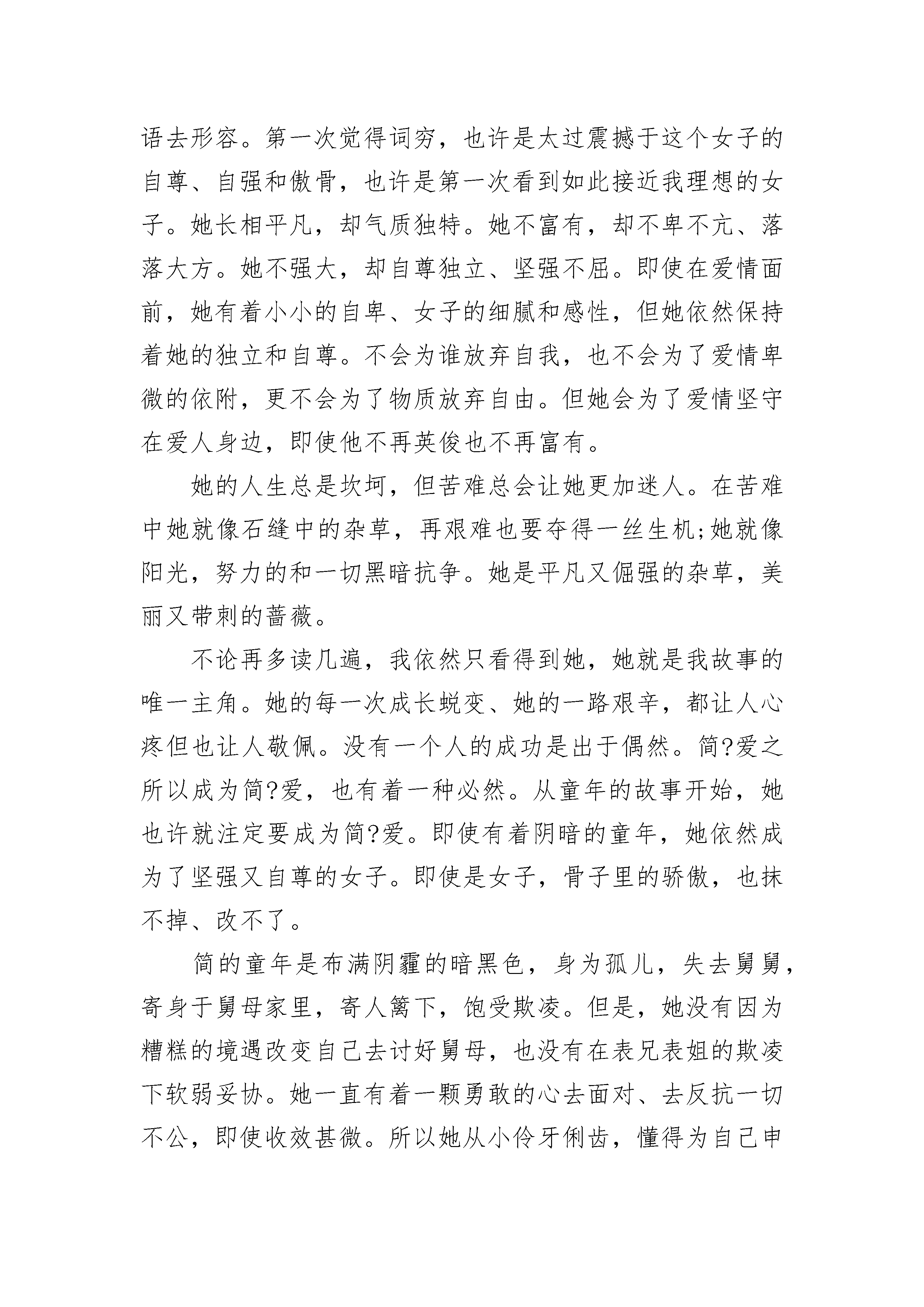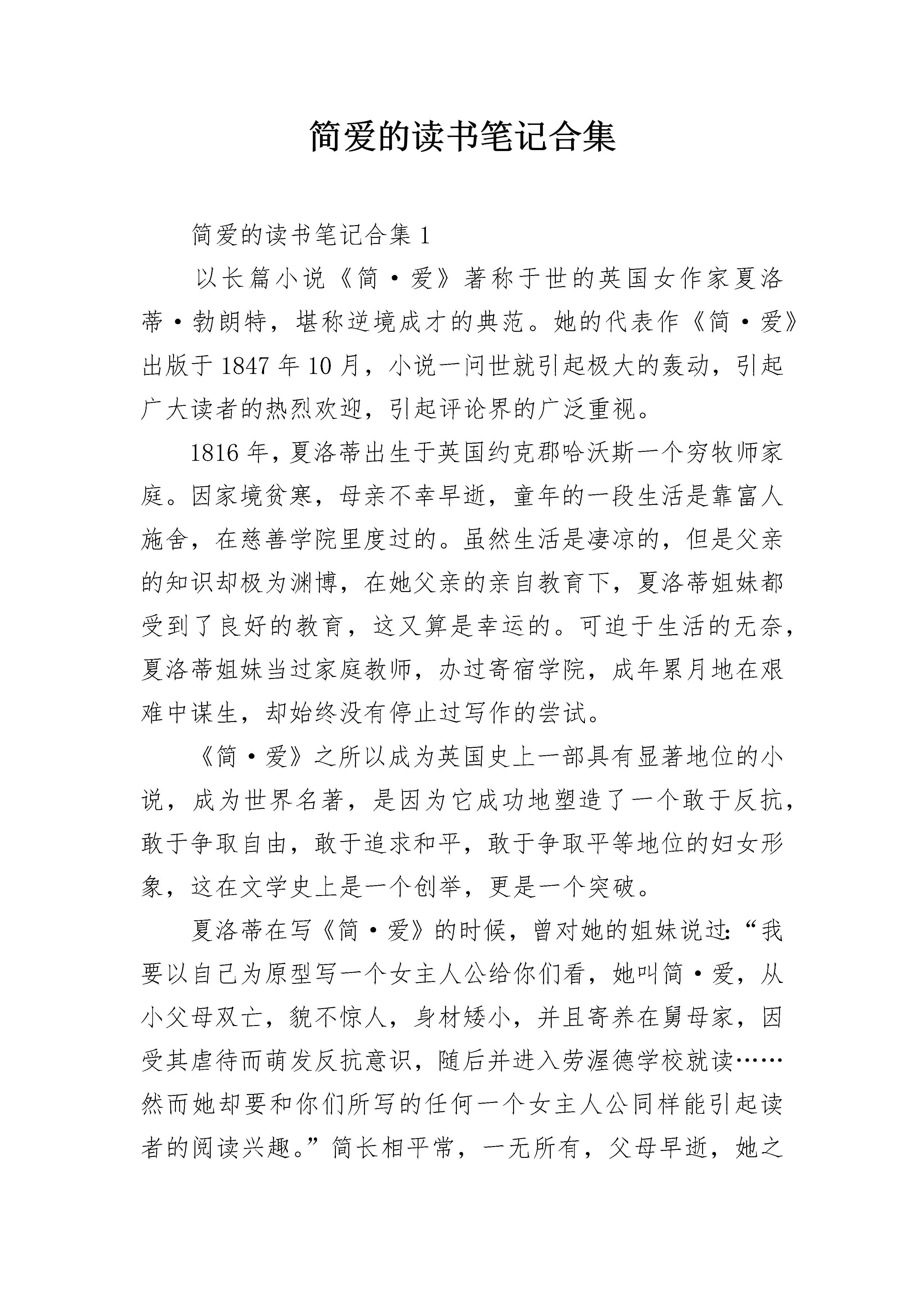 简爱的读书笔记合集简爱的读书笔记合集1以长篇小说《简·爱》著称于世的英国女作家夏洛蒂·勃朗特,堪称逆境成才的典范。她的代表作《简·爱》出版于1847年10月,小说一问世就引起极大的轰动,引起广大读者的热烈欢迎,引起评论界的广泛重视。1816年,夏洛蒂出生于英国约克郡哈沃斯一个穷牧师家庭。因家境贫寒,母亲不幸早逝,童年的一段生活是靠富人施舍,在慈善学院里度过的。虽然生活是凄凉的,但是父亲的知识却极为渊博,在她父亲的亲自教育下,夏洛蒂姐妹都受到了良好的教育,这又算是幸运的。可迫于生活的无奈,夏洛蒂姐妹当过家庭教师,办过寄宿学院,成年累月地在艰难中谋生,却始终没有停止过写作的尝试。《简·爱》之所以成为英国史上一部具有显著地位的小说,成为世界名著,是因为它成功地塑造了一个敢于反抗,敢于争取自由,敢于追求和平,敢于争取平等地位的妇女形象,这在文学史上是一个创举,更是一个突破。夏洛蒂在写《简·爱》的时候,曾对她的姐妹说过:“我要以自己为原型写一个女主人公给你们看,她叫简·爱,从小父母双亡,貌不惊人,身材矮小,并且寄养在舅母家,因受其虐待而萌发反抗意识,随后并进入劳渥德学校就读……然而她却要和你们所写的任何一个女主人公同样能引起读者的阅读兴趣。”简长相平常,一无所有,父母早逝,她之所以光彩夺目,是因为她不同寻常的气质,温文儒雅的谈吐,丰富而又曲折美好的感情世界。一百多年来,无数人阅读这本书,都有一个同样的原因——被简·爱的崇高精神和人格魅力深深吸引,我也不例外。每个人都被这样的话语征服和信服:“我的灵魂跟你的一样,我的心跟你的完全一样!……我现在跟你说话,并不是通过习俗、惯例……而是我的精神在同你说话;就像两个经过坟墓的灵魂,站在上帝面前,是平等的——因为我们是平等的!至少我们通过坟墓平等的站在上帝面前!”正是这种敢于向恶俗势力反抗、敢于追求和平、敢于争取平等地位、敢于创新和敢于突破自我超越自我的精神,让夏洛蒂笔下的简·爱获得了永生,也让我被她的这种精神深深感染,更被她的话语所征服!简爱的读书笔记合集2有这么一个人,背负着世界给她带来的一切不幸,当世界看到她的种.种劣势,告诉她生活不要有太多奢望,她偏偏不听。这样的传奇女子——简爱,以她乐观振憾了我们。也许她不漂亮,但她有着坚强的个性,也许她在人们眼中是位弱女子,可她依旧能主宰自己的命运。这渗透着女性独立思想的小说让我爱不释手,我为简爱的悲惨遭遇、雪上加霜的困难感到悲伤,为里德太太的偏心感到愤怒,为罗切斯造特先生失去一只手双眼感到同情。也许就是这样,世界就是这样。大多数人还都有着达尔文思想《物竞天择,适者生存》,世界就如同那样冷酷无情,至少并不是太美好。人类只会向那身上有光环的人们投向目光,那些卑微的人们孤独又无助,本应该选择认输,可有人却依然如此倔强。也许,他们只是那么想:为了生活罢了。但他们为了生活如此努力,他们相信明天是美好的、幸福的。也许,我们不曾担心过,不曾困难过,不曾对这世界有什么太多的奢望!可换了我们是简爱的话我们真的能创造美好的明天,成为自己命运的主宰吗?我想我们还过着无忧的生活,还来不及体会那么多的艰苦,我们也只能从书籍中体会吧,懂吧!《简·爱》给人坚强的感觉,但阅读完后会使人更加坚强,或许,这就是夏洛特勃朗蒂独特的文字与想象,《简·爱》的魅力之处吧!简爱的读书笔记合集3简是一个孤儿,她出生在一个很穷的牧师家庭,他的父母早就去世了,她的父母很早就去世了,幼小的简只能住在她舅父母家。舅父去世后,简过了整整20年的痛苦生活。简在这二十年里受尽了折磨。肉体的痛苦加上心灵上的痛苦,使得简大病了一场。可她的舅母里德太太依旧把她视为眼中钉。简和她的`舅母的对抗越来越公开,坚决。再后来简被送进了洛伍德学校。学校里的生活条件很恶劣,艰苦。在这种教规严厉的学校,简任然摆脱不了折磨。也经常有孩子受不了而病死。简于是在报上登了做家庭教师的广告。不久,简得知叔父去世并留给她一笔遗产,同时,还发现圣约翰是她的表兄,简把家产给平分了。圣约翰是一个狂热的教徒,他想让简成为他的妻子,并想让简和他一起去到印度去传教,但简回到了罗切斯特的身边。“你以为我弱小,贫穷,平凡就没有灵魂,没有心吗?那么,你错了!我和你一样有血有肉。我的灵魂在对你的灵魂讲话!我们在上帝眼里是平等的!”多么简单,多么朴实的话语,却透露出一种坚定与智慧。由此可见,简是一个善良,充满智慧的人。简是不幸的,她的一生都很坎坷,每一步都走得很艰辛,要付出沉重的代价。但她却创造了幸运,她的每一步都走的件事而富有价值。简的许多事件与优点都值得我敬佩,她虽不幸,但他不畏困难,用智慧去攻破。善良与勇敢,聪明与才能创造了简。正是这些,使它成为了优秀的女人!简爱的读书笔记合集4一直以来,都很奇怪自己为什么成为今天的自己,那些骄傲、那些坚强到底从何而来。再