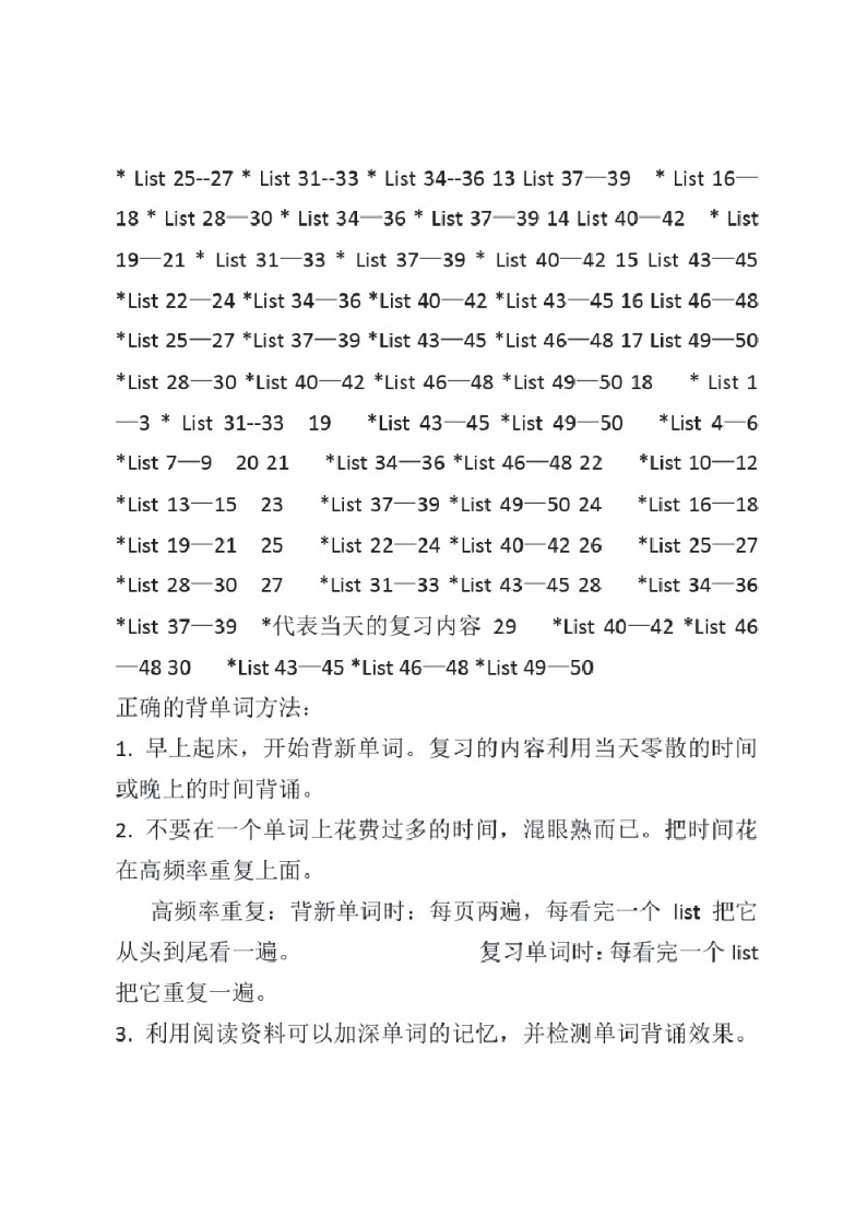 单词背诵计划表for《张红岩托福词汇》--资料nbsp;-