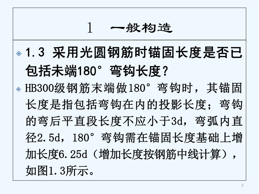 17G101-1G101系列图集施工常见问题答疑图解2019.015目录1一般构造3.14×3.5d/2+3d-2.5d/2-d=6.25d 钢筋弯折锚固的平直段长度量取方式同上(投影长度)。1.516G101系列图集涉及到的钢筋弯折锚固做法有几种?为什么要求必须保证平直段长度?2)平直段长度≥0.4labe(0.4lab),弯折段长度15d,要求平直段应伸至支座尽端;当锚固钢筋承受充分竖向压力作用时,平直段长度可适当减小,该种情况是情况1)的特殊形式,如框架中间层端节点处框架梁上、下部纵向钢筋的弯折锚固。大家有疑问的,可以询问和交流3)平直段长度≥0.35lab,弯折段长度15d,要求平直段宜伸至支座尽端;用于梁、板简支端上部钢筋的锚固。 4)框架顶层中柱顶纵向受力钢筋从梁底算起平直段长度≥0.5labe,弯折段长度12d,要求竖直段伸至柱顶。 16G101-1 2对于钢筋的弯折锚固,其平直段长度均需满足相应要求。对于因支座长度限制而造成无法满足弯折前平直段长度的情况,有些人认为可以将平直段减短些,弯折段加长些,总的长度满足锚固长度la或抗震锚固长度lae就可以了,这种做法是不合适的。 弯折锚固要求弯钩之前必须有一定的平直段锚固长度,是为了控制锚固钢筋的滑移,使构件不至于发生较宽的裂缝和较大的变形。12注意:框架梁端、柱端允许直线锚固。 剪力墙(包括墙身和边缘构件)墙顶、无梁楼板的柱顶不允许直线锚固,必须弯锚。陈青来答复03G101-1图集的问题 ●墙问题(1):在03G101-1图集中剪力墙竖筋在顶端要求锚入板中有个锚固长度,当剪力墙顶有暗梁AL时,是否只需锚入AL够锚固长度即可?■答墙问题(1):剪力墙竖向钢筋弯折伸入板内的构造不是“锚入板中”(因为板不是墙的支座),而是完成墙与板的相互连接。暗梁并不是梁(梁定义为受弯构件),它是剪力墙的水平线性“加强带”。暗梁仍然是墙的一部分,它不可能独立于墙身而存在,所以,当墙顶有AL时,墙竖向钢筋仍然应弯折伸入板中。1.6纵向受拉钢筋的绑扎搭接长度如何确定?搭接长度可以直接查,还是第一次出现,03G和11G都需要计算。1.7钢筋连接有何基本要求?各种连接方式的优缺点?4梁、柱类构件的纵向受力钢筋采用绑扎搭接时,应采取必要的构造措施,在纵向受力钢筋搭接长度范围内应配置横向构造钢筋。(见第1.11条) 5轴心受拉及小偏心受拉杆件(如桁架和拱的拉杆)的纵向受力钢筋不得采用绑扎搭接接头。 6当受拉钢筋的直径d≥25m及受压钢筋的直径d≥28m时,不宜采用绑扎搭接接头。GB50204-2015《混凝土结构工程施工质量验收规范》 5.4.4钢筋接头的位置应符合设计和施工方案要求。有抗震设防要求的结构中,梁端、柱端箍筋加密区范围内不应进行钢筋搭接。接头末端至钢筋弯起点的距离不应小于钢筋直径的10倍。 条文说明:加密区范围内尽可能不设置钢筋接头,如需连接则应采用性能较好的机械连接和焊接接头。GB50666-2011《混凝土结构工程施工规范》 5.4.1钢筋接头宜设置在受力较小处;有抗震设防要求的结构中,梁端、柱端箍筋加密区范围内不宜设置钢筋接头,且不应进行钢筋搭接。 条文说明:5.4.1受力钢筋的连接接头宜设置在受力较小处。如需在箍筋加密区内设置接头,应采用性能较好的机械连接和焊接接头。JGJ107-2016《钢筋机械连接技术规程》 4.0.3位于同一连接区段内的钢筋机械连接接头的面积百分率应符合下列规定: 2接头宜避开有抗震设防要求的框架的梁端、柱端箍筋加密区;当无法避开时,应采用Ⅱ级接头或I级接头,且接头面积百分率不应大于50%。钢筋机械连接接头工艺检验指标不全。 (检查表2.钢筋及钢筋焊接、机械连接材料) ——钢筋机械连接接头工艺检验应针对不同钢筋生产厂的钢筋进行,各种类型和型式接头都应进行工艺检验,检验项目包括单向拉伸极限抗拉强度和残余变形。 参考条文:JGJ107-2016《钢筋机械连接技术规程》第7.0.2条。JGJ107-2016《钢筋机械连接技术规程》 7.0.2接头工艺检验应针对不同钢筋生产厂的钢筋进行,施工过程中更换钢筋生产厂或接头技术提供单位时,应补充进行工艺检验。工艺检验应符合下列规定: 1各种类型和型式接头都应进行工艺检验,检验项目包括单向拉伸极限抗拉强度和残余变形;钢筋机械连接现场抽检项目可仅作极限抗拉强度试验。 JGJ107-2016《钢筋机械连接技术规程》 7.0.5接头现场抽检项目应包括极限抗拉强度试验、加工和安装质量检验。抽检应按验收批进行,同钢筋生产厂、同强度等级、同规格、同类型和同型式接头应以500个为一个验收批进行检验与验收,不足500个也应作为一个验收批。【省检反馈】 对材料的试验参数不了解。(机械连接工艺检验包含抗拉强度及残余变形两个参数) 钢筋机械连