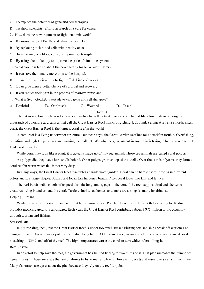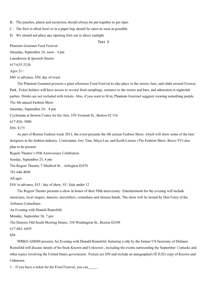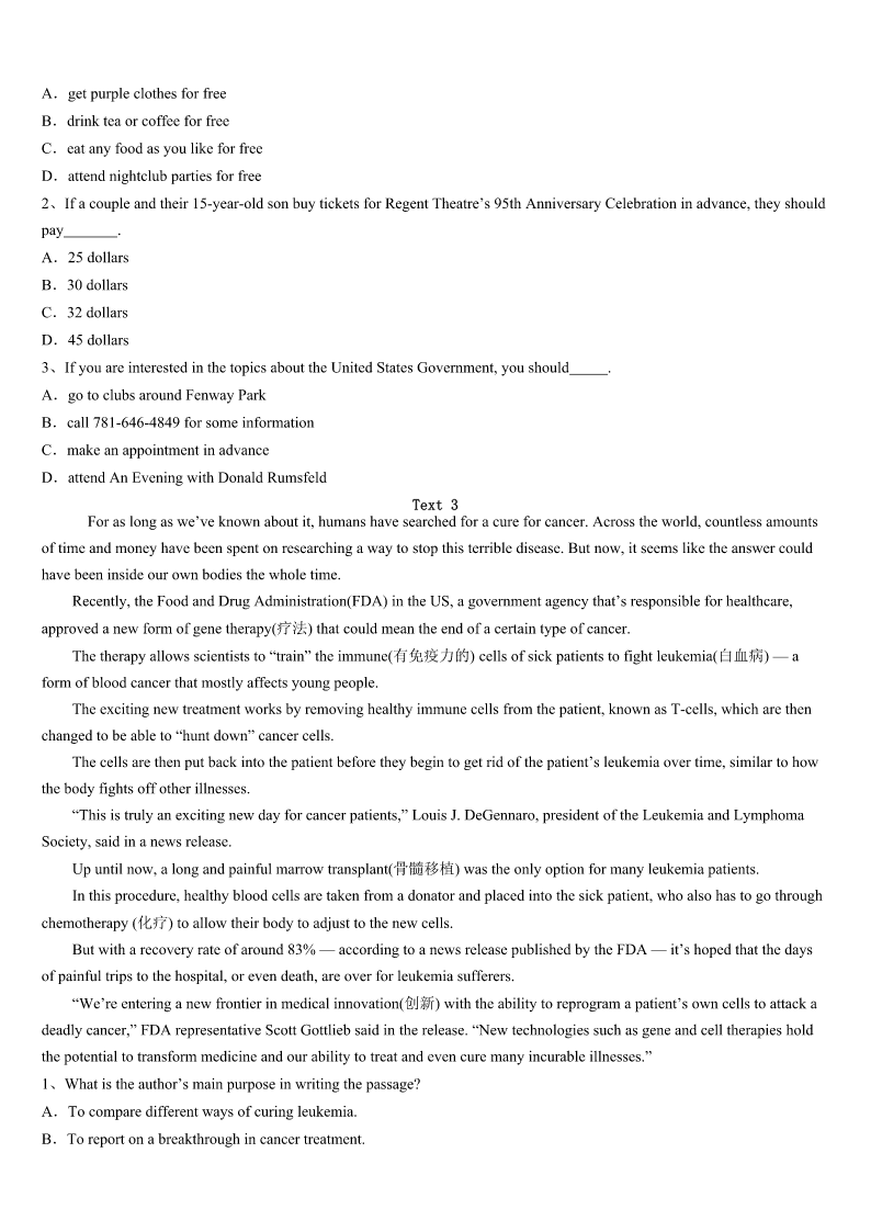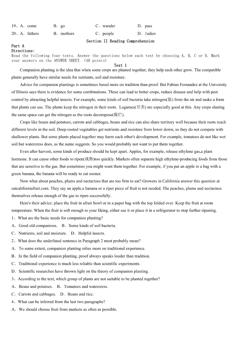 考研《英语一》新疆省喀什地区2023年预测试卷 SectionIUseofEnglish Directions: Readthefollowingtext.Choosethebestword(s)foreachnumberedblankandmarkA,B,CorDonthe ANSWERSHEET.(10points) 阅读下面短文,从短文后各题所给的四个选项(A.B.C和D)中,选出可以填入的空白处的最佳选项,并在答题卡上 将该选项涂黑。 Ithappenseveryday,everywhereIgo.Atthesupermarketandthepostoffice,peoplekeeptellingmetoenjoymykids whiletheyare________Ispendmydaystakingcareofthemandanswering________questionsabouteverythingfromwhywe havetwoeyesbutonenoseto1therearetoiletsintheheaven.They2mefromeatingafullmealorgettingafull3 sleep. Yet,theotherday,whenItookmykidstoachildren’smuseum,Ibeganto4whatpeopleweretryingtotellme.Itwas the5timewehadgonetherewithoutdiaper(纸尿片)bag,babybottleorstroller(小推车).As1watchedmysonspaint there,Iwassuddenly6byawaveof7Mybabiesweren’tbabiesanymore. NowI’mpayingmoreattentiontothe________thatwon’thappenwhenmykidsare________I'menjoyingtheminutewhen Christlookeduptheskyandcried8“Wow!Themoon!”Inafew9,itwilltakearareShrekcardorsomethingelsetoget himthatexcited.I’m10themomentwhenNicholasputdownhisforkatdinnerandasked,“Mommy,howareyou doing?’’Abouttenyearsfromnow,he11notcareaboutme.Whenthey’reinprimaryschool,theywon’twanttohold my________anymore.Injuniorhighschool,theywon’thugmeandsay,“Iloveyou,too.”Inhighschool,theywon’t evenwanttobe12togetherwithme. Pre13they’11bothbegone.AndI’11________throughthesupermarketandthepostofficealone,warningyoung14to enjoytheirkidswhiletheyarelittle.Hopethey’11listen. 1、A.wellB.humorousC.funnyD.1ittle 2、A.endlessB.boringC.strangeD.special 3、A.howB.whetherC.whyD.when 4、A.makeB.turnC.takeD.keep 5、A.day’sB.time’sC.night’sD.bed’s 6、A.realizeB.admitC.remindD.admire 7、A.veryB.realC.firstD.best 8、A.hitB.thrownC.stuckD.moved 9、A.happinessB.sadnessC.1uckD.failure 10、A.accidentB.eventC.sceneD.moment 11、A.youngerB.olderC.worseD.better 12、A.excitedlyB.disappointedlyC.1ovelyD.shyly 13、A.daysB.weeksC.monthsD.years 14、A.measuringB.pleasingC.treasuringD.surprising 15、A.mightB.shouldC.mustD.need 16、A.hairB.handsC.bagD.basket 17、A.seenB.talkedC.carri