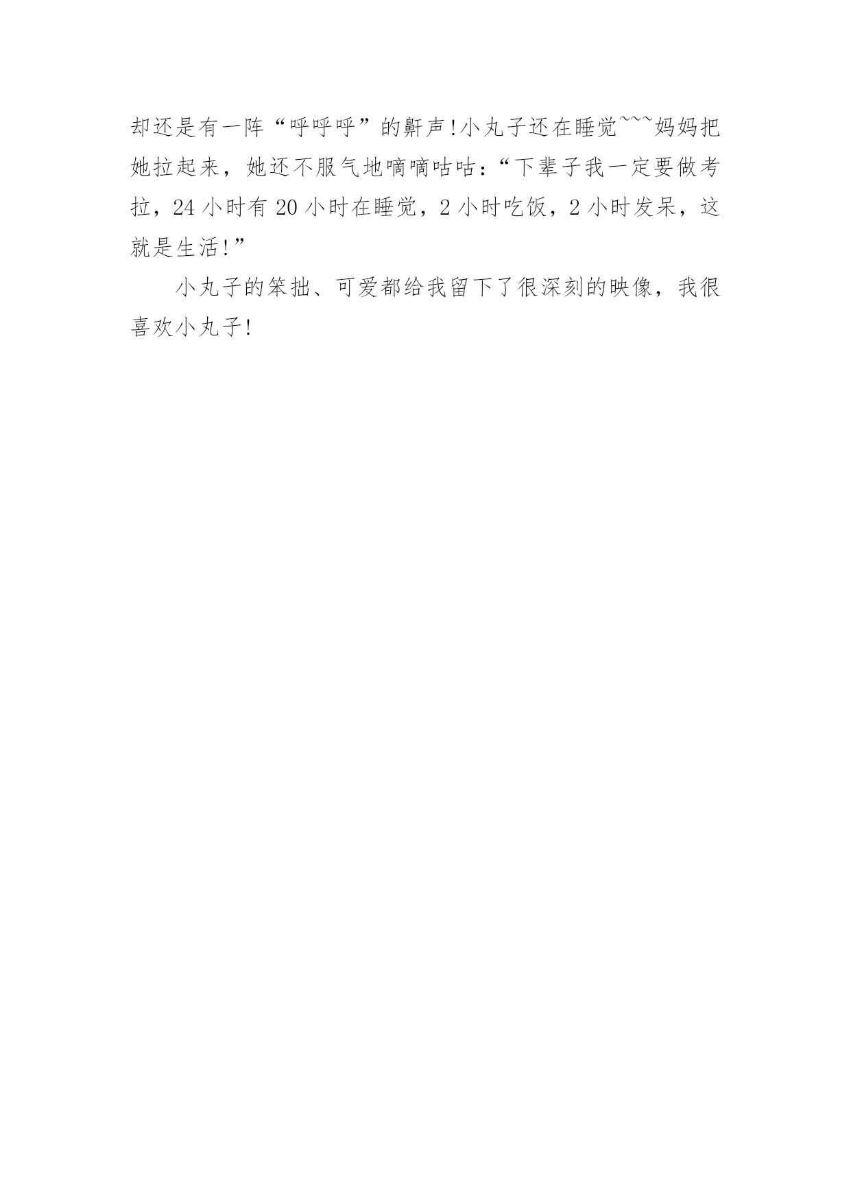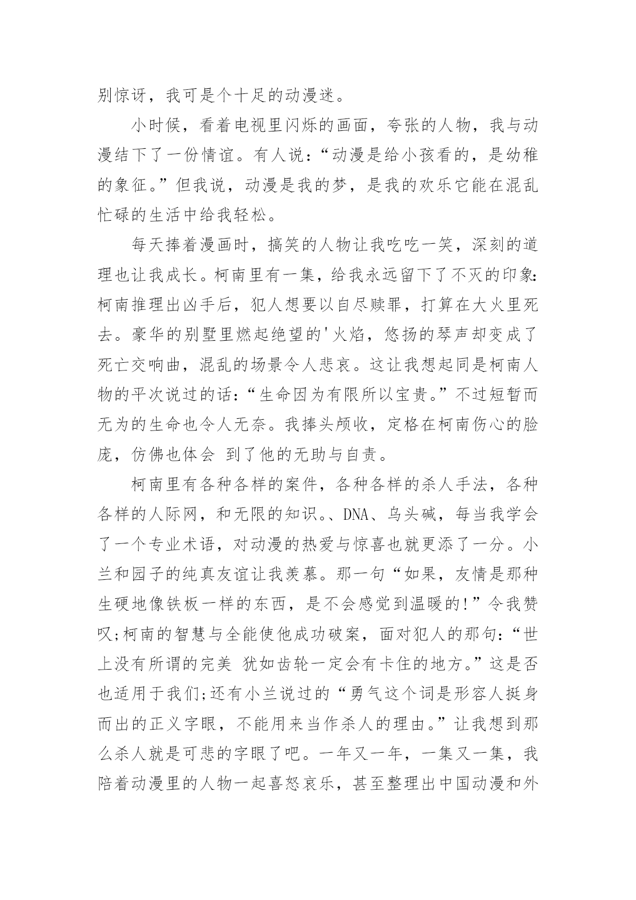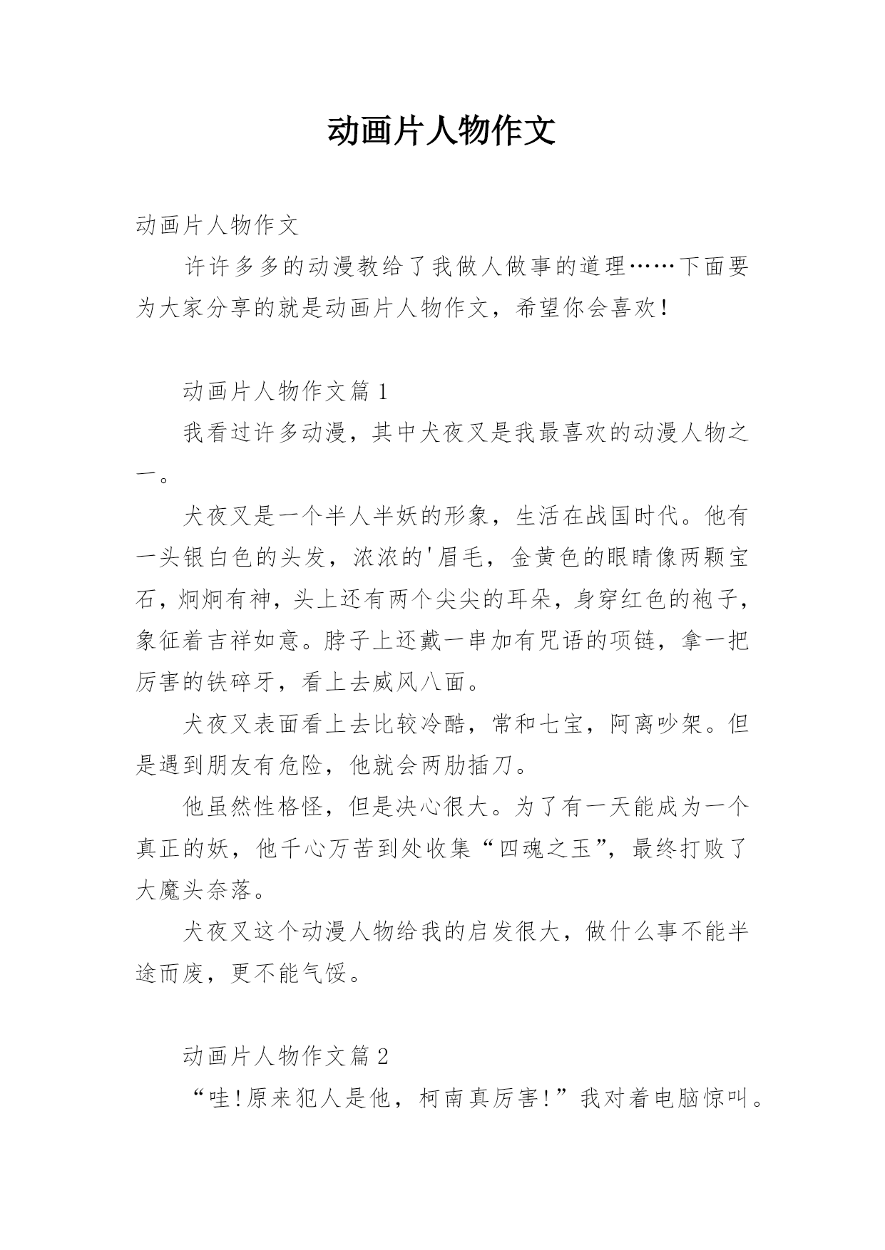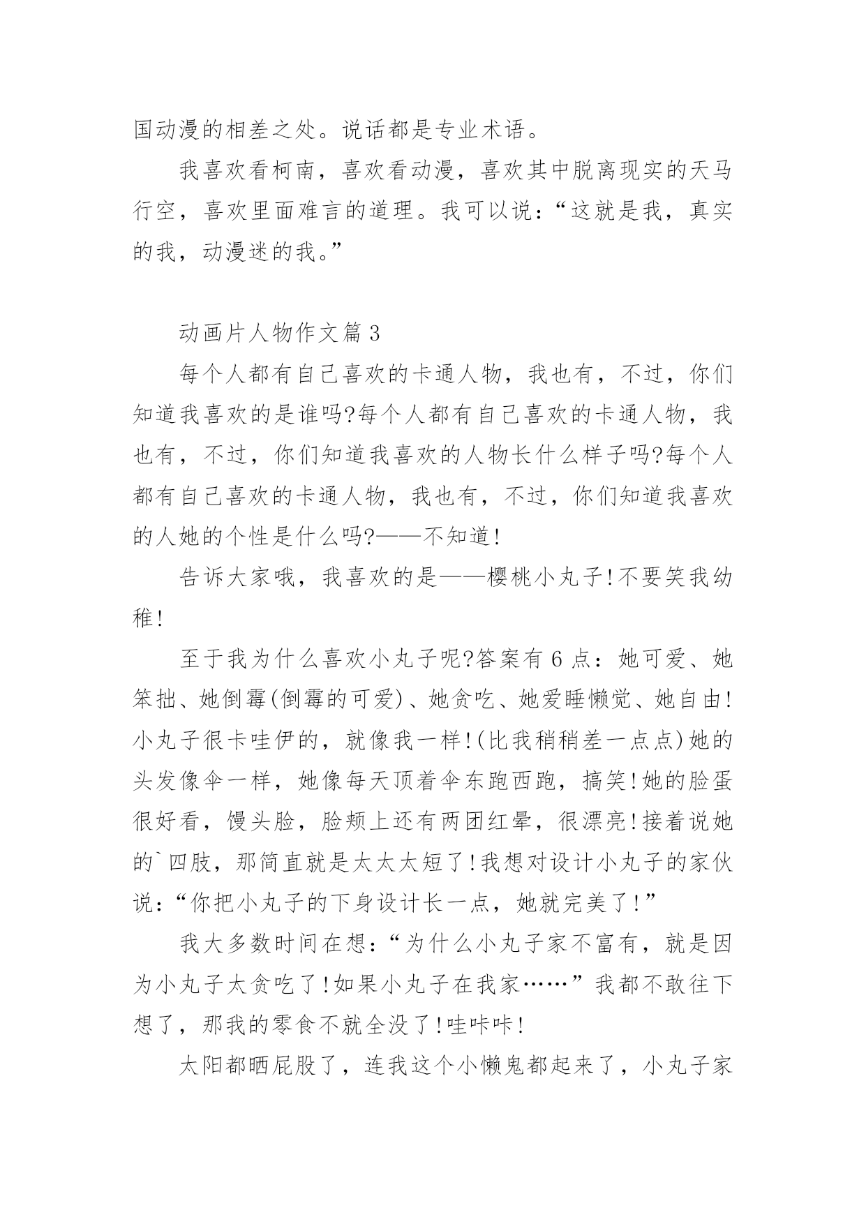 动画片人物作文 动画片人物作文许许多多的动漫教给了我做人做事的道理……下面要为大家分享的就是动画片人物作文,希望你会喜欢!动画片人物作文篇1我看过许多动漫,其中犬夜叉是我最喜欢的动漫人物之一。犬夜叉是一个半人半妖的形象,生活在战国时代。他有一头银白色的头发,浓浓的'眉毛,金黄色的眼睛像两颗宝石,炯炯有神,头上还有两个尖尖的耳朵,身穿红色的袍子,象征着吉祥如意。脖子上还戴一串加有咒语的项链,拿一把厉害的铁碎牙,看上去威风八面。犬夜叉表面看上去比较冷酷,常和七宝,阿离吵架。但是遇到朋友有危险,他就会两肋插刀。他虽然性格怪,但是决心很大。为了有一天能成为一个真正的妖,他千心万苦到处收集“四魂之玉”,最终打败了大魔头奈落。犬夜叉这个动漫人物给我的启发很大,做什么事不能半途而废,更不能气馁。动画片人物作文篇2“哇!原来犯人是他,柯南真厉害!”我对着电脑惊叫。别惊讶,我可是个十足的动漫迷。小时候,看着电视里闪烁的画面,夸张的人物,我与动漫结下了一份情谊。有人说:“动漫是给小孩看的,是幼稚的象征。”但我说,动漫是我的梦,是我的欢乐它能在混乱忙碌的生活中给我轻松。每天捧着漫画时,搞笑的人物让我吃吃一笑,深刻的道理也让我成长。柯南里有一集,给我永远留下了不灭的印象:柯南推理出凶手后,犯人想要以自尽赎罪,打算在大火里死去。豪华的别墅里燃起绝望的'火焰,悠扬的琴声却变成了死亡交响曲,混乱的场景令人悲哀。这让我想起同是柯南人物的平次说过的话:“生命因为有限所以宝贵。”不过短暂而无为的生命也令人无奈。我捧头颅收,定格在柯南伤心的脸庞,仿佛也体会到了他的无助与自责。柯南里有各种各样的案件,各种各样的杀人手法,各种各样的人际网,和无限的知识。、DNA、乌头碱,每当我学会了一个专业术语,对动漫的热爱与惊喜也就更添了一分。小兰和园子的纯真友谊让我羡慕。那一句“如果,友情是那种生硬地像铁板一样的东西,是不会感觉到温暖的!”令我赞叹;柯南的智慧与全能使他成功破案,面对犯人的那句:“世上没有所谓的完美犹如齿轮一定会有卡住的地方。”这是否也适用于我们;还有小兰说过的“勇气这个词是形容人挺身而出的正义字眼,不能用来当作杀人的理由。”让我想到那么杀人就是可悲的字眼了吧。一年又一年,一集又一集,我陪着动漫里的人物一起喜怒哀乐,甚至整理出中国动漫和外国动漫的相差之处。说话都是专业术语。我喜欢看柯南,喜欢看动漫,喜欢其中脱离现实的天马行空,喜欢里面难言的道理。我可以说:“这就是我,真实的我,动漫迷的我。”动画片人物作文篇3每个人都有自己喜欢的卡通人物,我也有,不过,你们知道我喜欢的是谁吗?每个人都有自己喜欢的卡通人物,我也有,不过,你们知道我喜欢的人物长什么样子吗?每个人都有自己喜欢的卡通人物,我也有,不过,你们知道我喜欢的人她的个性是什么吗?——不知道!告诉大家哦,我喜欢的是——樱桃小丸子!不要笑我幼稚!至于我为什么喜欢小丸子呢?答案有6点:她可爱、她笨拙、她倒霉(倒霉的可爱)、她贪吃、她爱睡懒觉、她自由!小丸子很卡哇伊的,就像我一样!(比我稍稍差一点点)她的头发像伞一样,她像每天顶着伞东跑西跑,搞笑!她的脸蛋很好看,馒头脸,脸颊上还有两团红晕,很漂亮!接着说她的`四肢,那简直就是太太太短了!我想对设计小丸子的家伙说:“你把小丸子的下身设计长一点,她就完美了!”我大多数时间在想:“为什么小丸子家不富有,就是因为小丸子太贪吃了!如果小丸子在我家……”我都不敢往下想了,那我的零食不就全没了!哇咔咔!太阳都晒屁股了,连我这个小懒鬼都起来了,小丸子家却还是有一阵“呼呼呼”的鼾声!小丸子还在睡觉~~~妈妈把她拉起来,她还不服气地嘀嘀咕咕:“下辈子我一定要做考拉,24小时有20小时在睡觉,2小时吃饭,2小时发呆,这就是生活!”小丸子的笨拙、可爱都给我留下了很深刻的映像,我很喜欢小丸子!