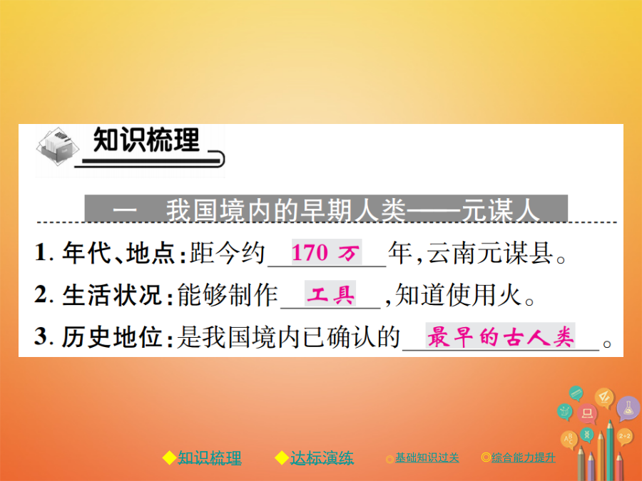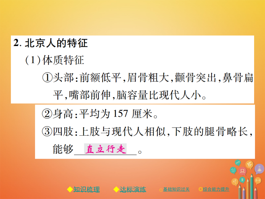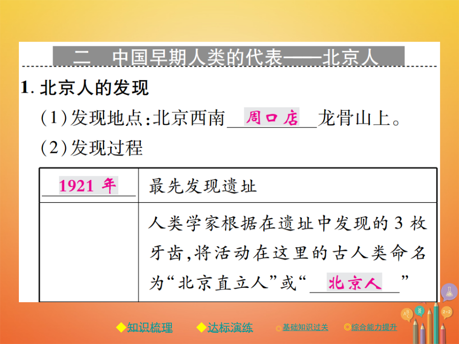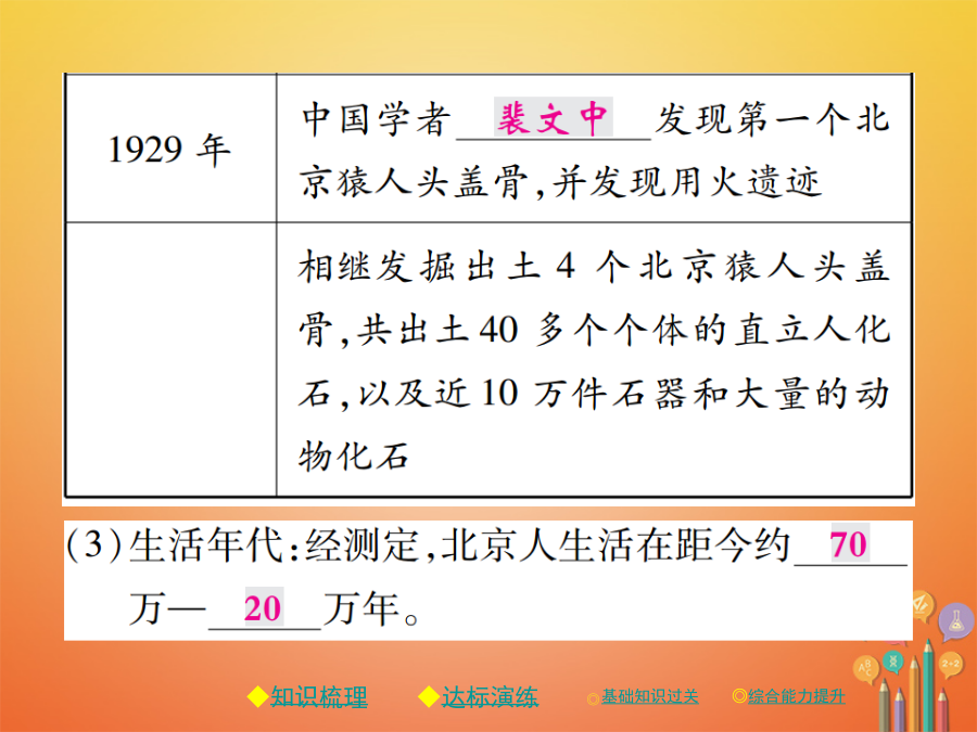 秋七年级历史上册 第一单元 史前时期:中国境内人类的活动 第1课 中国早期人类的代表—北京人习题课件 新人教版-新人教版初中七年级上册历史课件.ppt