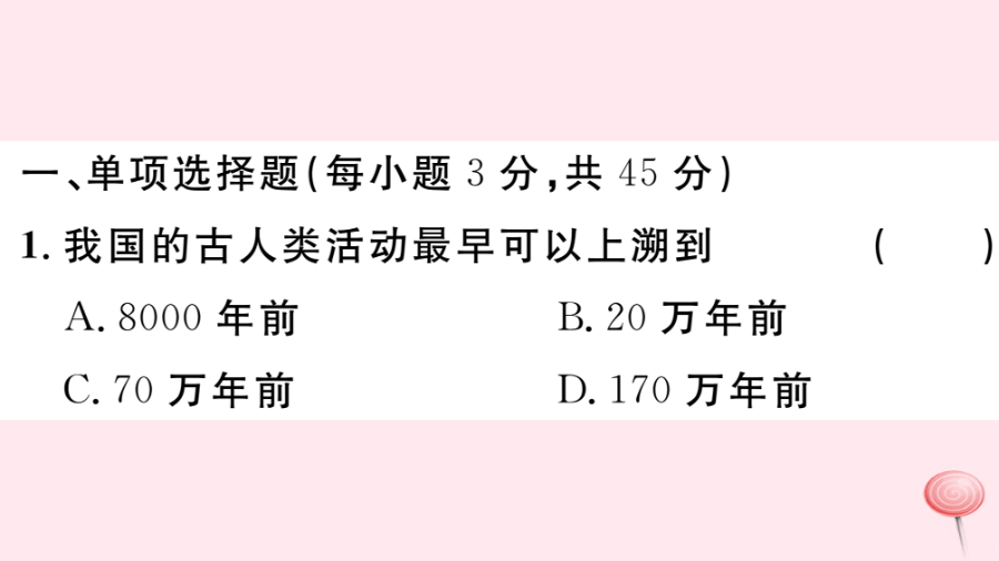 秋七年级历史上册第一单元史前时期:中国境内人类的活动检测习题课件新人教版-新人教版初中七年级上册历史课件.ppt
