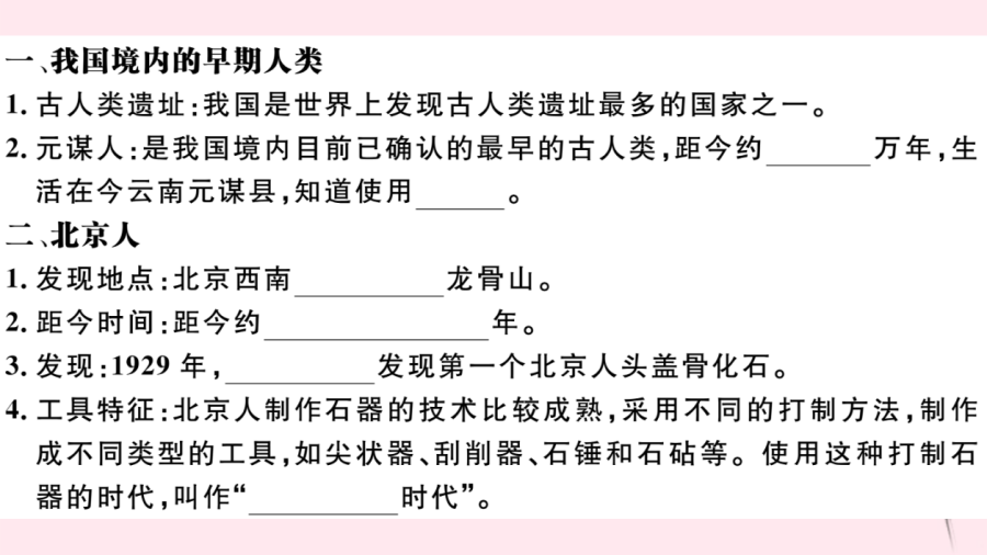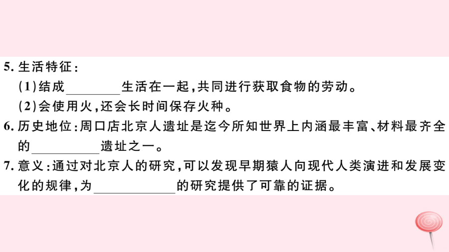 秋七年级历史上册第一单元史前时期:中国境内人类的活动1中国境内早期人类的代表一一一北京人习题课件新人教版-新人教版初中七年级上册历史课件.ppt