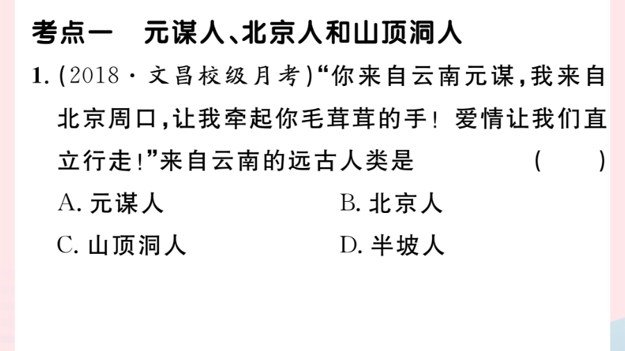 秋七年级历史上册第一单元史前时期:中国境内人类的活动考点精练课件新人教版-新人教版初中七年级上册历史课件.ppt