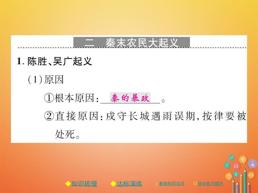 秋七年级历史上册 第三单元 秦汉时期:统一多民族国家的建立和巩固 第10课 秦末农民大起义习题课件 新人教版-新人教版初中七年级上册历史课件.ppt