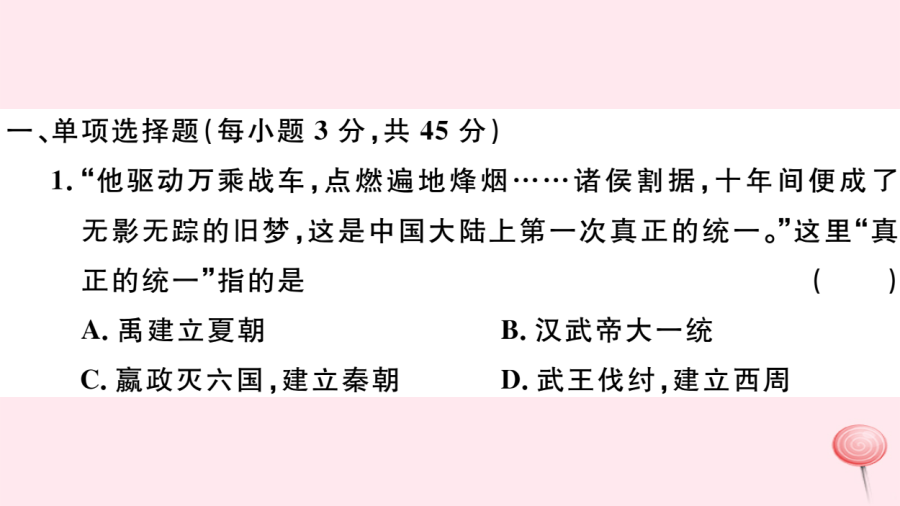 秋七年级历史上册第三单元秦汉时期:统一多民族国家的建立和巩固检测卷课件新人教版-新人教版初中七年级上册历史课件.ppt