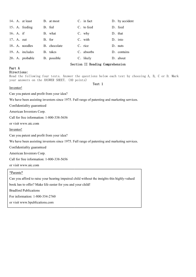 考研《英语一》2023年东山县全真模拟试题 SectionIUseofEnglish Directions: Readthefollowingtext.Choosethebestword(s)foreachnumberedblankandmarkA,B,CorDonthe ANSWERSHEET.(10points) Thefindingscome___36___astudyofnearly1,000USpeoplethatlookedatdiet,calorieintakeandbodymassindex(BMI)- ameasureofobesity.___37___isfoundthatthosewhoatechocolateafewtimesaweekwere,on___38___,slimmerthan those___39___ateitoccasionally.Eventhoughchocolateisloadedwithcalories,itcontainsingredients(材料)thatmay favourweightloss___40___thanfatsynthesis,scientistsbelieve.___41___boostingcalorieintake,regularchocolate consumptionwasrelatedtolowerBMIinthestudy,___42___ispublishedinArchivesofInternalMedicine.Thelinkremained evenwhenotherfactors,likehow___43___exerciseindividualsdid,weretakeninto___44___.Anditappearsitishowoften youeatchocolatethatisimportant,ratherthanhowmuchofityoueat.The___45___foundnolinkwithquantityconsumed. ___46___totheresearchers,thereisonlyonechanceinahundredthattheirfindingscouldbeexplainedbychancealone.Lead authorDrBeatriceGolomb,fromtheUniversityofCaliforniaatSanDiego,said:"Ourfindingsappeartoaddtoabodyof informationsuggestingthatthecompositionofcalories,notjustthenumberofthem,mattersfordeterminingtheirultimate impactonweight."Thisisnotthefirsttimescientists___47___thatchocolatemaybehealthyforus.Otherstudieshave claimedchocolatemaybegoodfortheheart.Consumptionofcertaintypesofchocolatehasbeenlinkedtosomefavourable changesinbloodpressure,insulin(胰岛素)sensitivityandcholesterol(胆固醇)level.Andchocolate,___48___dark chocolate,doescontainantioxidants(抗氧化剂)whichcanhelptomopupharmfulfreeradicals-unstablechemicalsthatcan damageourcells. DrGolombandherteambelievethatantioxidantcompounds,calledcatechins(儿茶素),canimproveleanmusclemassand reduceweight___49___studiesinrodentswouldsuggestthismightbeso.Mice___50___for15dayswithepicatechin (presentindarkchocolate)hadimprovedexerciseperformanceandobservablechangestotheirmusclecomposition.Theysay clinicaltrialsarenowneededinhumanstosee___51___thisisthecase. Butbefor