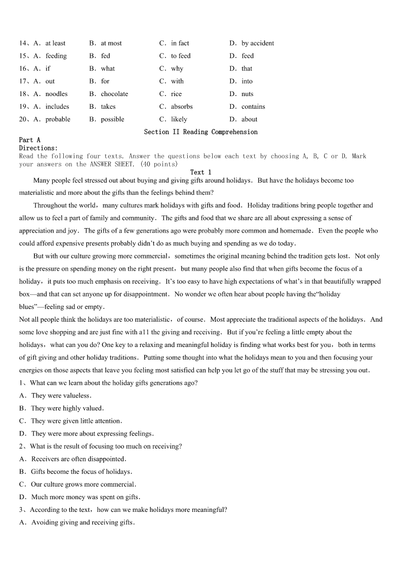 考研《英语一》2023年襄樊市宜城市考前冲刺预测试卷 SectionIUseofEnglish Directions: Readthefollowingtext.Choosethebestword(s)foreachnumberedblankandmarkA,B,CorDonthe ANSWERSHEET.(10points) Thefindingscome___36___astudyofnearly1,000USpeoplethatlookedatdiet,calorieintakeandbodymassindex(BMI)- ameasureofobesity.___37___isfoundthatthosewhoatechocolateafewtimesaweekwere,on___38___,slimmerthan those___39___ateitoccasionally.Eventhoughchocolateisloadedwithcalories,itcontainsingredients(材料)thatmay favourweightloss___40___thanfatsynthesis,scientistsbelieve.___41___boostingcalorieintake,regularchocolate consumptionwasrelatedtolowerBMIinthestudy,___42___ispublishedinArchivesofInternalMedicine.Thelinkremained evenwhenotherfactors,likehow___43___exerciseindividualsdid,weretakeninto___44___.Anditappearsitishowoften youeatchocolatethatisimportant,ratherthanhowmuchofityoueat.The___45___foundnolinkwithquantityconsumed. ___46___totheresearchers,thereisonlyonechanceinahundredthattheirfindingscouldbeexplainedbychancealone.Lead authorDrBeatriceGolomb,fromtheUniversityofCaliforniaatSanDiego,said:"Ourfindingsappeartoaddtoabodyof informationsuggestingthatthecompositionofcalories,notjustthenumberofthem,mattersfordeterminingtheirultimate impactonweight."Thisisnotthefirsttimescientists___47___thatchocolatemaybehealthyforus.Otherstudieshave claimedchocolatemaybegoodfortheheart.Consumptionofcertaintypesofchocolatehasbeenlinkedtosomefavourable changesinbloodpressure,insulin(胰岛素)sensitivityandcholesterol(胆固醇)level.Andchocolate,___48___dark chocolate,doescontainantioxidants(抗氧化剂)whichcanhelptomopupharmfulfreeradicals-unstablechemicalsthatcan damageourcells. DrGolombandherteambelievethatantioxidantcompounds,calledcatechins(儿茶素),canimproveleanmusclemassand reduceweight___49___studiesinrodentswouldsuggestthismightbeso.Mice___50___for15dayswithepicatechin (presentindarkchocolate)hadimprovedexerciseperformanceandobservablechangestotheirmusclecomposition.Theysay clinicaltrialsarenowneededinhumanstosee___51___thisisthecase. But