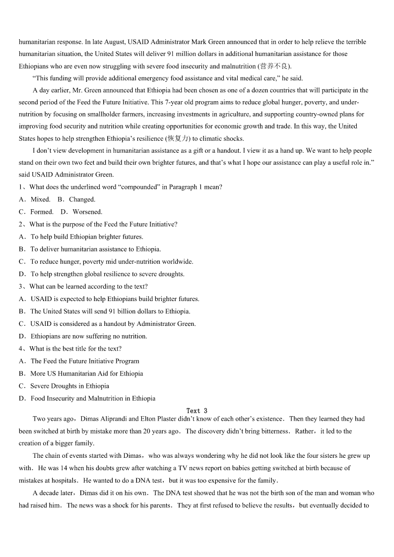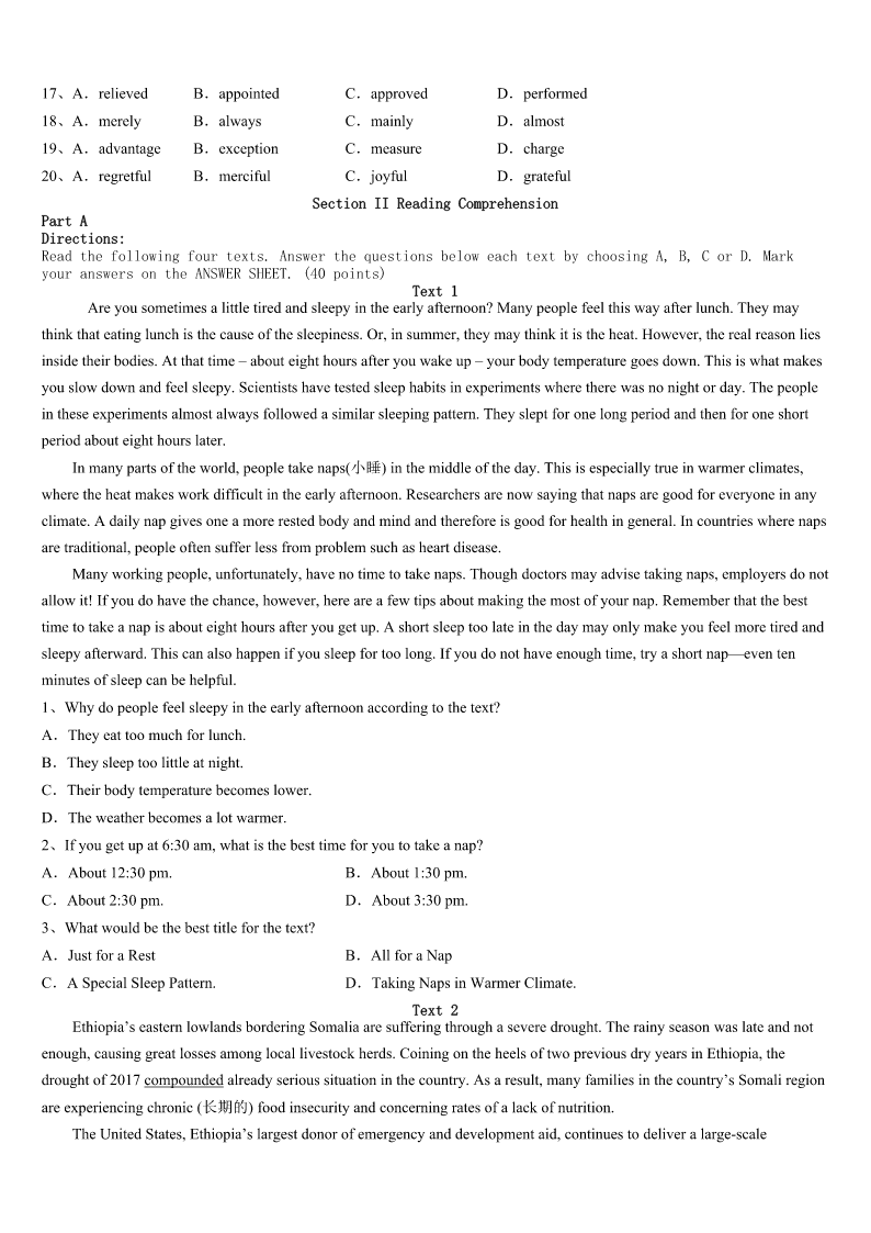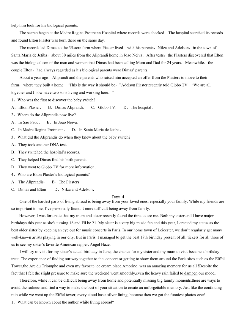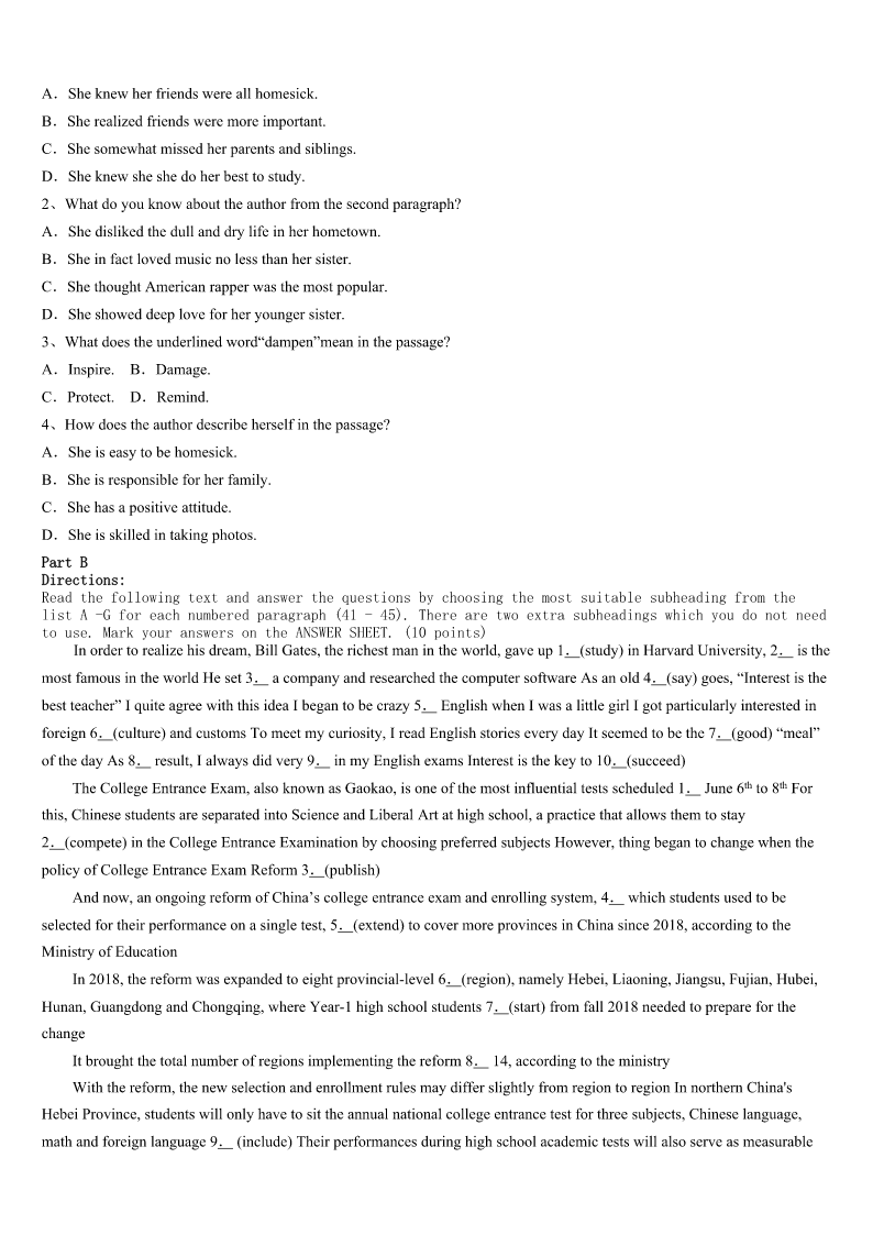 考研《英语一》上饶市铅山县2023年高分冲刺试卷 SectionIUseofEnglish Directions: Readthefollowingtext.Choosethebestword(s)foreachnumberedblankandmarkA,B,CorDonthe ANSWERSHEET.(10points) Anewstudyfoundthatinner-citykidslivinginneighborhoodswithmoregreenspacegainedabout13%lessweightovera two-yearperiodthankidslivingamongmoreconcreteandfewertrees.Such1tellapowerfulstory.Theobesityepidemic(流 行病)beganinthe1980s,andmanypeoplebelieveincreasedportionsizesandinactivityareto2,butthatcan'tbe everything.FastfoodsandTVshavebeen3usforalongtime."Mostexpertsagreethatthechangeswere4tosomething intheenvironment,"sayssocialepidemiologistThomasGlassofTheJohnsHopkinsBloombergSchoolofPublicHealth.That somethingcouldbea5ofthegreen. Thenewresearch,6intheAmericanJournalofPreventiveMedicine,isn'tthefirsttoassociategreenerywithbetterhealth, butitdoesgetusclose7identifyingwhatworksandwhy.Atitsmoststraightforward,agreenneighborhood8means moreplacesforkidstoplay–whichis9sincetimespentoutdoorsisoneofthestrongestcorrelates(相关的事物)of children'sactivitylevels.Butgreenspaceisgoodforthemind10:researchbyenvironmentalpsychologistshasshownthatit hascognitive(认知的)11forchildrenwithattention-deficitdisorder.Inonestudy,justreading12inagreensetting improvedkids'symptoms. 13tograssyareashasalsobeenlinkedto14stressandalowerbodymassindex(体重指数)amongadults.Andan15 of3,000Tokyoresidentsassociatedwalkablegreenspaceswithgreaterlongevity(长寿)amongseniorcitizens. Glasscautionsthatmoststudiesdon't16proveacausallinkbetweengreennessandhealth,butthey'reneverthelesshelping spuraction.InSeptembertheU.S.HouseofRepresentatives17thedelightfullynamedNoChildLeftInsideActto encouragepublicinitiativesaimedatexposingkidstotheoutdoors. Findinggreenspaceisnot18easy,andyoumayhavetoworkabittogetyourfamilyalittlegrassandtrees.Ifyouliveina suburboracitywithgoodparks,take19ofwhat'sthere.Yourchildreninparticularwillloveit–andtheirbodiesandminds willbe20toyou. 1、A.findingsB.essaysC.assumptionsD.abstracts 2、A.scoldB.blameC.chargeD.criticize 3、A.amongB.alongC.besideD.