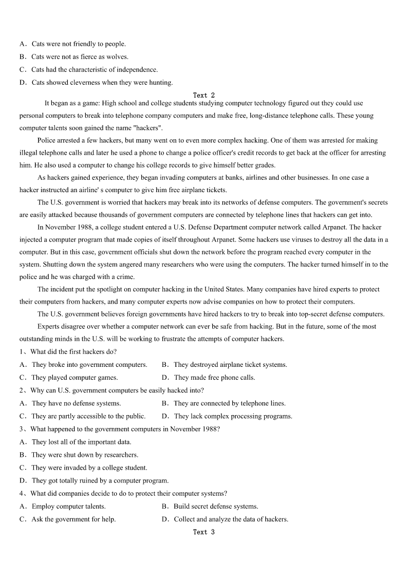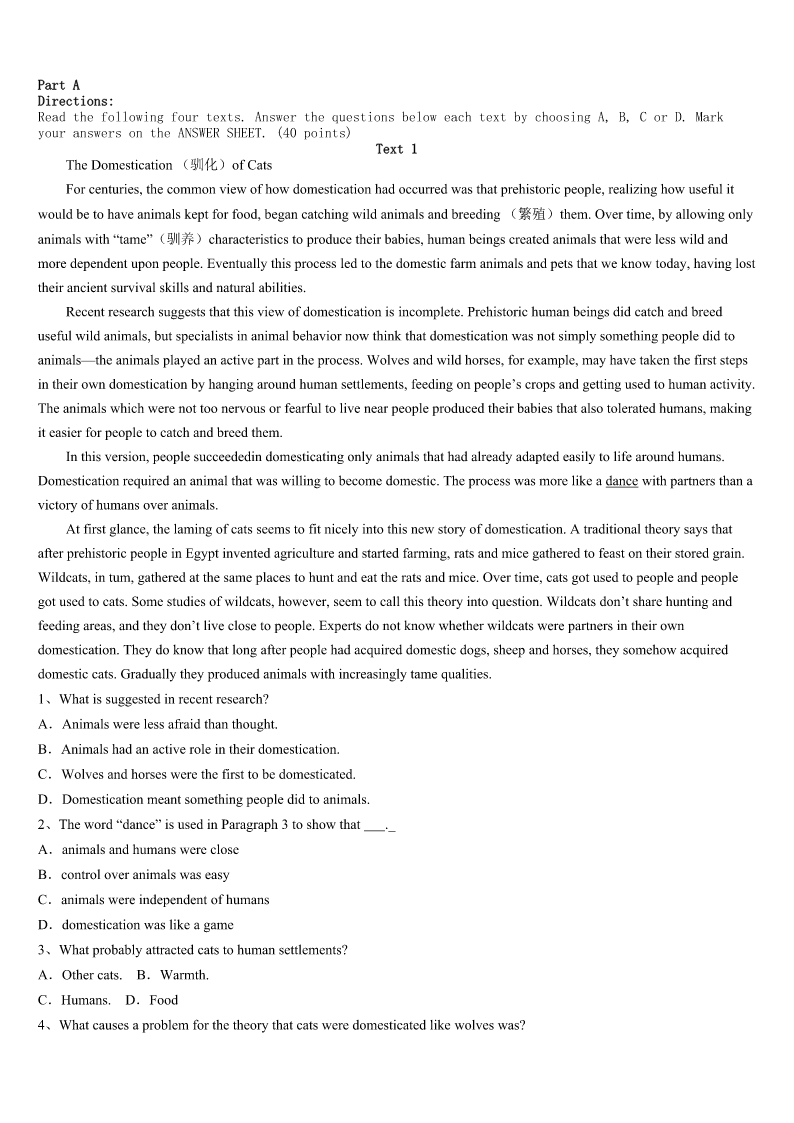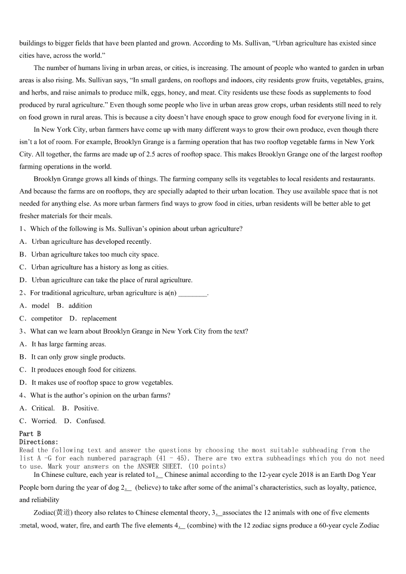 考研《英语一》诸暨市2023年预测密卷 SectionIUseofEnglish Directions: Readthefollowingtext.Choosethebestword(s)foreachnumberedblankandmarkA,B,CorDonthe ANSWERSHEET.(10points) Onerandomactofkindnesscanmakesomeone’sday,butamaninFloridaknowsagood1isn’taone-timething. Afterspendingthreemonthsinandoutofthehospitalwithnumeroushealthissues,DonaldAustinhadhis2partially cutoff.Hewasrelievedtofinallybeabletogohomeafterjustfourdaysrecoveringfromthe3.Whenhereachedhisporch, though,the4disappeared. Donaldthoughthe’dbeableto5upthestepstothefrontdooroncrutches(拐杖),buthefoundhewastooweakto keephis6.Hehadtositinthewheelchair,butthewheelchairwastooheavyforhiswife,JenniferAustin,toliftupthe steps,evenwhenhismompitchedin.Donaldendedupontheground,thefamilyfeelingtotally7. Justthen,acarcaughtthefamily’seye.Ithaddrivenpast8wasslowlycirclingback.Thestranger,StevenSmith,9 andaskedifthecouldhelp.10,thefamilywatchedSmithliftDonaldinsideandlayhim11onacouch. Butthegoodmanknewtherewas12todo. Smith13thiswasn’ttheonlytimeDonaldwouldneedtoclimbthose14.Sothenextday,Smithcamebackand askedifhecouldbuildaramp(坡道)infrontofthehouse.Withhisdadandacouplemore15,Smithsetuparamp16 thestepstomakethehouse17tothewheelchair.Theactofkindnessbroughtthefamilyto18. “Thisstrangerhassavedthedayforus19within24hours.Healso20ourspiritsthathadbecomeincreasingly dimmedoverthedifficultmonths.”JenniferwroteonFacebook. 1、A.deedB.mannerC.dealD.performance 2、A.legB.armC.backD.face 3、A.injuryB.depressionC.operationD.shock 4、A.regretB.headacheC.beliefD.joy 5、A.tryitB.makeitC.putitD.takeit 6、A.breathB.balanceC.distanceD.promise 7、A.atalossB.inthedarkC.fornothingD.ourofmind 8、A.thoughB.whileC.butD.when 9、A.brokeupB.cutinC.pulledupD.calledon 10、A.HorrifiedB.EmbarrassedC.RefreshedD.Relieved 11、A.blindlyB.painfullyC.carelesslyD.safely 12、A.lessB.moreC.somethingD.nothing 13、A.figuredB.pointedC.commentedD.suspected 14、A.roadsB.laddersC.railsD.steps 15、A.passers-byB.usefulequipmentC.honoredguestsD.helpinghands. 16、A.aroundB.overC.underD.into 17、A.accessibl