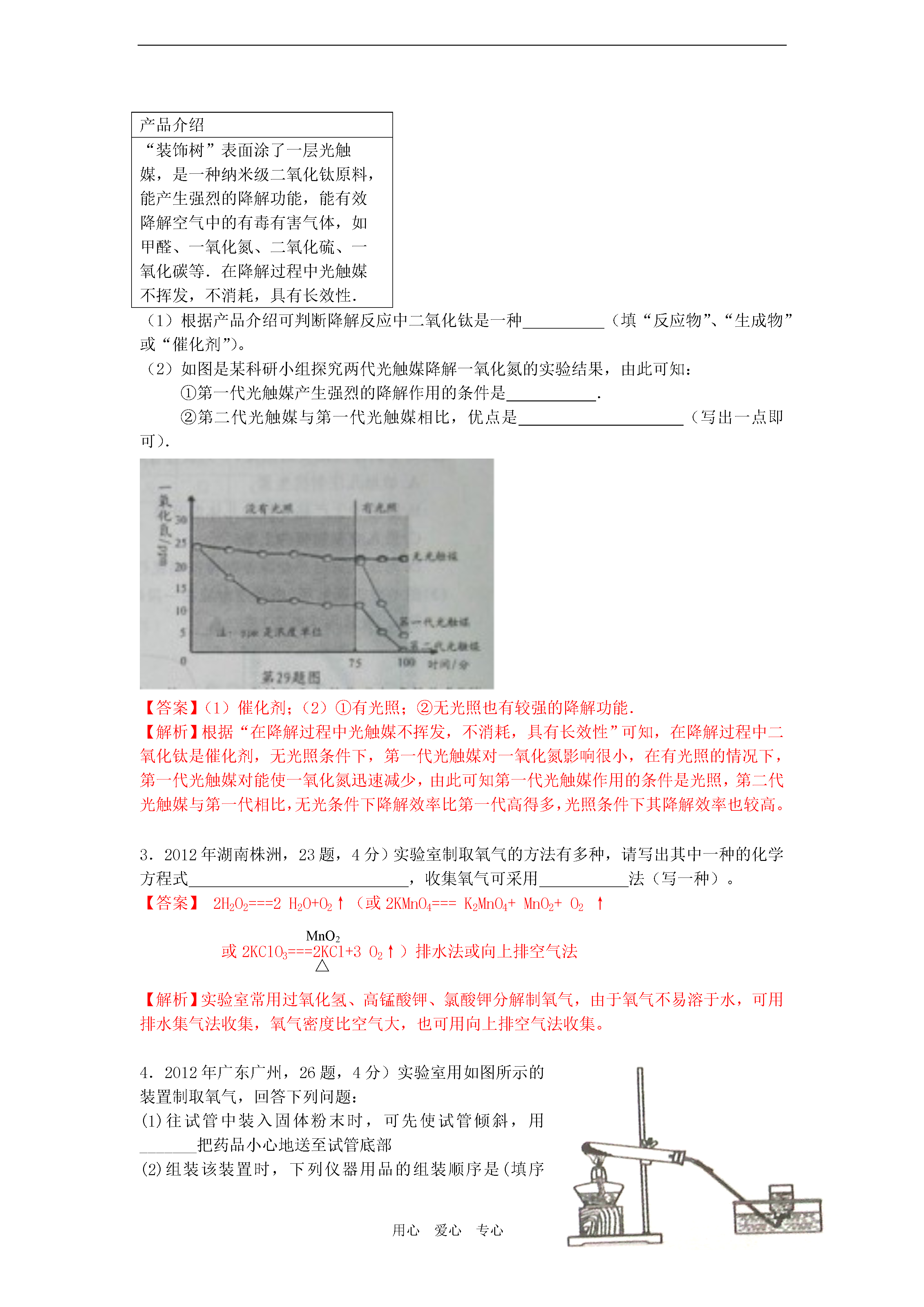 试题-全国-2012_2012年中考化学真题精品解析分类汇编 考点2 氧气的性质与制备(包括催化剂) 人教新课标版.rar