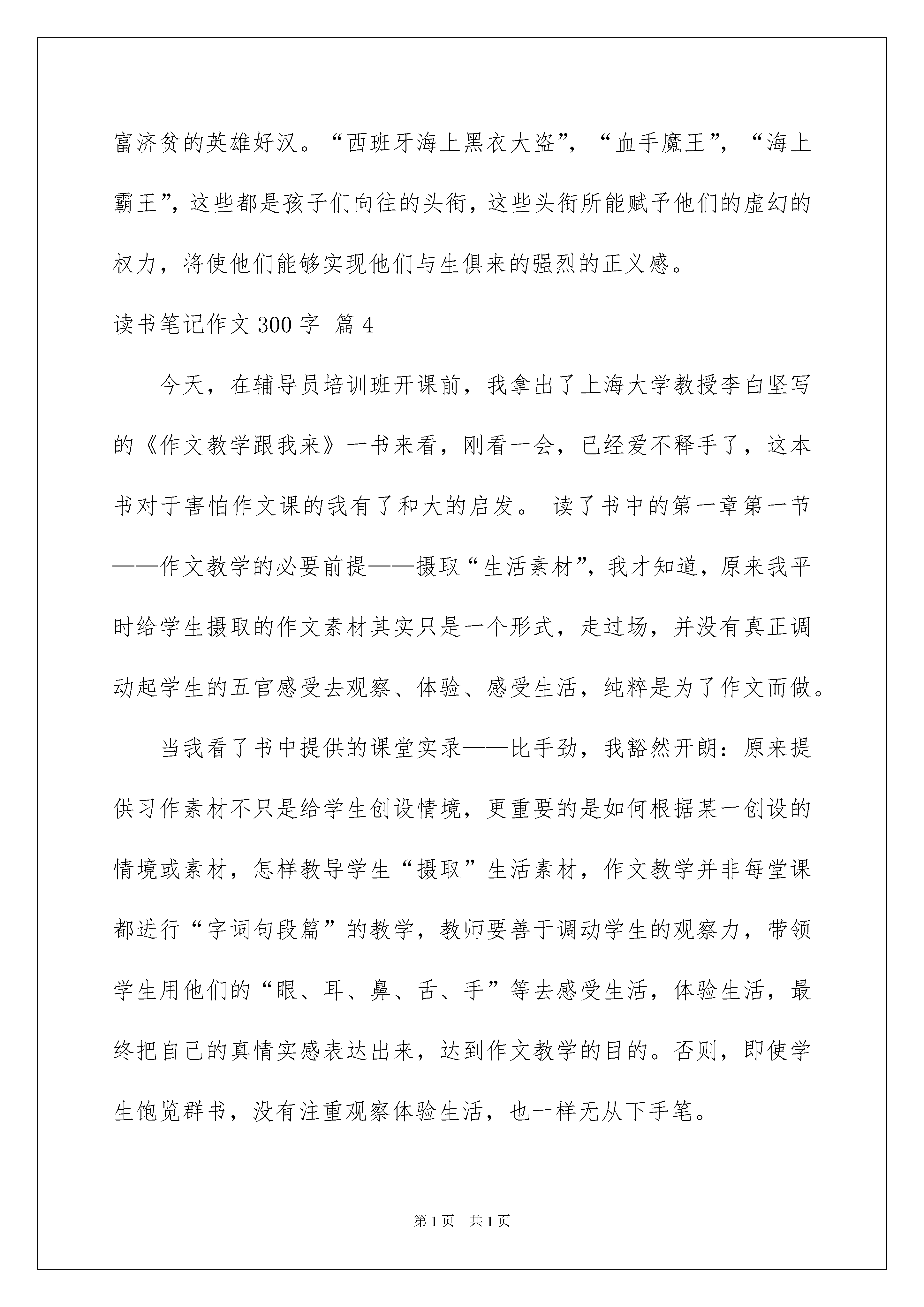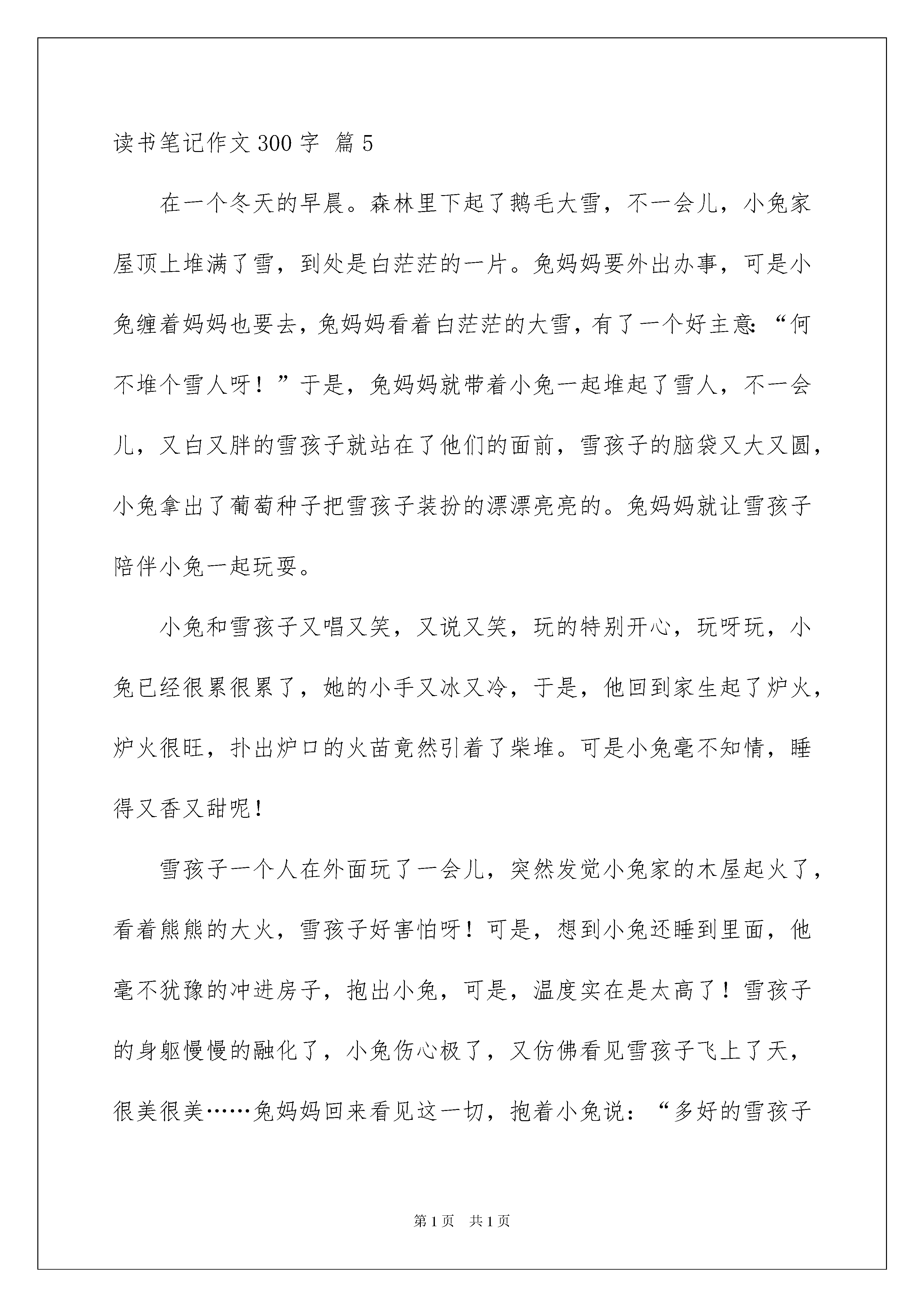 2022精选读书笔记作文300字合集七篇精选读书笔记作文300字合集七篇认真品味一部名著后,相信大家一定领会了不少东西,是时候静下心来好好写写读书笔记了。现在你是否对读书笔记一筹莫展呢?以下是我为大家收集的读书笔记作文300字7篇,欢迎阅读,希望大家能够喜欢。读书笔记作文300字篇1最后一章慧姻国游记的慧姻国是一个人兽颠倒的社会。作者写的慧姻就是有智慧的马,身强体壮,体态俊美,行动迅速。它们有节制、勤劳、清洁,热爱运动,很有灵性,也很有礼貌,十分真诚,举止有条有理——总之像现实社会中的人一样。它们也有许多超出人性的地方,它们热爱自己所有的同类,且不受感情和利益的歪曲和蒙蔽。野胡是一种人形动物,作者将它写的脏、臭、贪婪刁蛮。实际上,作者是以这荒唐的描写讽刺、痛斥自己身处的荒唐的时代,显示的是斯威夫特的悲观,对肮脏社会现象的厌恶。我觉得作者写慧姻的理性是为了反衬出野胡的低级,又影射出现实社会中人性的多重弱点。前几章节里,人与人的比例,地点的虚实对应,各种物品的尺寸都很清晰,但到了这一章里通通消失了。我认为应该是慧姻国是与前几个幻想国度不同的地方,可以说是另一个世界,所以不需要这些,只要简洁明了地写出人兽颠倒的概念就行了。读书笔记作文300字篇2我喜欢的书犹如天上那数不胜数的繁星,可是非要让我挑一个我最喜欢的,那我只能选《查理九世》的一篇——《尤加特拉希生命树》来说一说吧!尤加特拉希生命树在一个城里,那一个城名叫尤加特拉希城,下面我讲一段关于这个故事的内容吧!“汪!”查理鼓励似的吠叫一声,小伙伴不得加快了脚步。一冲出漆黑的通道,他们立刻被眼前的景象震惊了——树洞口竟伫立着一棵巨大无比的树,这时查理突然吸了口气,赫然醒悟到:“我终于知道这是什么啦!这是一棵活着的尤加特生命树。从中我知道了只要敢于探险就能发现许多让人出乎意料的宇宙中的秘密。虽然他们找到了那一颗树,但不幸的事却在他们身上发生了,那个可恨的温莎公爵又来打扰他们……今天我又看了几遍,查理他们真是机智勇敢总能巧妙的解决困难。今天我真高兴,又读了那既有趣又有意义的故事!读书笔记作文300字篇3《汤姆·索亚历险记》读后感经过老师的介绍,我买了这本书,我看了之后觉得这本书很号。童年的世界是一个妙趣横生的世界,是一个调皮耍赖并可以尽情犯错误的年代,汤姆`索亚就尽情的享受着这个童年时代。汤姆逃学,不喜欢学校呆板枯燥的教育,并极度厌恶牧师骗人的鬼话,在汤姆看来,牧师除了唠叨以外对人是没有起到一点实际效果的。汤姆故意不回应老师的叫喊,并躲了起来,吃了满嘴的果酱,最后不幸被同学揭发,汤姆却能侥幸逃避了挨打,并揍了那个可恶的告密人。汤姆是一个天真活泼又调皮的'典型少年,他聪明,勇敢,正直,乐观并有一点叛逆,满脑子疯狂的想法。我以为马克`吐温很好的刻画了一个人的美好童年样板。汤姆是具有勇敢的冒险精神的,这让他和几个疯狂的顽皮小伙伴去当上了“海盗”,但他们所与生俱来的正义感却没有因此而改变,他们当上海盗是因为他们认为海盗是劫富济贫的英雄好汉。“西班牙海上黑衣大盗”,“血手魔王”,“海上霸王”,这些都是孩子们向往的头衔,这些头衔所能赋予他们的虚幻的权力,将使他们能够实现他们与生俱来的强烈的正义感。读书笔记作文300字篇4今天,在辅导员培训班开课前,我拿出了上海大学教授李白坚写的《作文教学跟我来》一书来看,刚看一会,已经爱不释手了,这本书对于害怕作文课的我有了和大的启发。读了书中的第一章第一节——作文教学的必要前提——摄取“生活素材”,我才知道,原来我平时给学生摄取的作文素材其实只是一个形式,走过场,并没有真正调动起学生的五官感受去观察、体验、感受生活,纯粹是为了作文而做。当我看了书中提供的课堂实录——比手劲,我豁然开朗:原来提供习作素材不只是给学生创设情境,更重要的是如何根据某一创设的情境或素材,怎样教导学生“摄取”生活素材,作文教学并非每堂课都进行“字词句段篇”的教学,教师要善于调动学生的观察力,带领学生用他们的“眼、耳、鼻、舌、手”等去感受生活,体验生活,最终把自己的真情实感表达出来,达到作文教学的目的。否则,即使学生饱览群书,没有注重观察体验生活,也一样无从下手笔。读书笔记作文300字篇5在一个冬天的早晨。森林里下起了鹅毛大雪,不一会儿,小兔家屋顶上堆满了雪,到处是白茫茫的一片。兔妈妈要外出办事,可是小兔缠着妈妈也要去,兔妈妈看着白茫茫的大雪,有了一个好主意:“何不堆个雪人呀!”于是,兔妈妈就带着小兔一起堆起了雪人,不一会儿,又白又胖的雪孩子就站在了他们的面前,雪孩子的脑袋又大又圆,小兔拿出了葡萄种子把雪孩子装扮的漂漂亮亮的。兔妈妈就让雪孩
